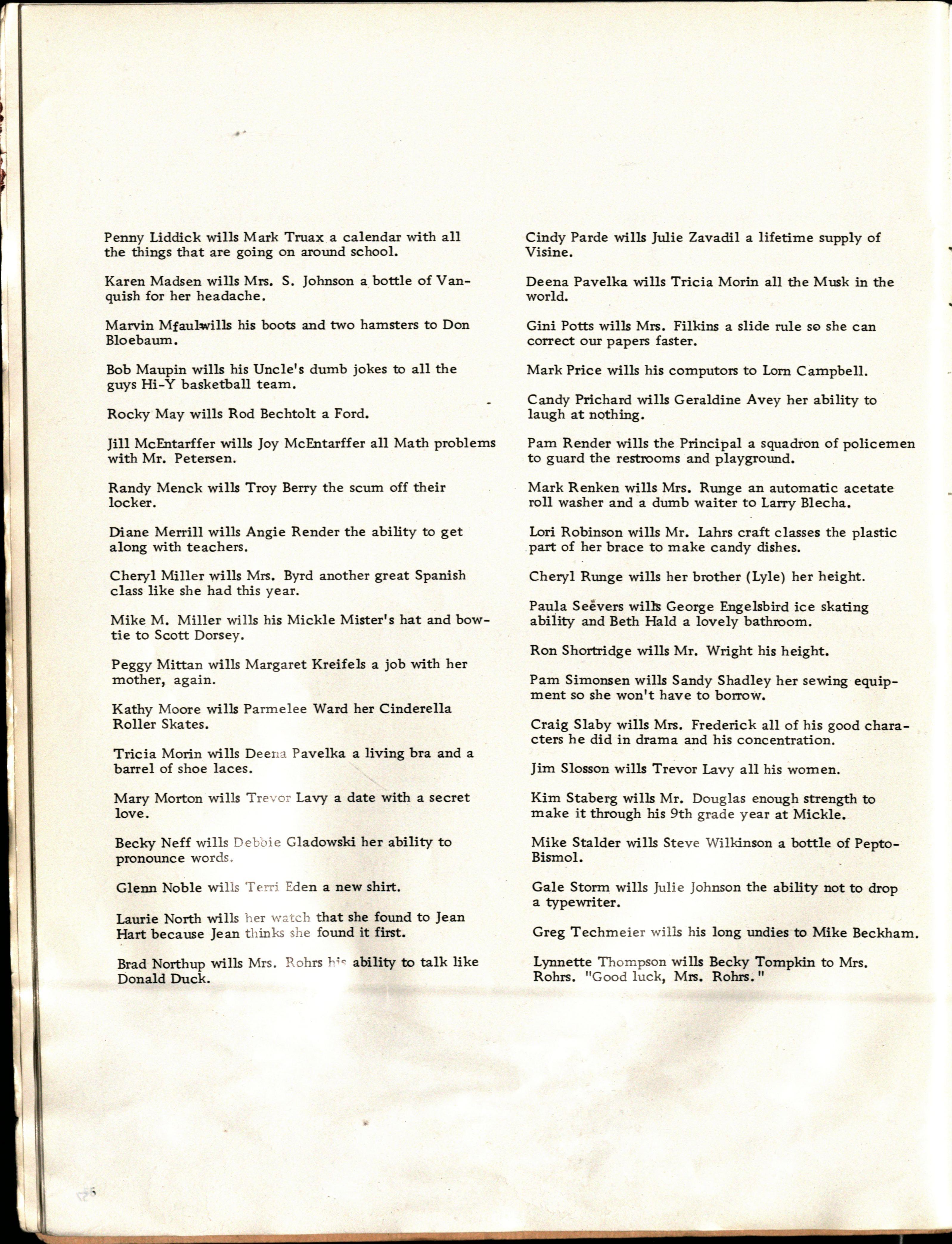 Lynnette Thompson wills Becky Tompkin to Mrs. Rohrs. "Good luck , Mrs. Rohrs."