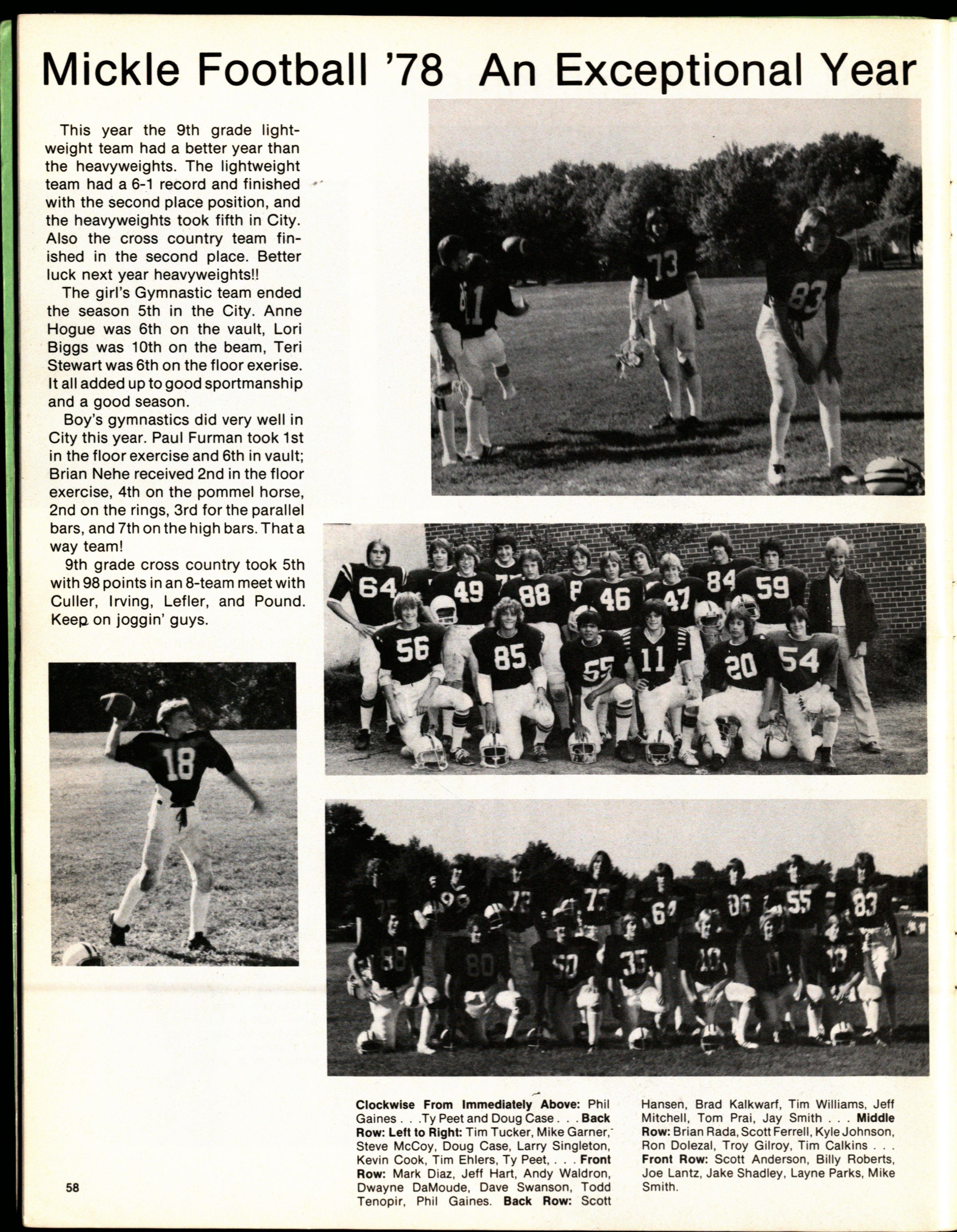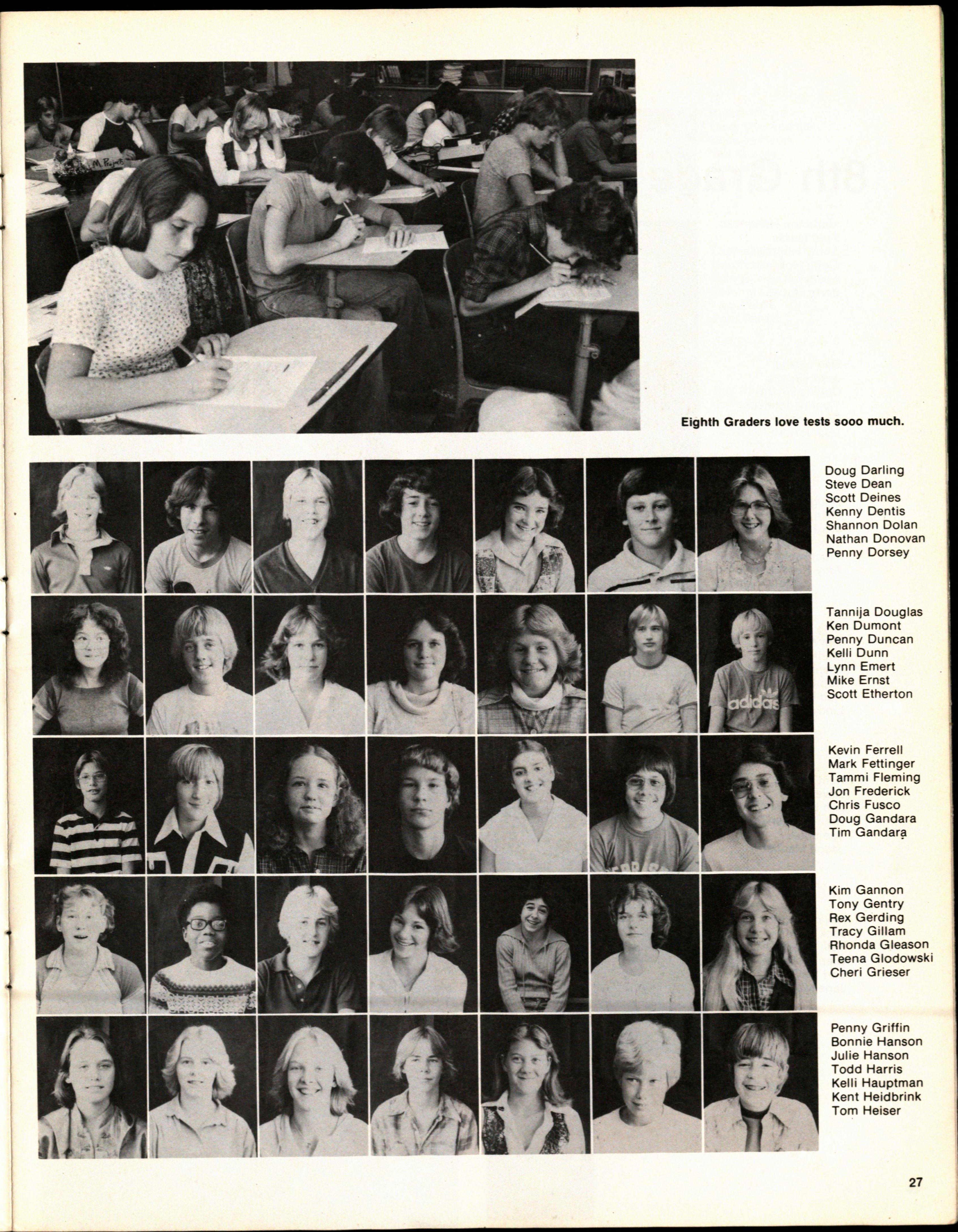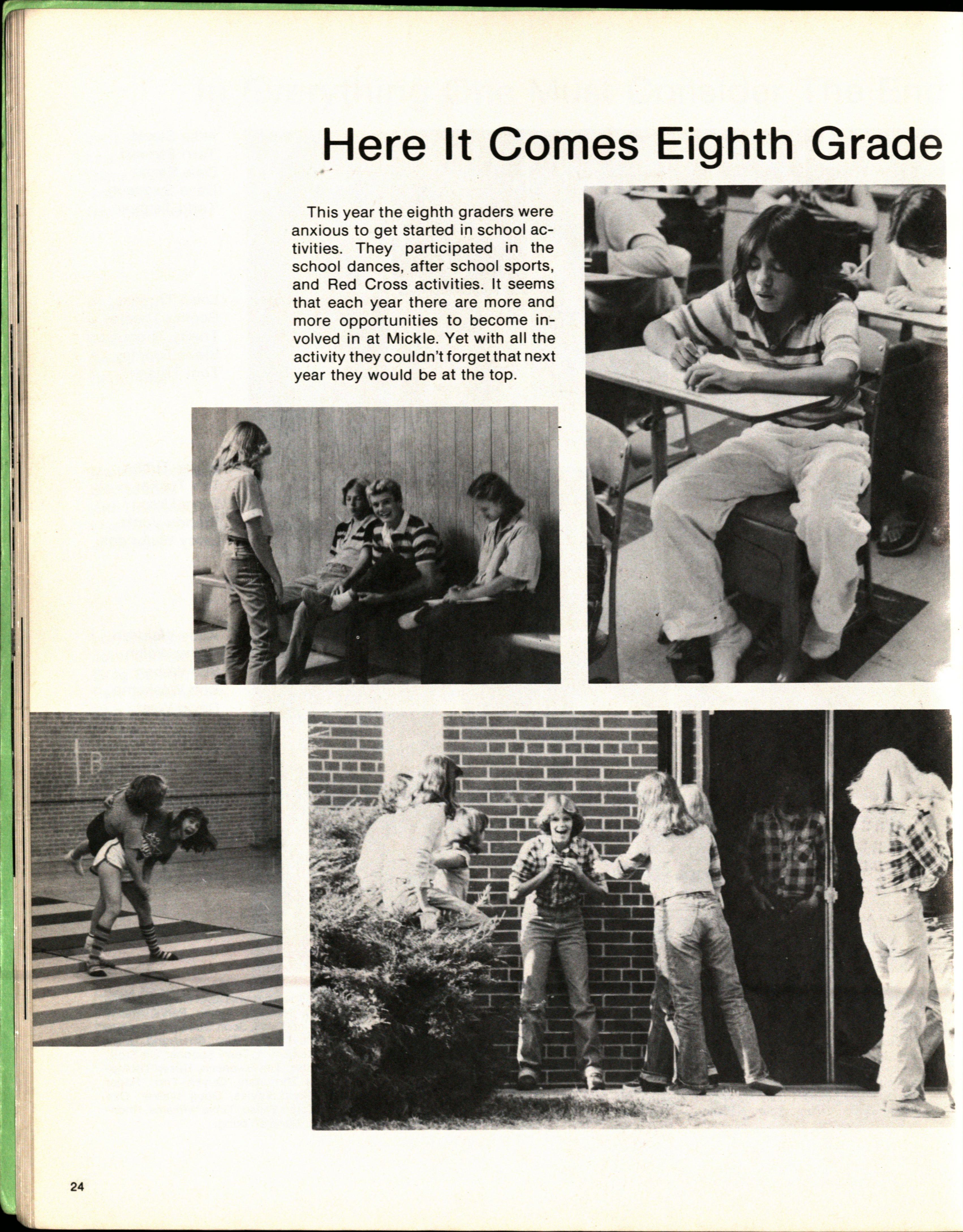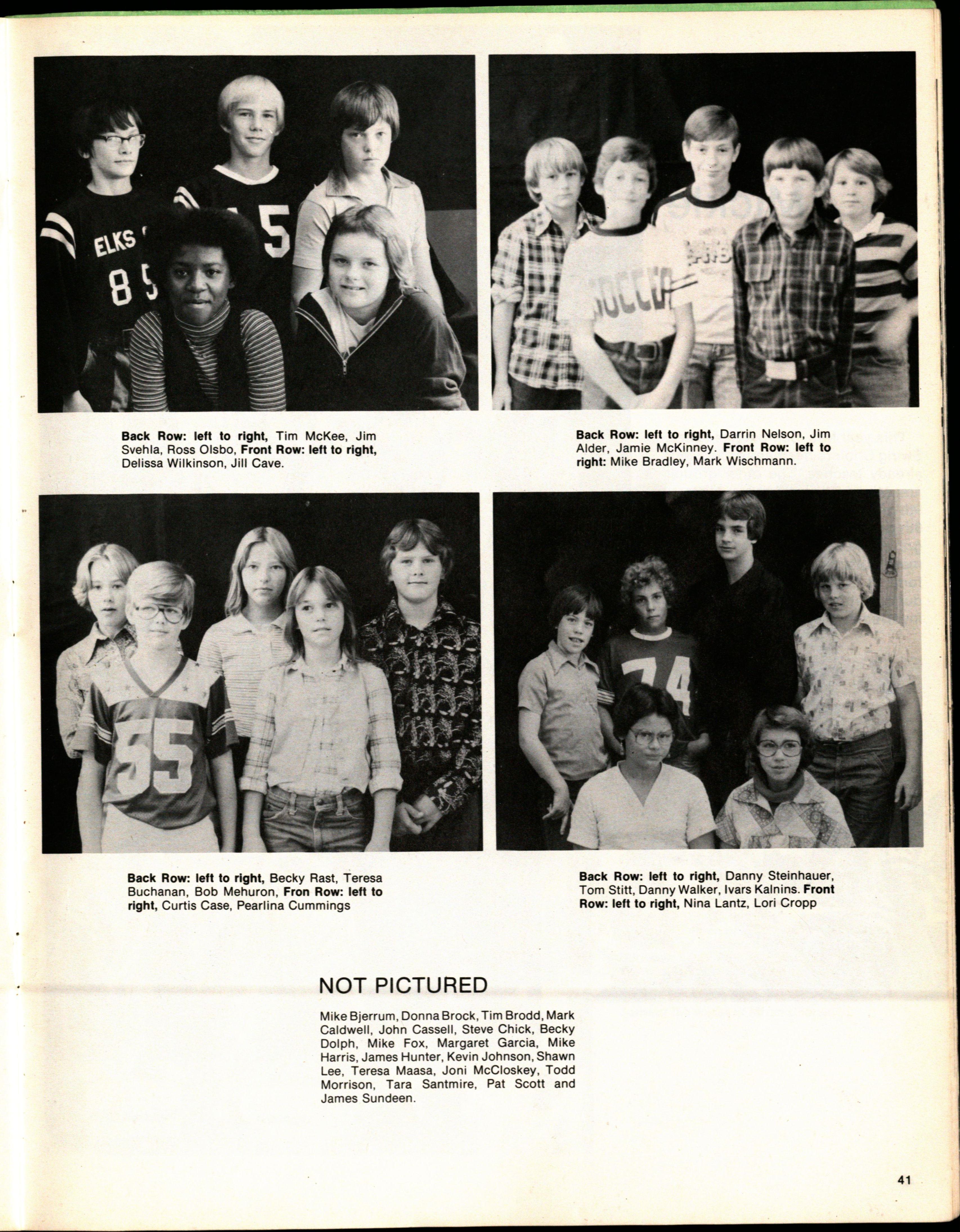 Clockwise Immediate Left: Girls in for the jump ball 8th Grade Girls: Back Row: Lori Pickerel, Jackie Wilke, Lindy Lebsack, Karen Moore , Cheri Grieser , C indy Sacks Front Row: Marilyn Kucera , Karen Barry , Penny Duncan , Marianne Hendricks , Chris Fusco