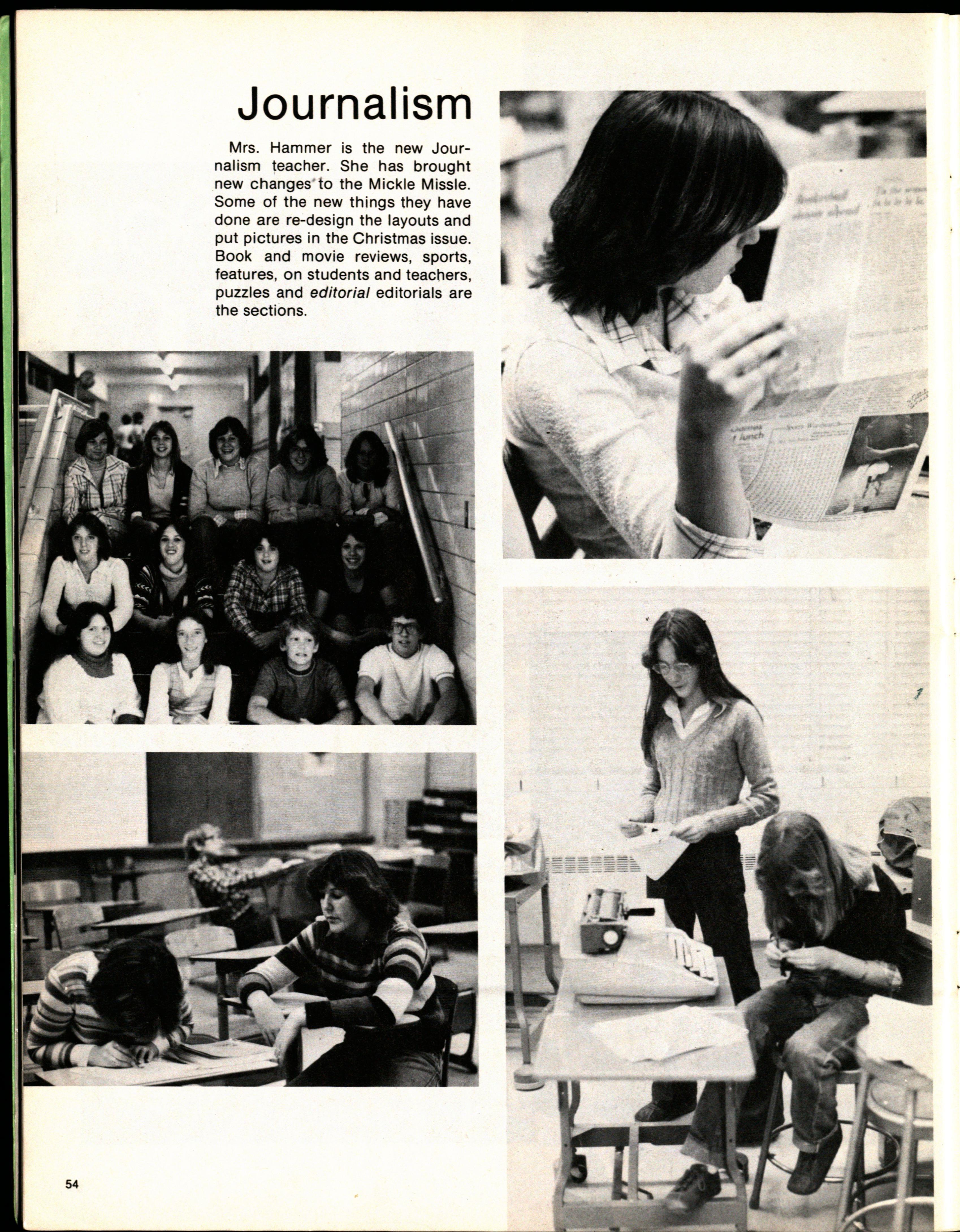 Mrs. Hammer is the new Journalism teacher. She has brought new changes to the Mickle Missie. Some of the new things they have done are re-design the layouts and put pictures in the Christmas issue. Book and movie reviews , sports, features, on students and teachers, puzzles and editorial editorials are the sections.