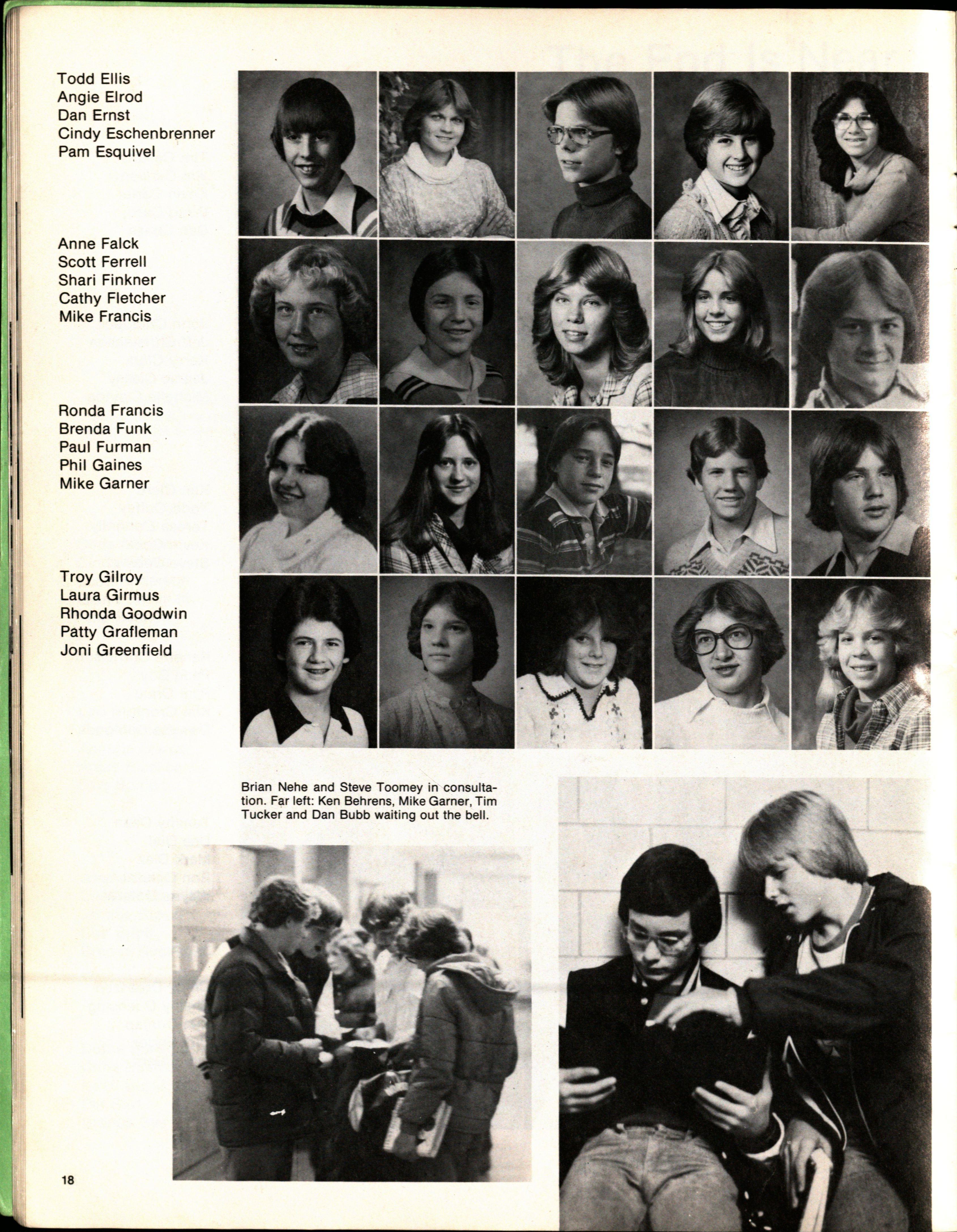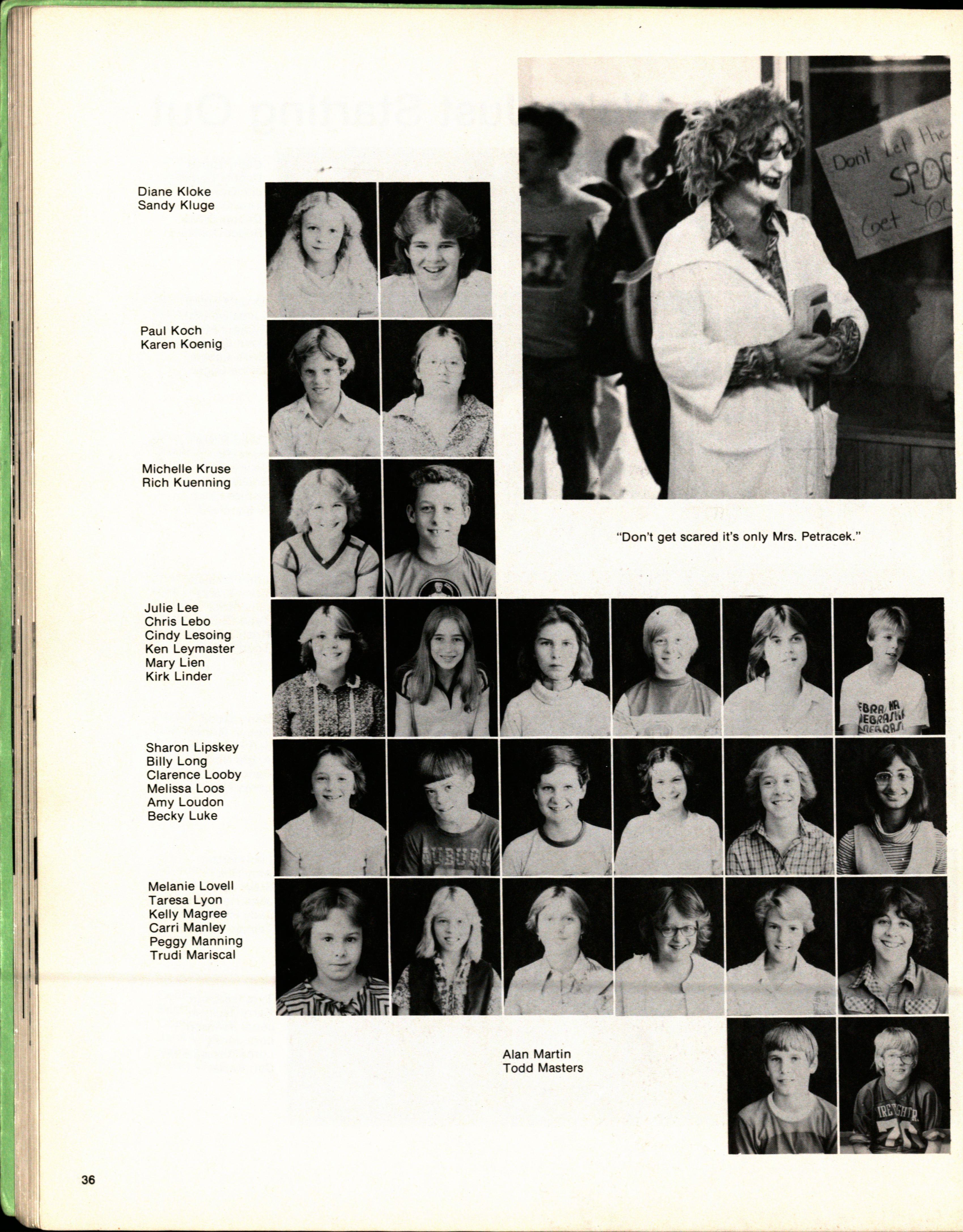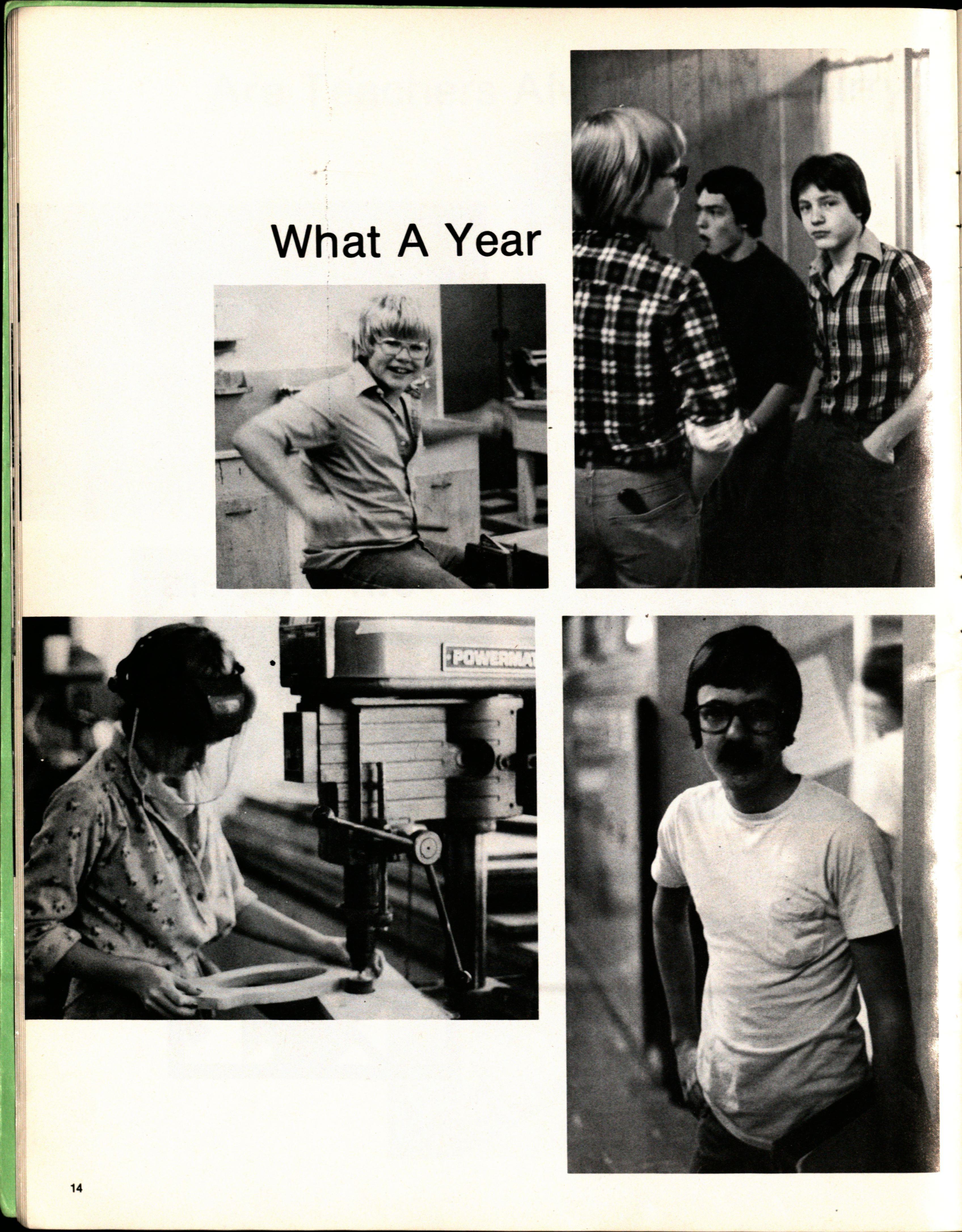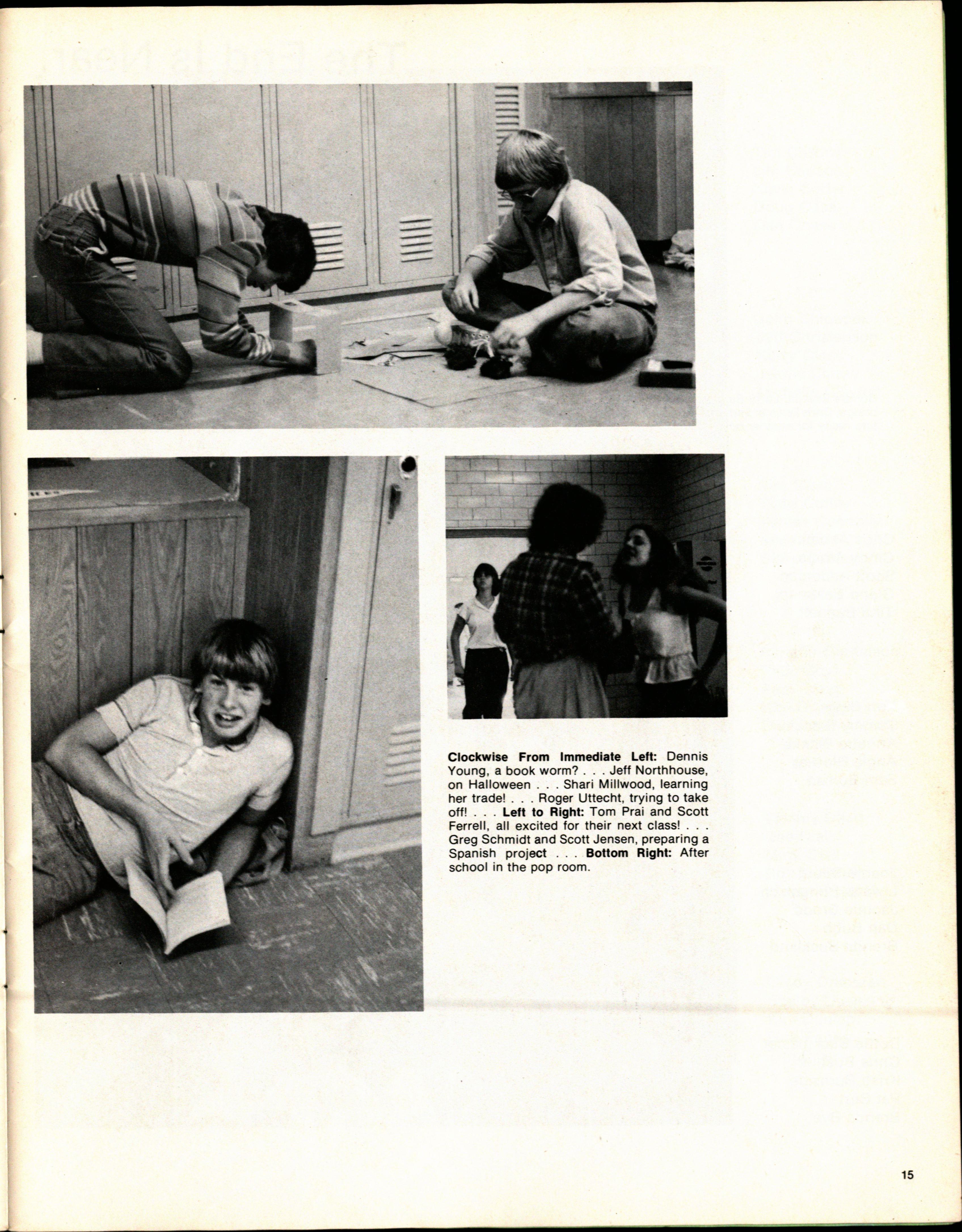 i s Young , a book worm? Jeff Northhouse , on Ha ll oween ... Shari Millwood , learn i ng her trade ! Roger Uttecht , trying to take off ! Left to Right: Tom Pra i and Scott Ferrell , all excited for their next class ! Greg Schm i dt and Scott Jensen , prepar i ng a Spanish pro j ect Bottom Right: After school i n the pop room