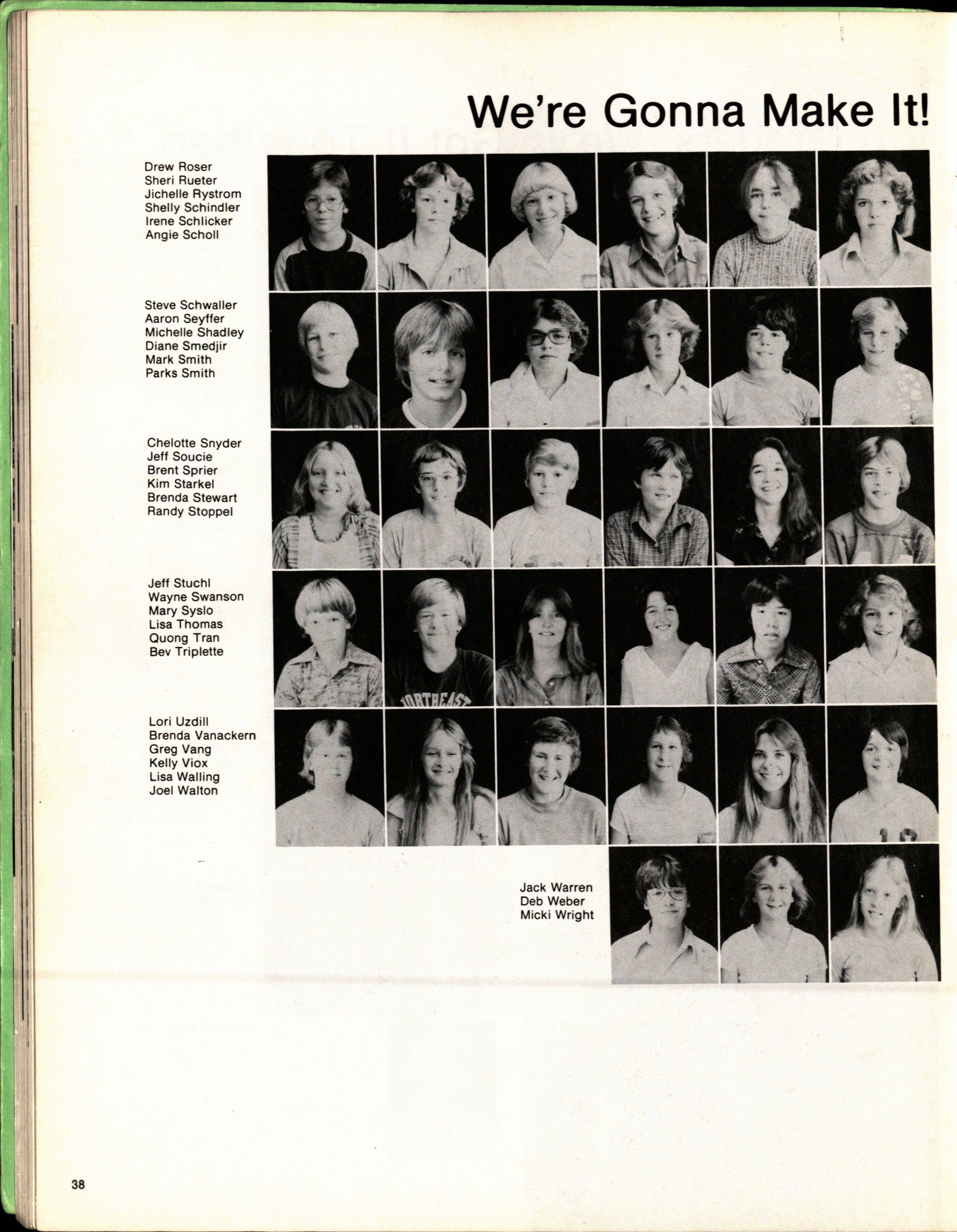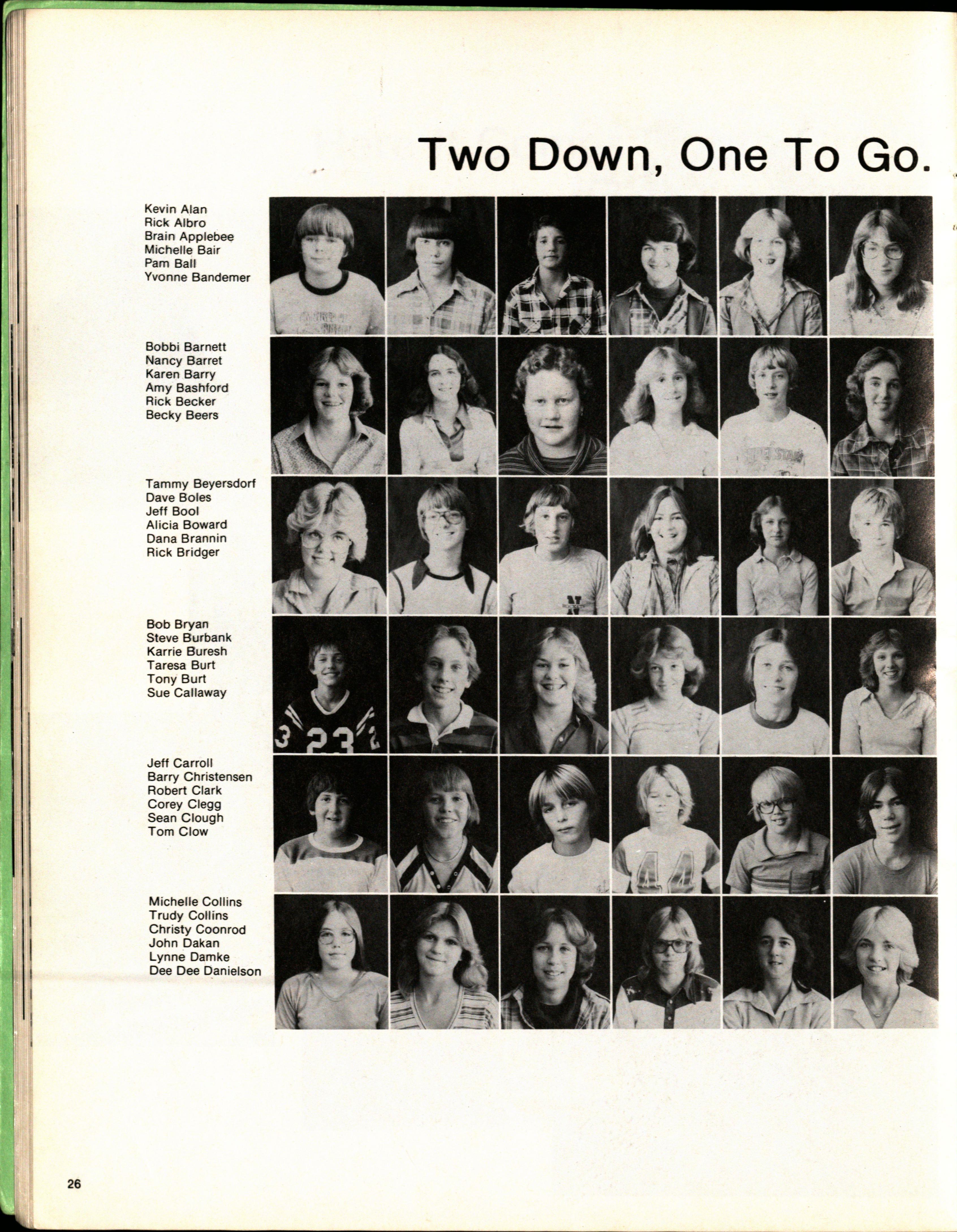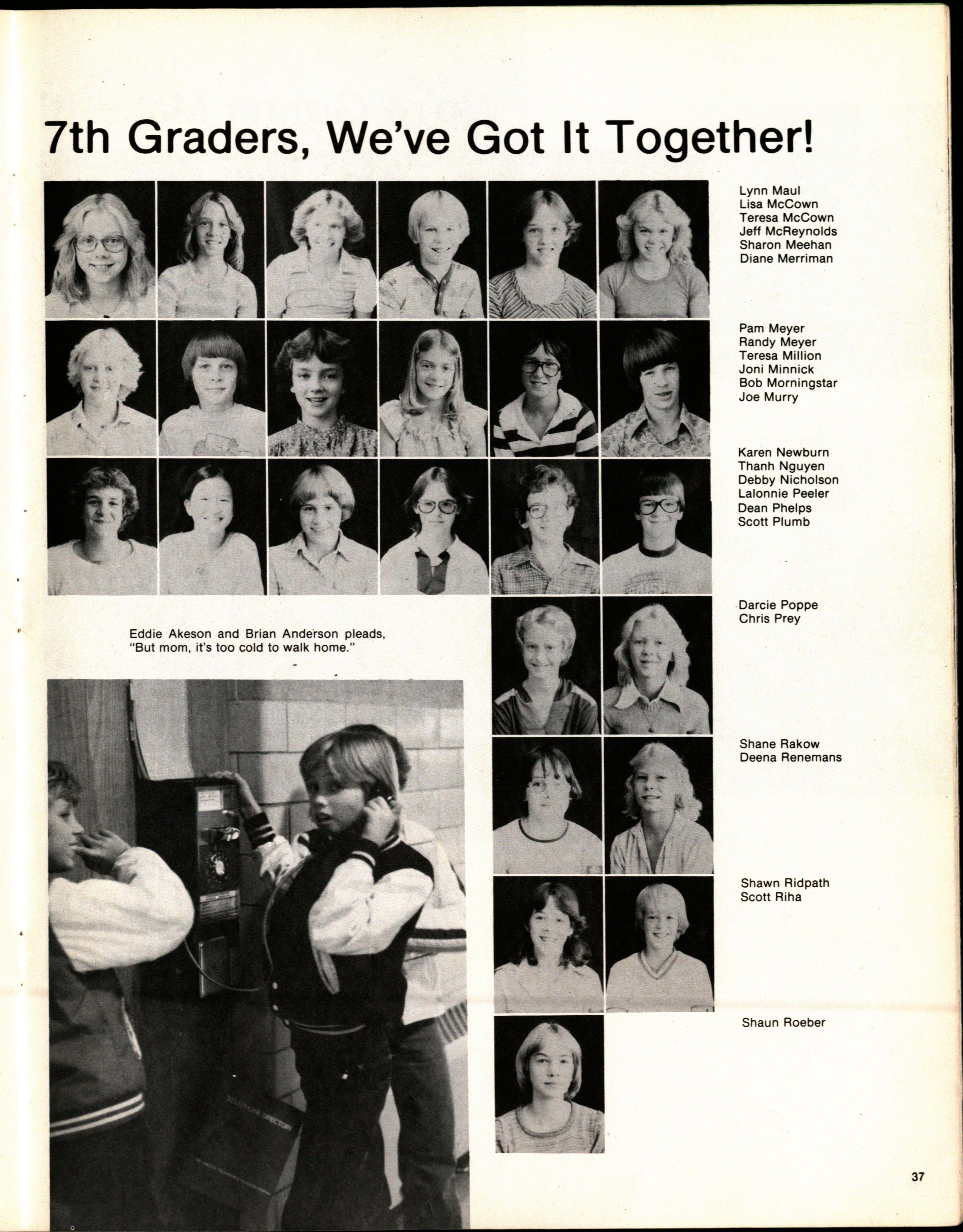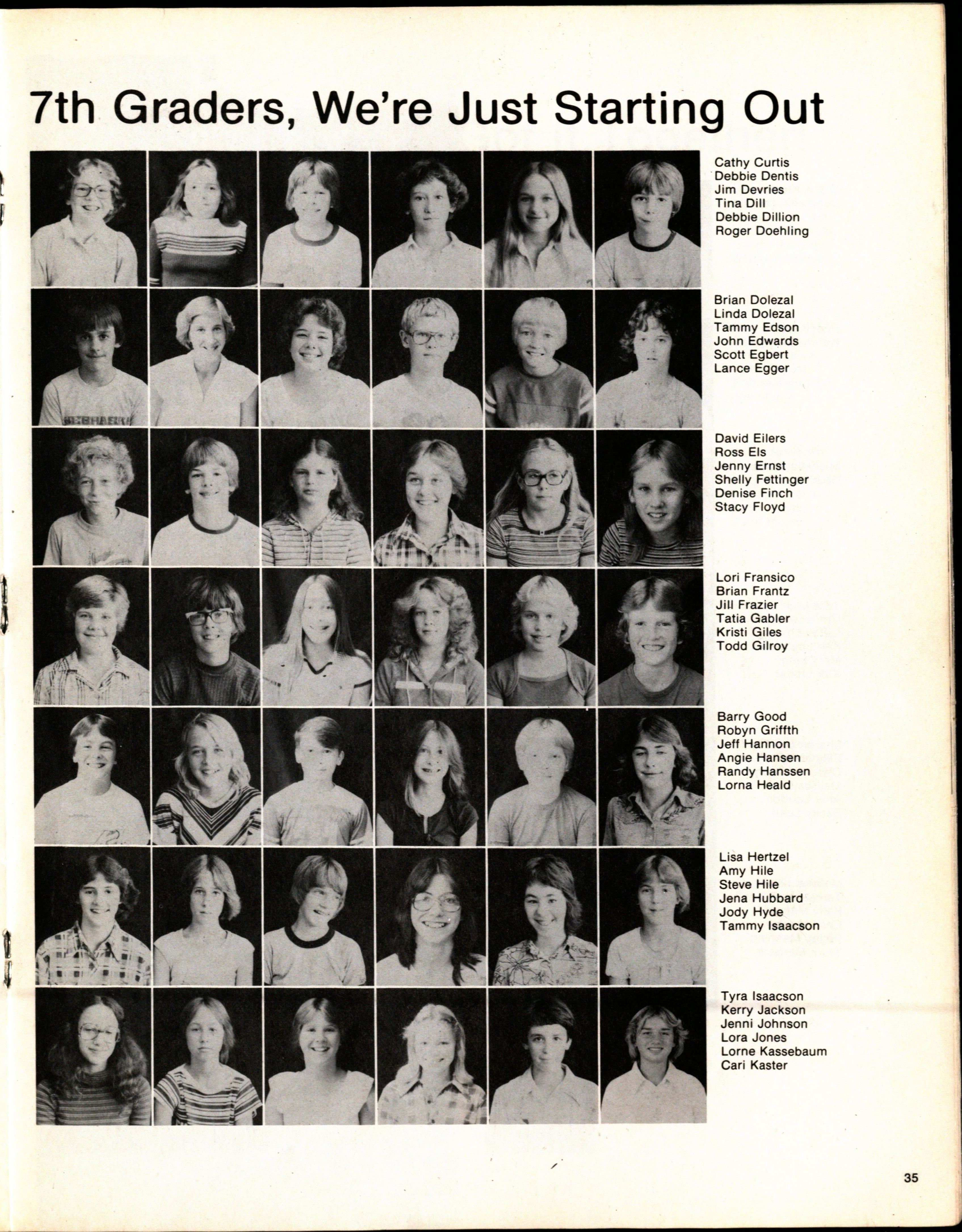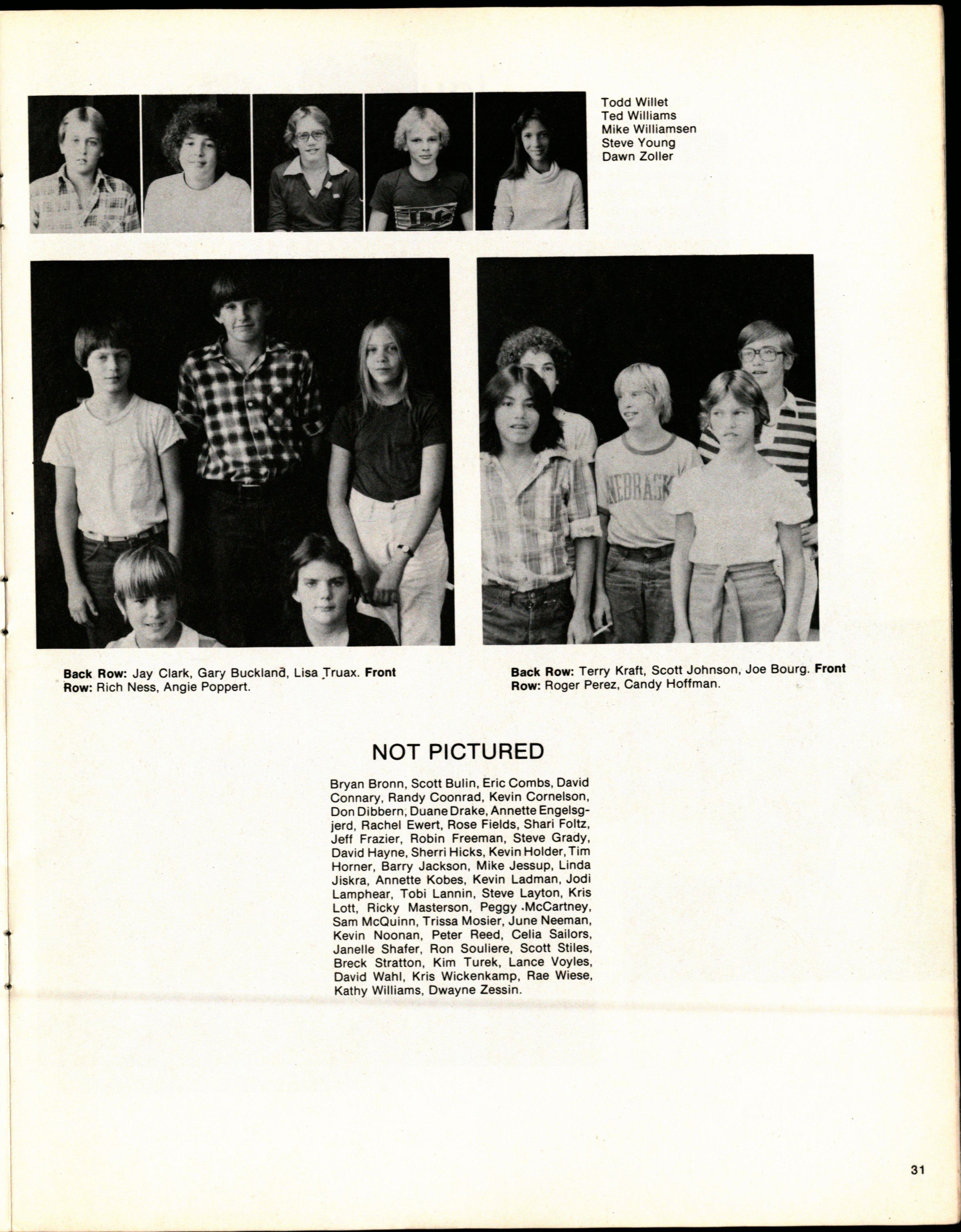 7th Grade Girls: Front Row: Amy Petracek , Cathy Curtis, Lisa Calfee , Kristi G iles. Back Row: Sheila Bentz , Debbie Nicholson , Joni Minnick, Shaunelle Roeber , Linda Dolezal.