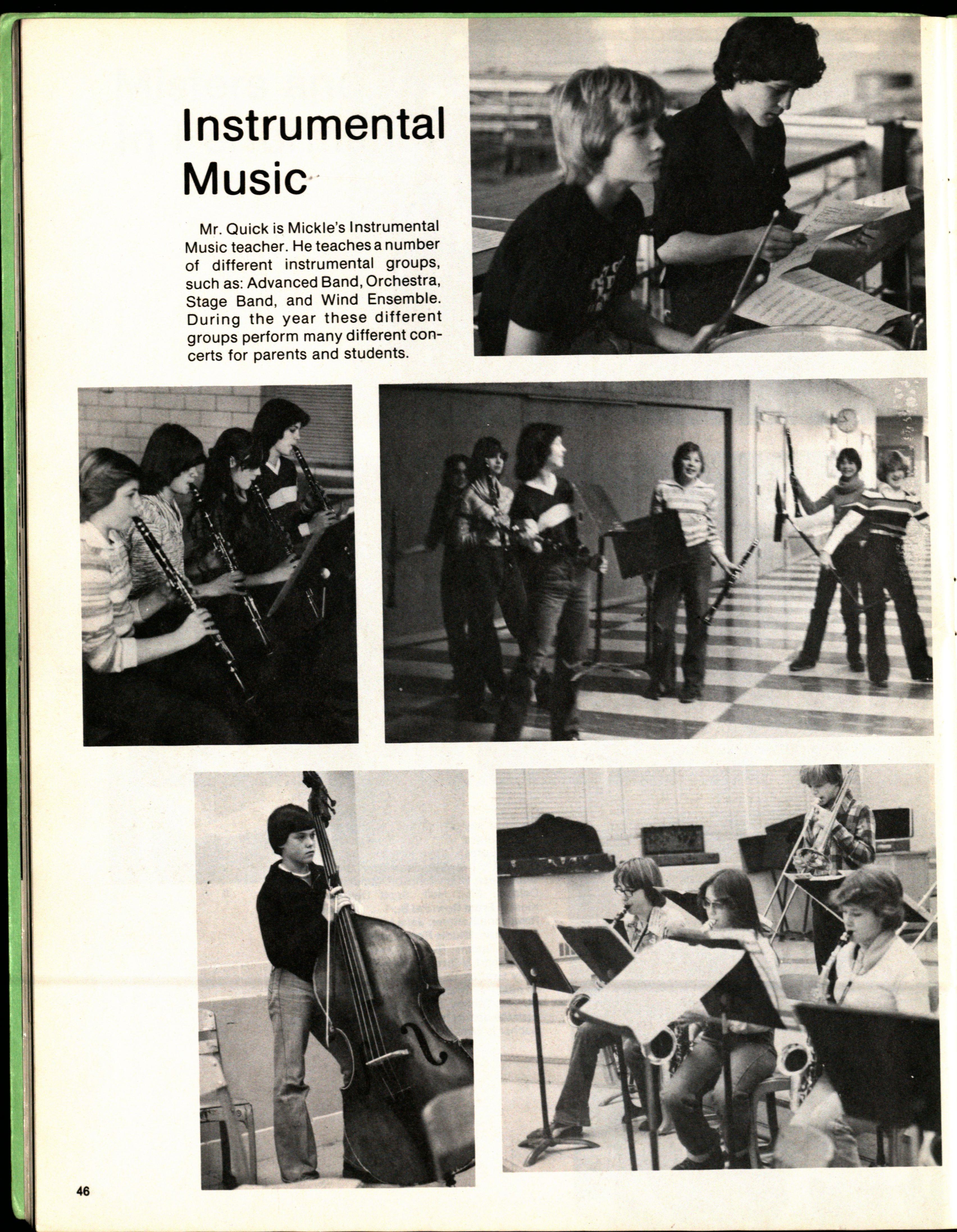 Mr. Quick i$ Mickie ' s Instrumental Music teacher. He teaches a number of different instrumental groups, such as: Advanced Band, Orchestra, Stage Band, and Wind Ensemble. During the year these different groups perform many different concerts for parents and students.