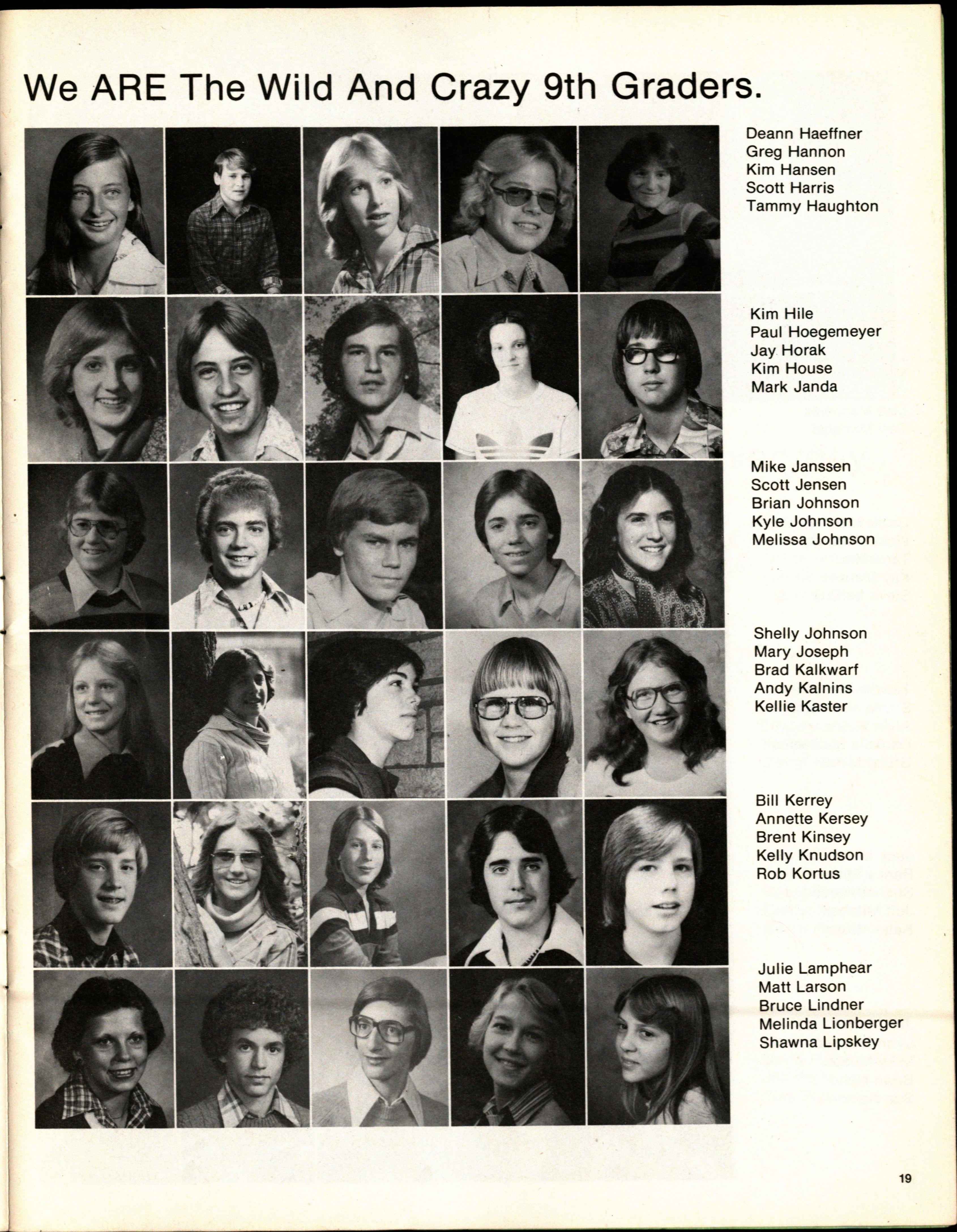 Front Row: Deann Haeffner, Jeanie Clasey , Patty Grafleman , Linda Pitch i e , Julie Peterson, Jacque Brodd 9th Grade Boys