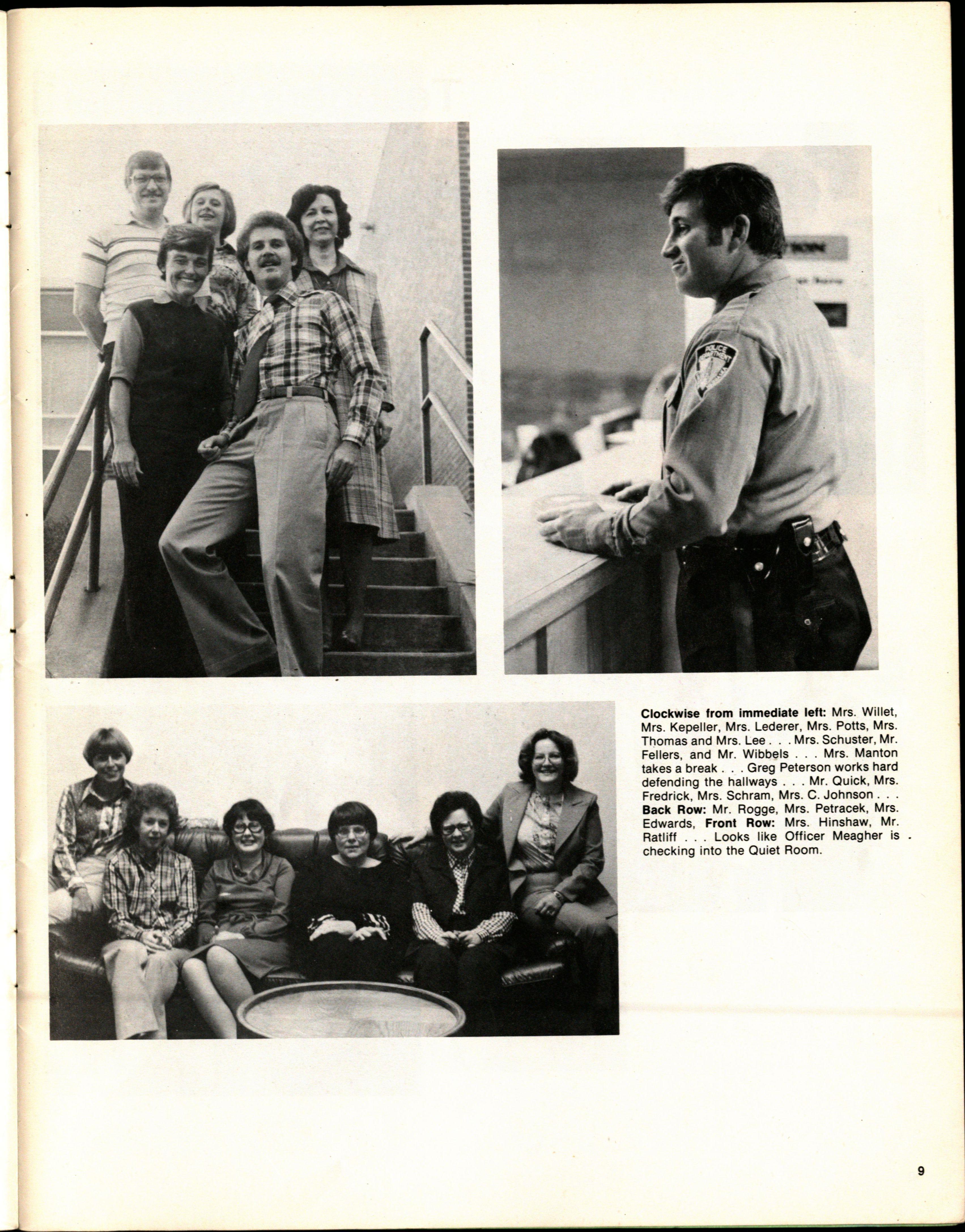 Mrs Thomas and Mrs Lee Mrs. Schuster , Mr Fellers , and Mr Wibbels Mrs Manton takes a break Greg Peterson works hard defending the hallways Mr. Quick , Mrs Fredrick , Mrs Schram , Mrs. C Johnson ... Back Row: Mr. Rogge , Mrs. Petracek , Mrs Edwards , Front Row: Mrs Hinshaw , Mr Rat liff Looks like Off i cer Meagher is checking i nto the Quiet Room