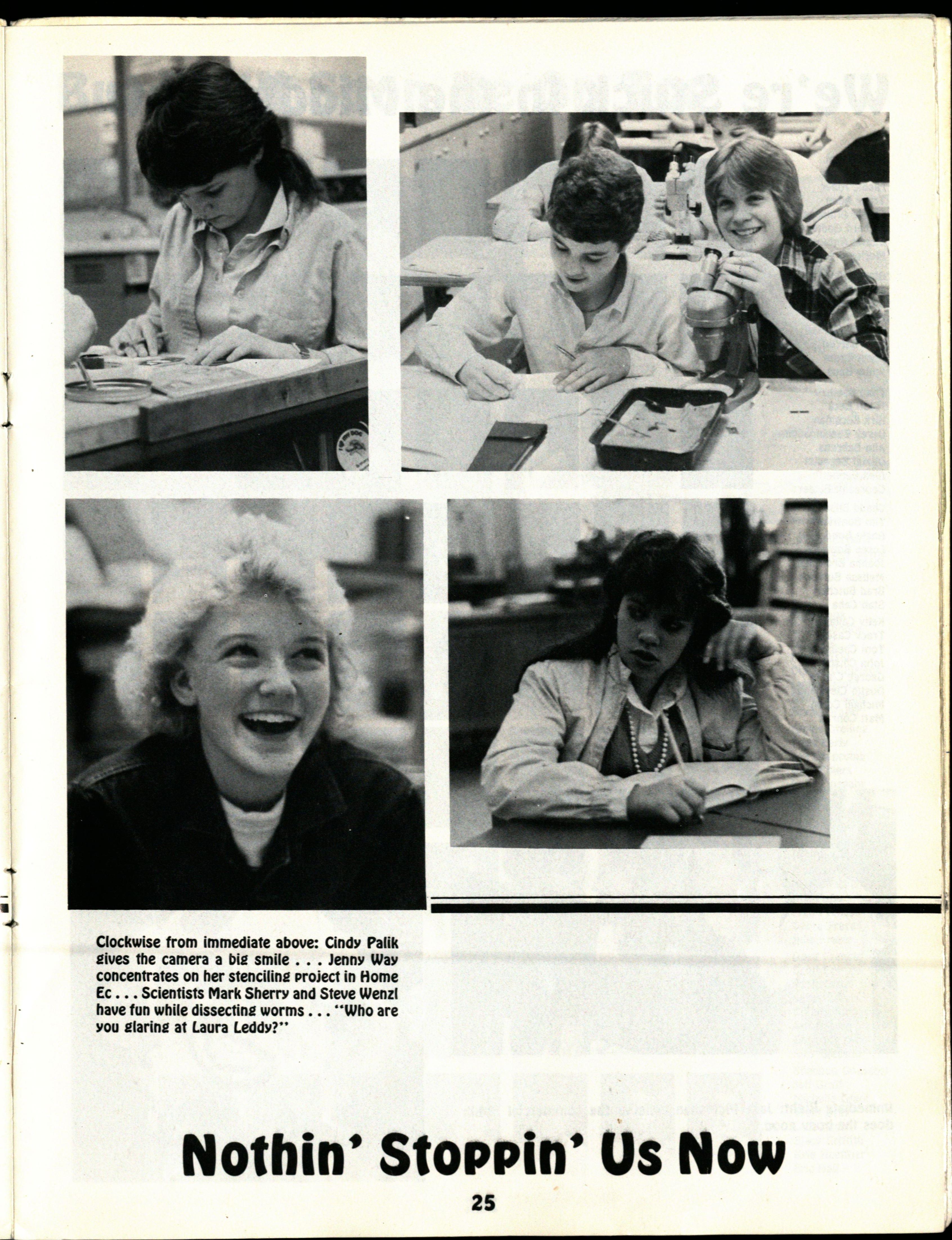 Clockwise from immediate above: Tonya Boatriaht is takina notes in Enalish Readina Shane takes areat concentration. as shown by Bill Mericle... Mrs. Euler·s class works on their map skills Nicole Stahnke takes a break from her daily work.