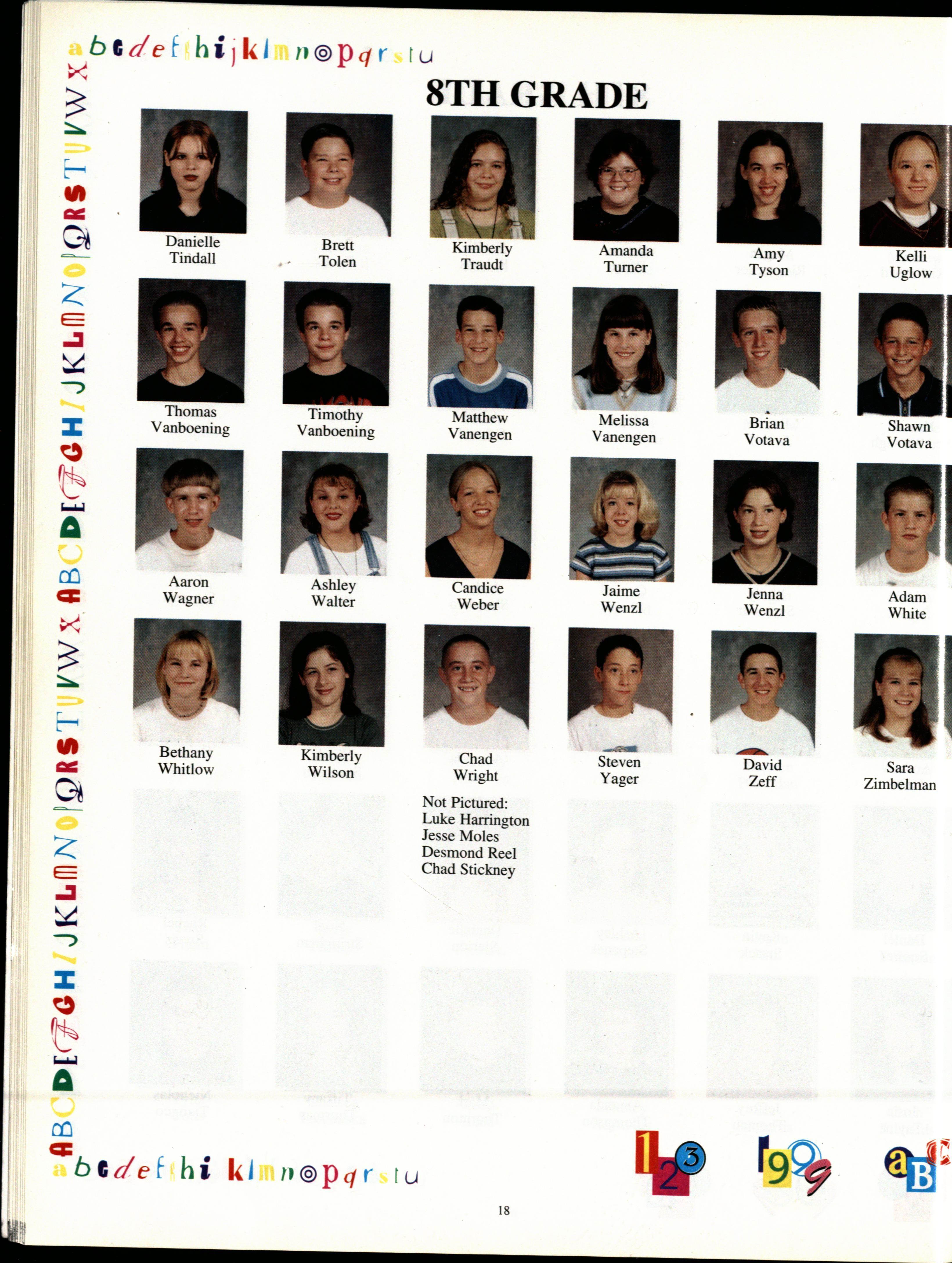 8th grade Row 1: Jenna Smith, Laura Olinger, Sara Cartwright, Rachel Suesz , Lyndsey Bates , Deana Bowersmith , Leslie Hatten , Samantha Hynek, Holly Edstrom. Row 2: Amanda Snyder , Amanda Thomp on , ikki Oneal , Malerie Menebroker, Autumn Neujahr, Megan Schneider, Charlie Hartshorn , Ashley Gregg, Vane ssa Bowmaster, Jenna Wenzl. Row 3: Chelsea Prochaska , Kim Traudt , Jenny Johnson , Jennifer Johnson , Lindsay Peder en , Ashley Stepanek, Lindsey Koch, Joslyn Shandera , Melanie Miller , Andrea Bowmaster, Alisha Espelund , Amanda Engle , Tina Bland, Jenny Bodfield , Jaime Lacey