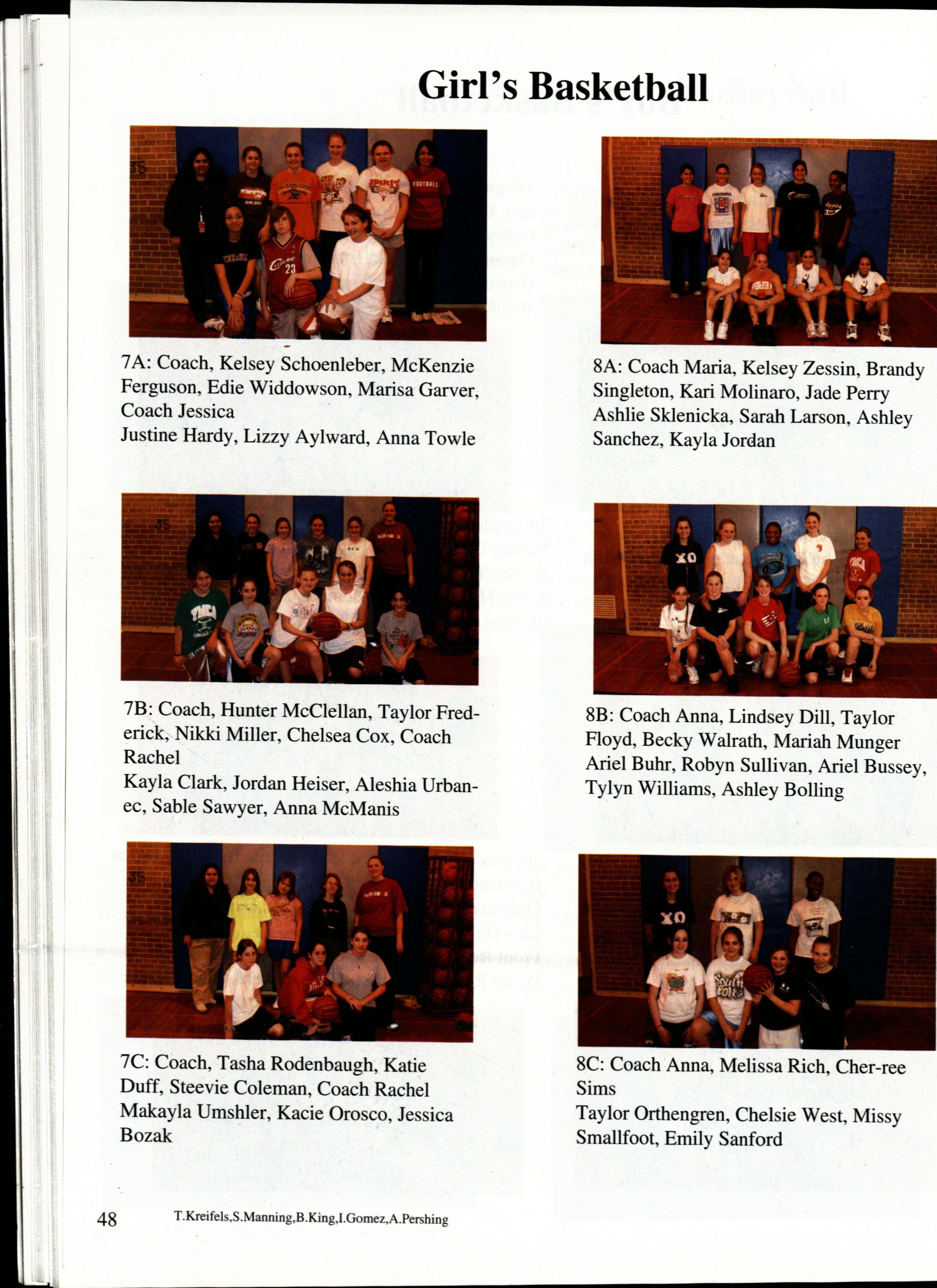 7th Grade A Team: Row 1: Morgan Meyer Bayleigh Collins , Marisa Garver , Kelsey Schoenleber , Mckenzie Ferguson , Logan Lapage