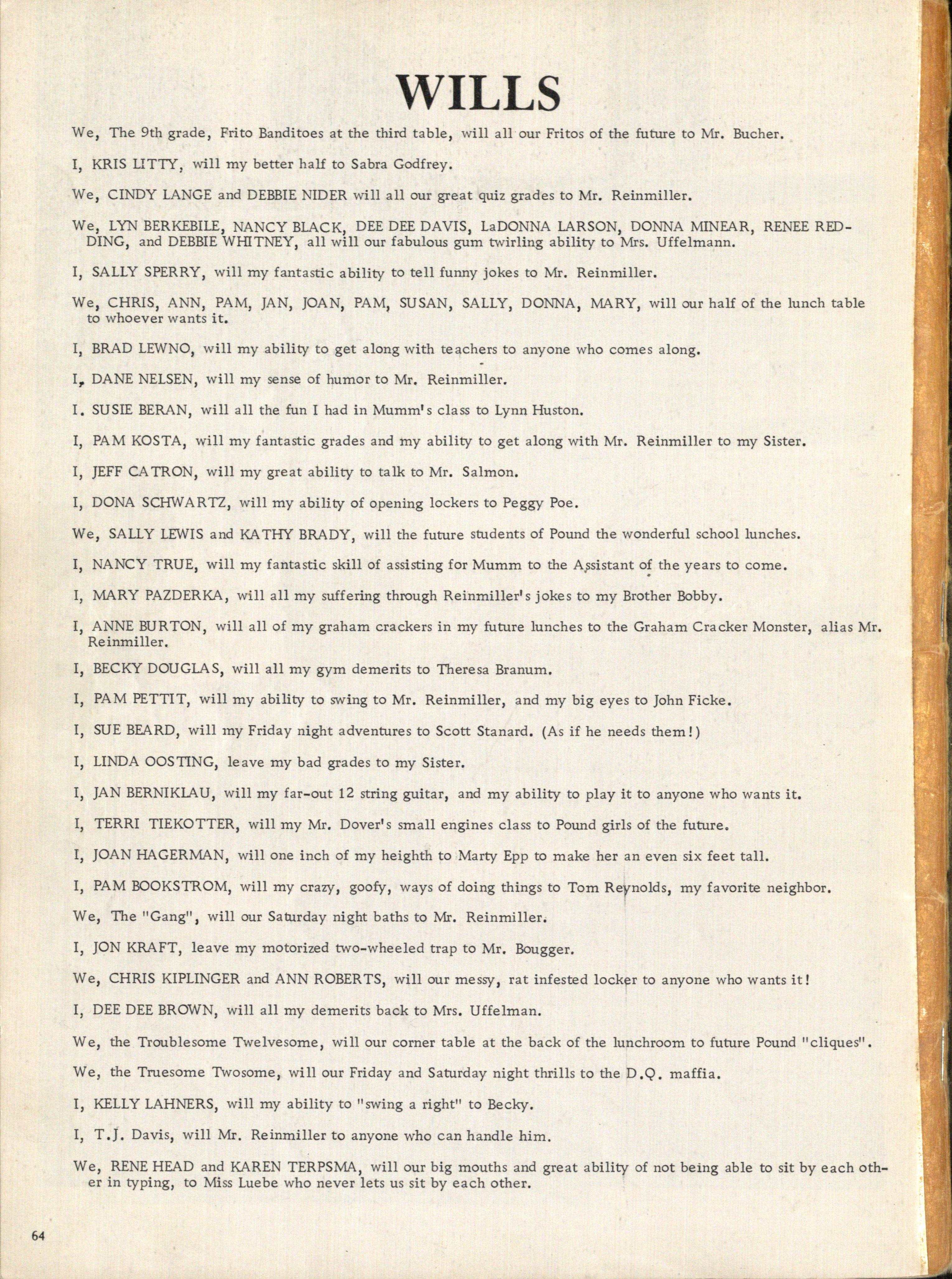 We, the Troublesome Twelvesome, will our corner table at the back of the lunchroom to future Pound "cliques".