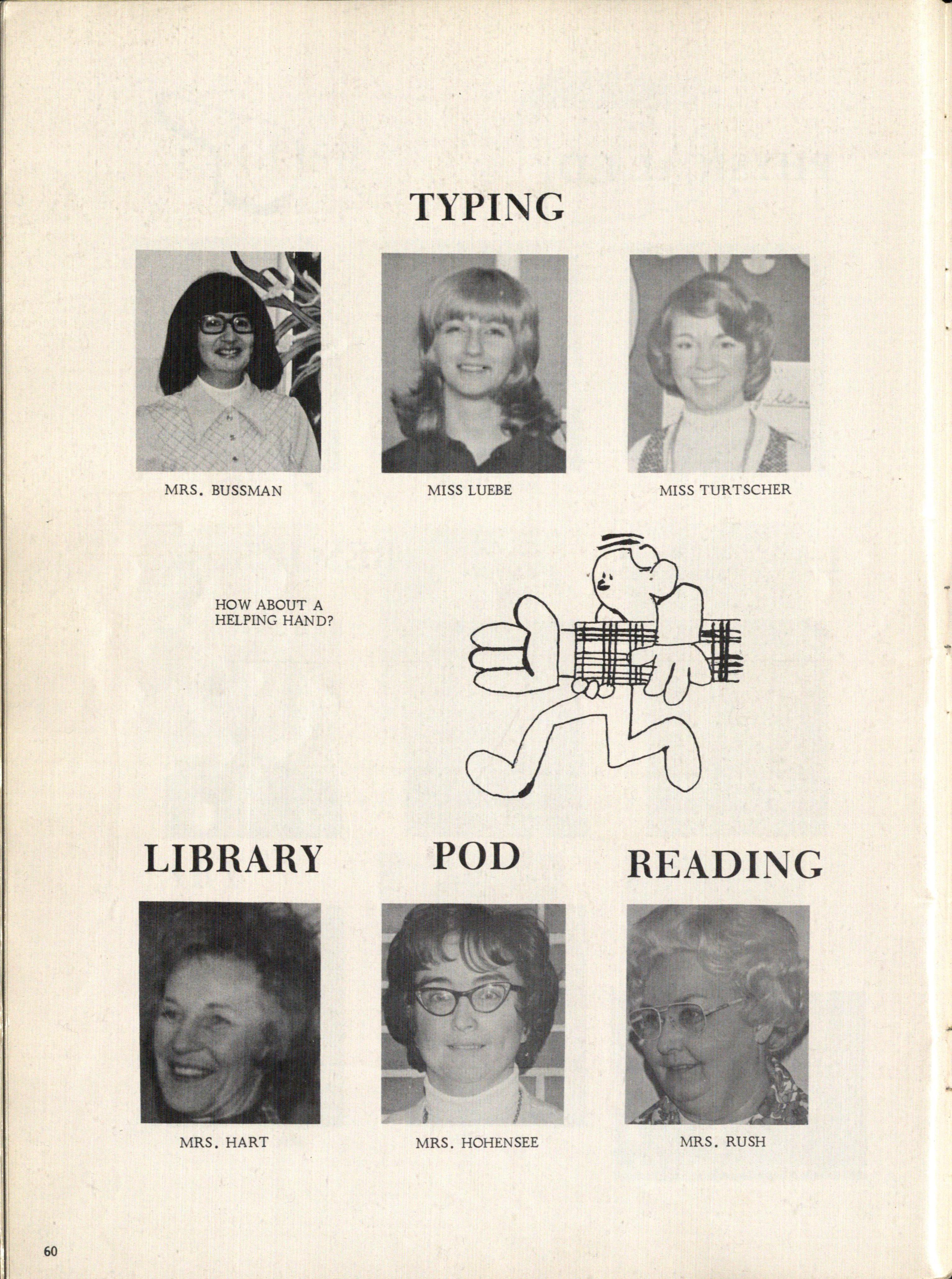 We, RENE HEAD and KAREN TERPSMA, will our big mouths and great ability of not being able to sit by each other in typing, to Miss Luebe who never lets us sit by each other.