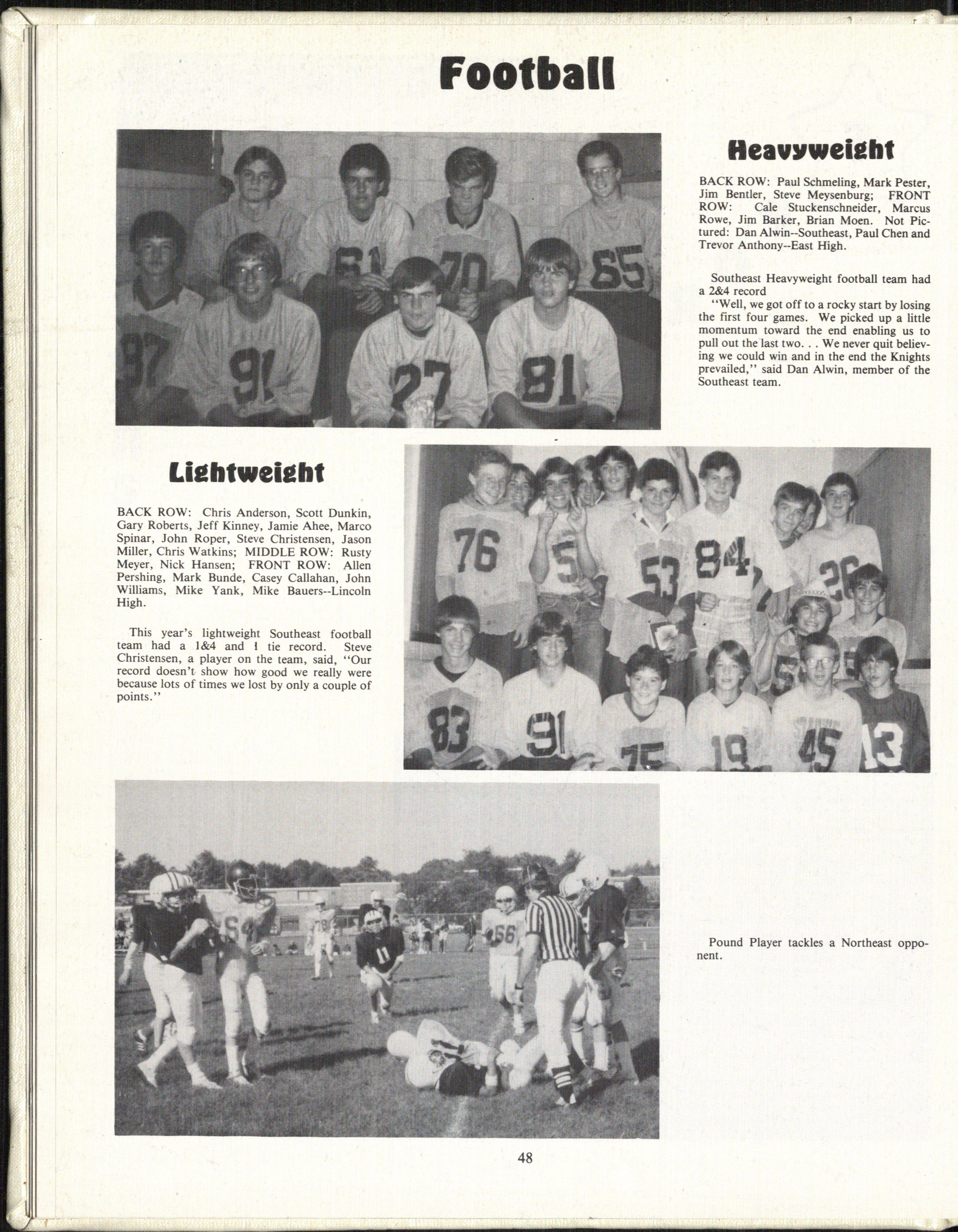 This year's lightweight Southeast football team had a I &4 and I tie record. Steve Christensen, a player on the team, said, "Our record doesn't show how good we really were because lots of times we lost by only a couple of points "