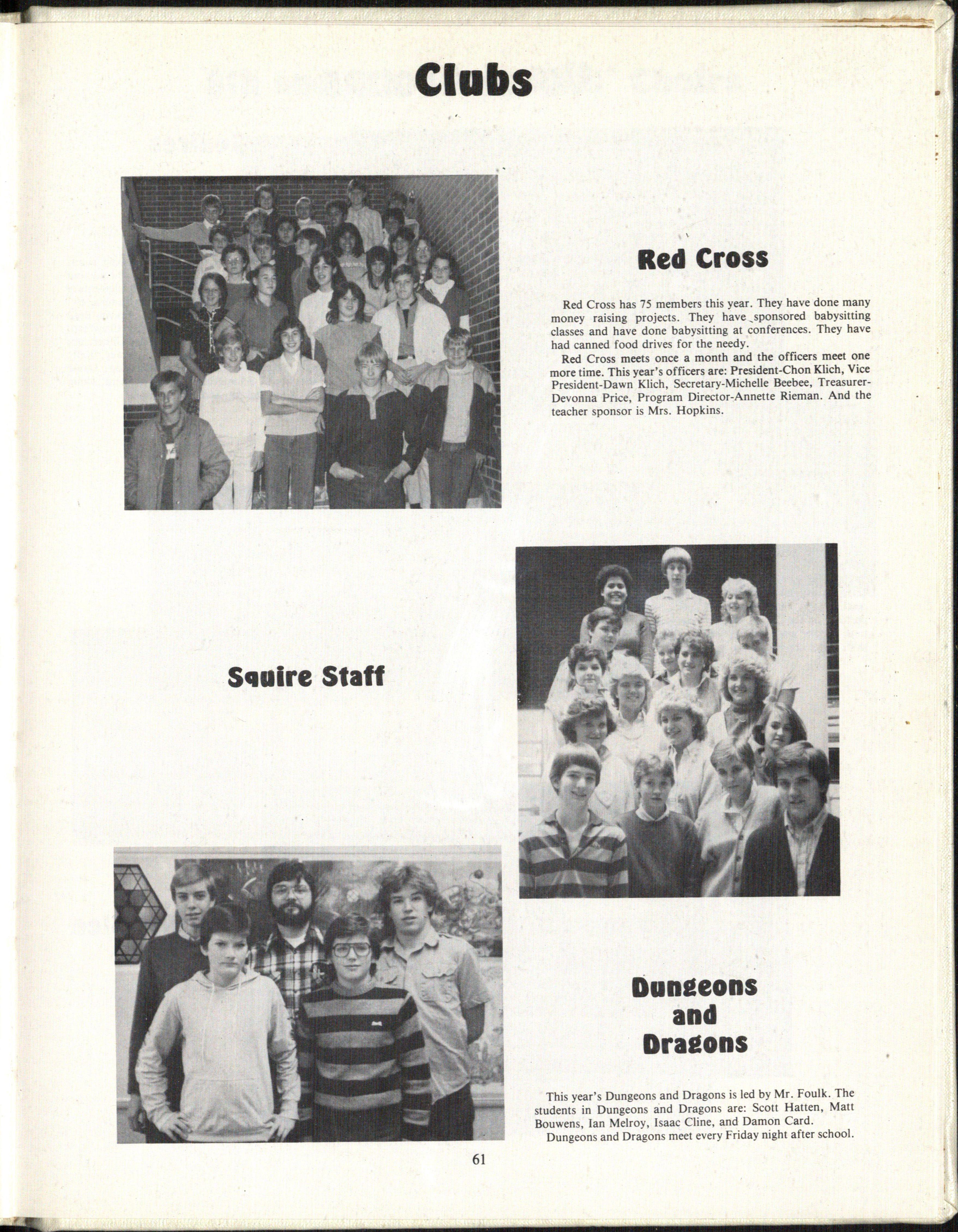 The Co-ed Basketball teams this year were: Rownd's Squares, Dead Brain Cells, Streakers, Terrible Ten, Puddles, Scabs, Oops, Dunk Dunks Dunker Dunkers, Team, Prissy and the Superstars , David and his Disciples, Bulls, Nicks, Golden Trojans and Hoyas.