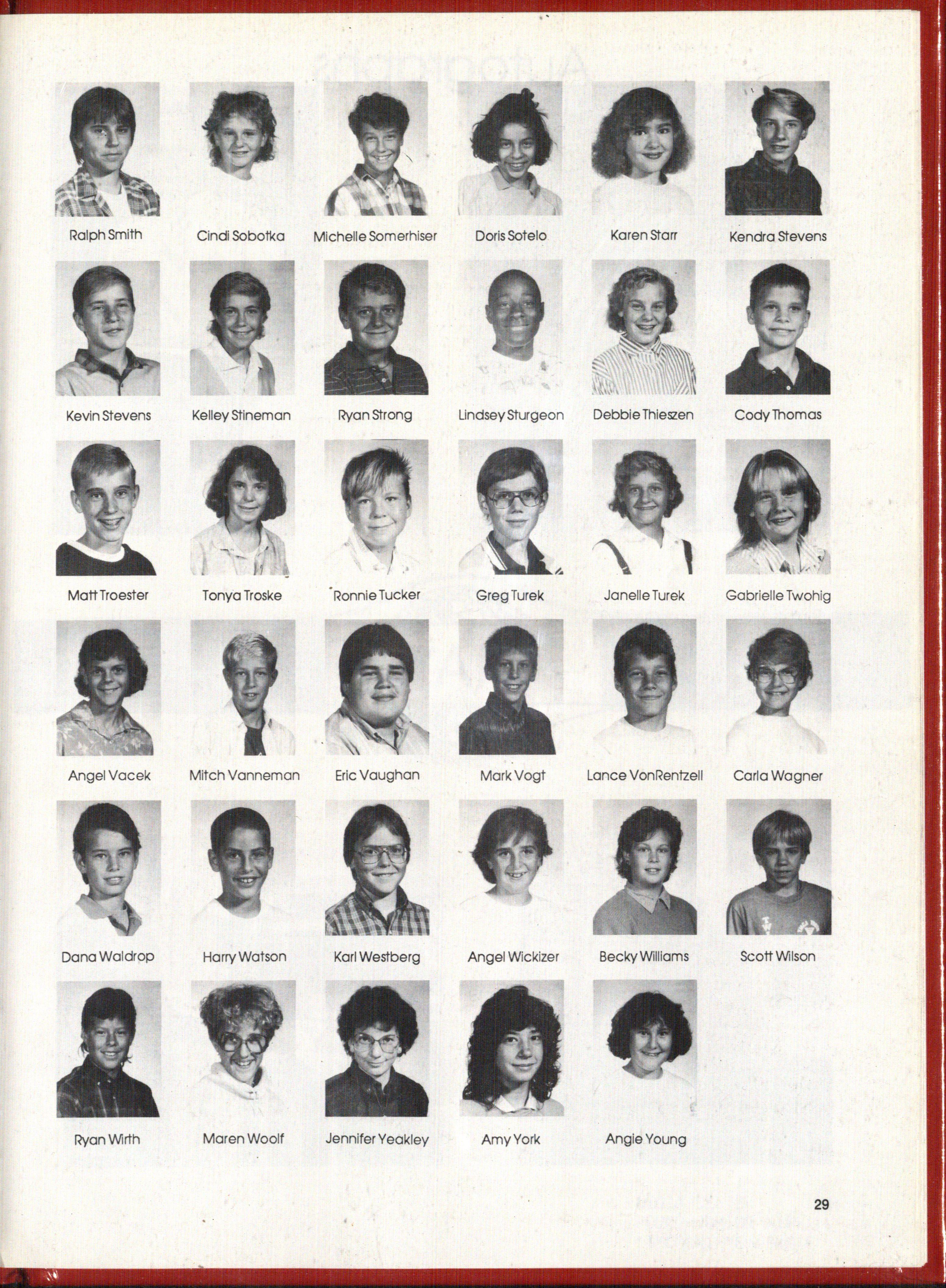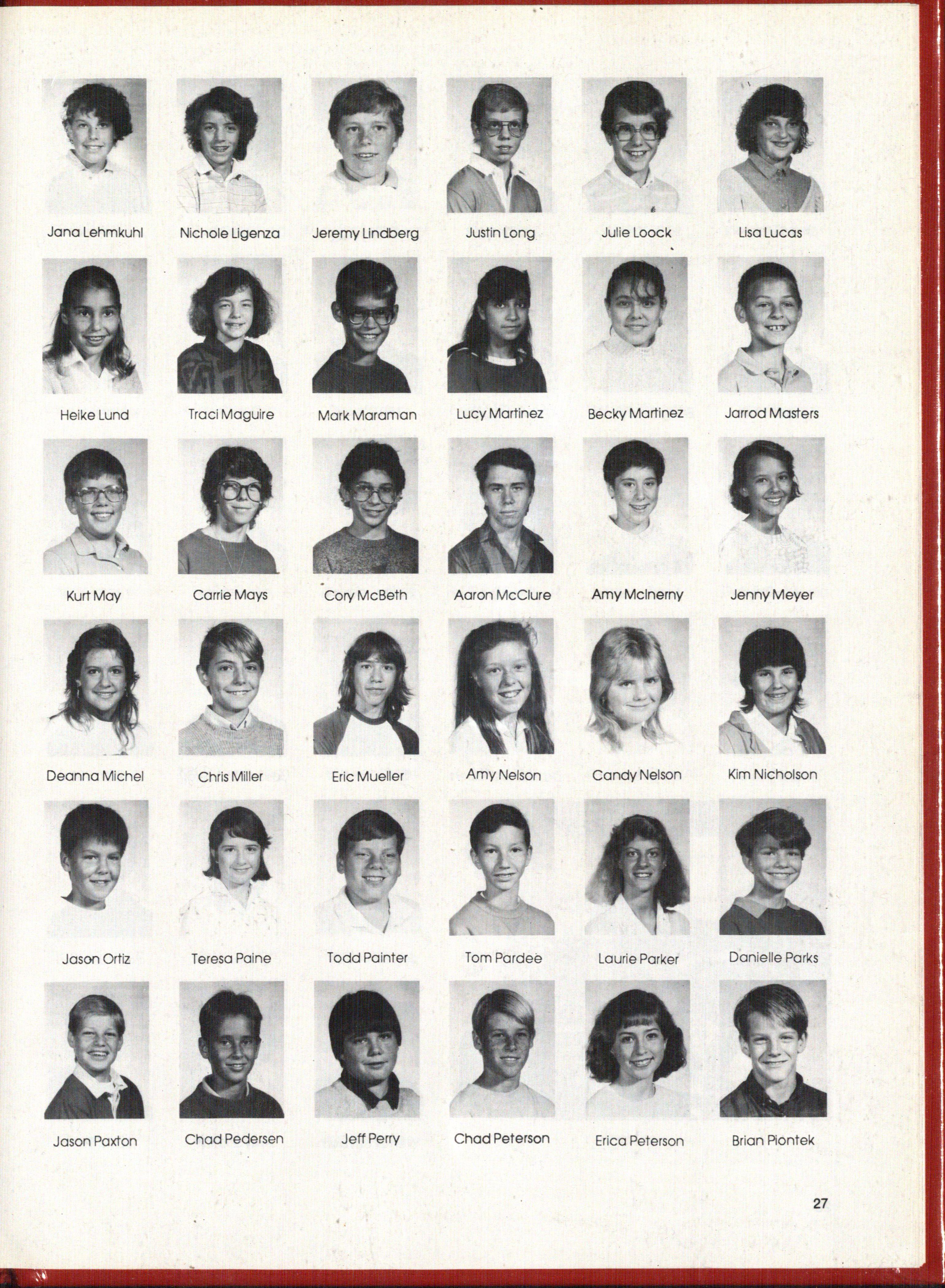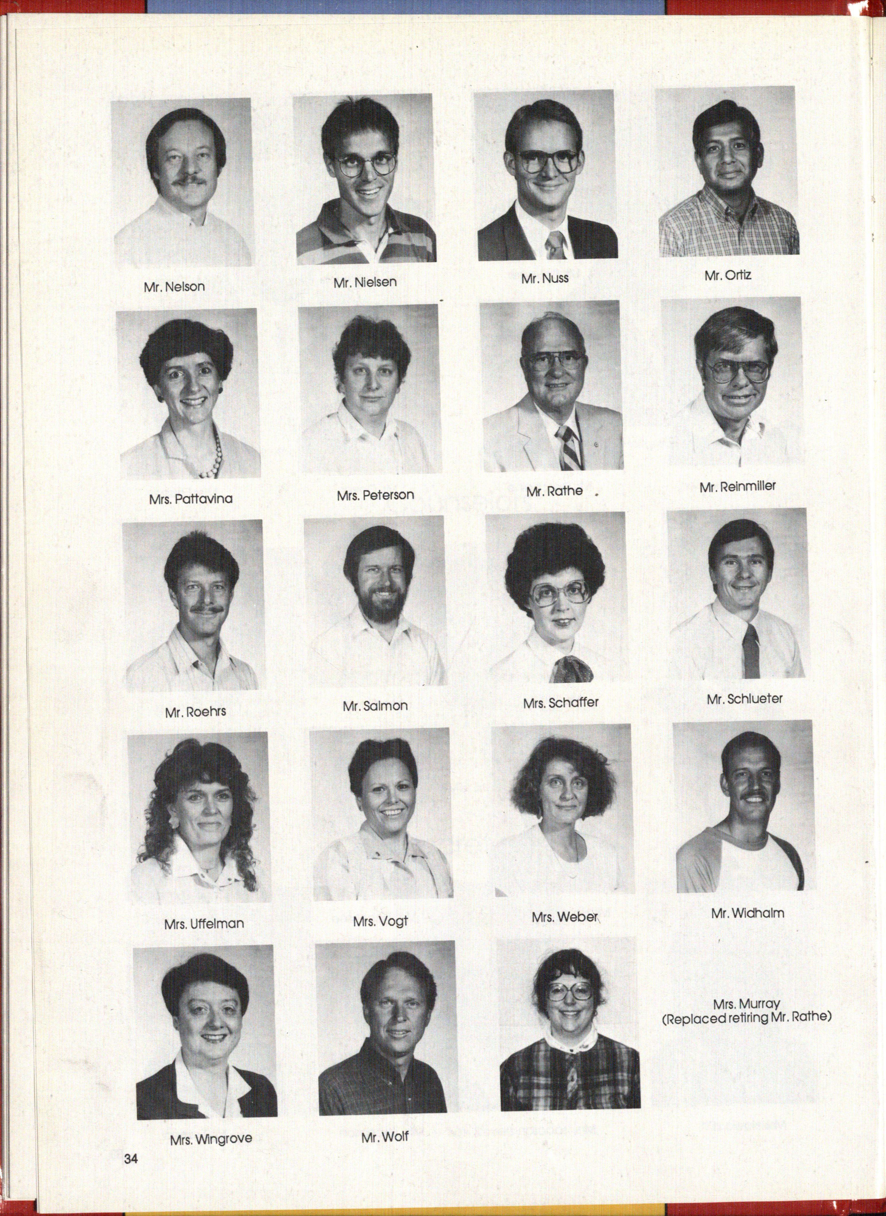 TOP ROW: Doris Sotelo, Jenny · Yeakley, Kim Nicholson, April Patrick; FIFTH ROW: Nicki Eisele. Angie Scheinost. Jill Carney, Jill Blobaum. Debbie Thieszen, Andrea Francis; FOURTH ROW : Maggie Murphy, Charlene McKinstry, Hope Schmehl. Crys High, Angie Helms. Chan Huebert. ,\my Hanssen; THIRD ROW: Debbie Rohn. Darby Denny, Darcy Barrett, Mindy Schulz. Dan Weber. Matt Nitchie, Janelle Turek; SECOND ROW: Mrs. Jacobson. Mir: s Fauber; FRONT ROW: Jason Paxton. Shawn Durbin. Amy Thompson. Mrs. Hopkins