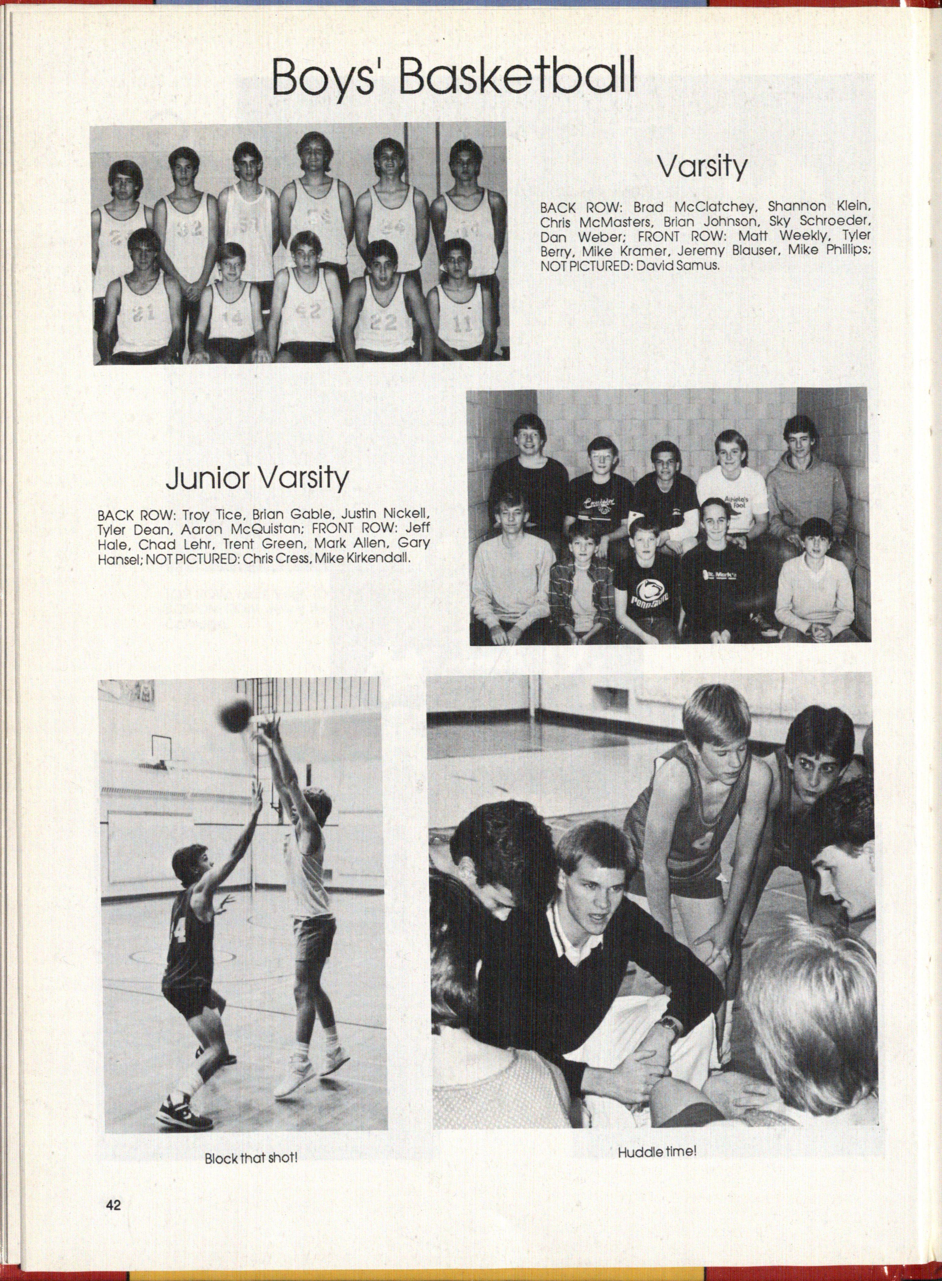 BACK ROW: R. J. Hollcroft, David Samus, Brian Johnson, Shawn Diekmann, Dan Weber; MIDDLE ROW: Brian Plautz. Byron Gorton. Wade Fruhling. Matt Pickering; FRONT ROW: Travis Michel, Rob Zatechka.SkySchroeder,Joe Kruml.