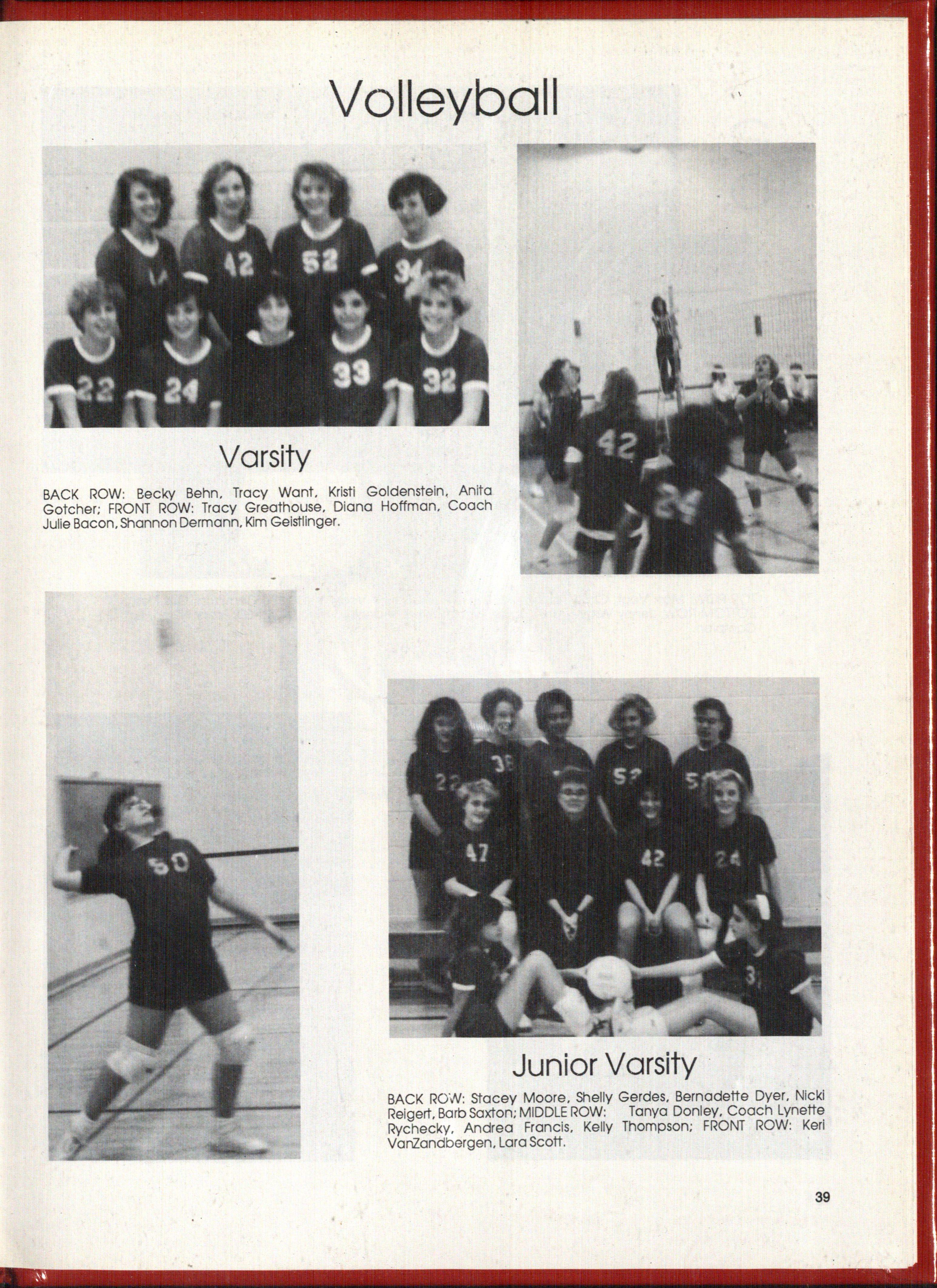 BACK ROW : Coach Lynette Rychecky , Becky Antho lz, Shannon Dermann, Jill Carkin, Ju li e Urwi l er ; SECOND ROW : Jenny Wrightsman, Becky Behn. Brandy Toumbs. Keri VanZandbergen, Lara Scott; FRONT ROW: Rebecca Vosteen, Darcy Bar rett