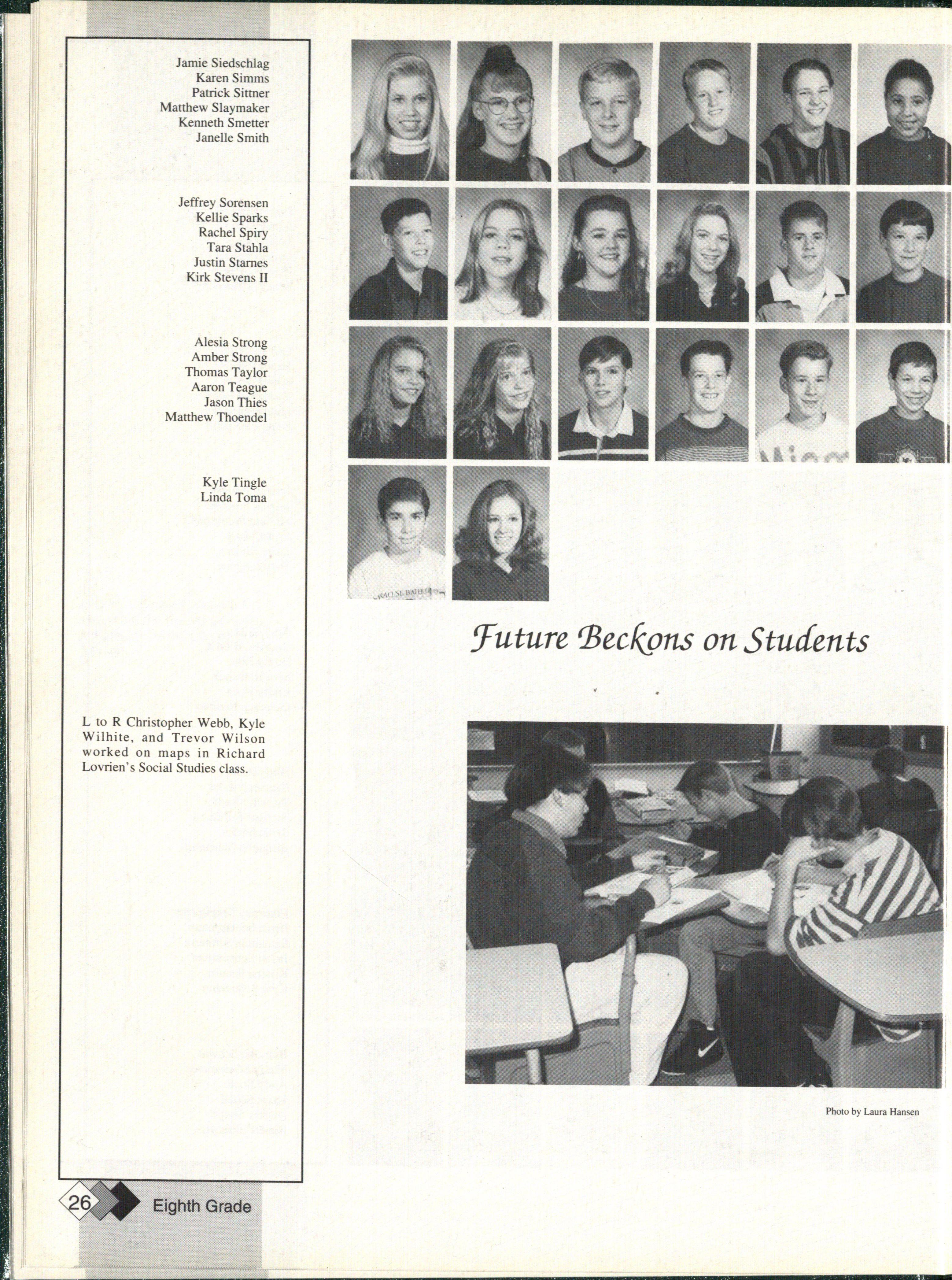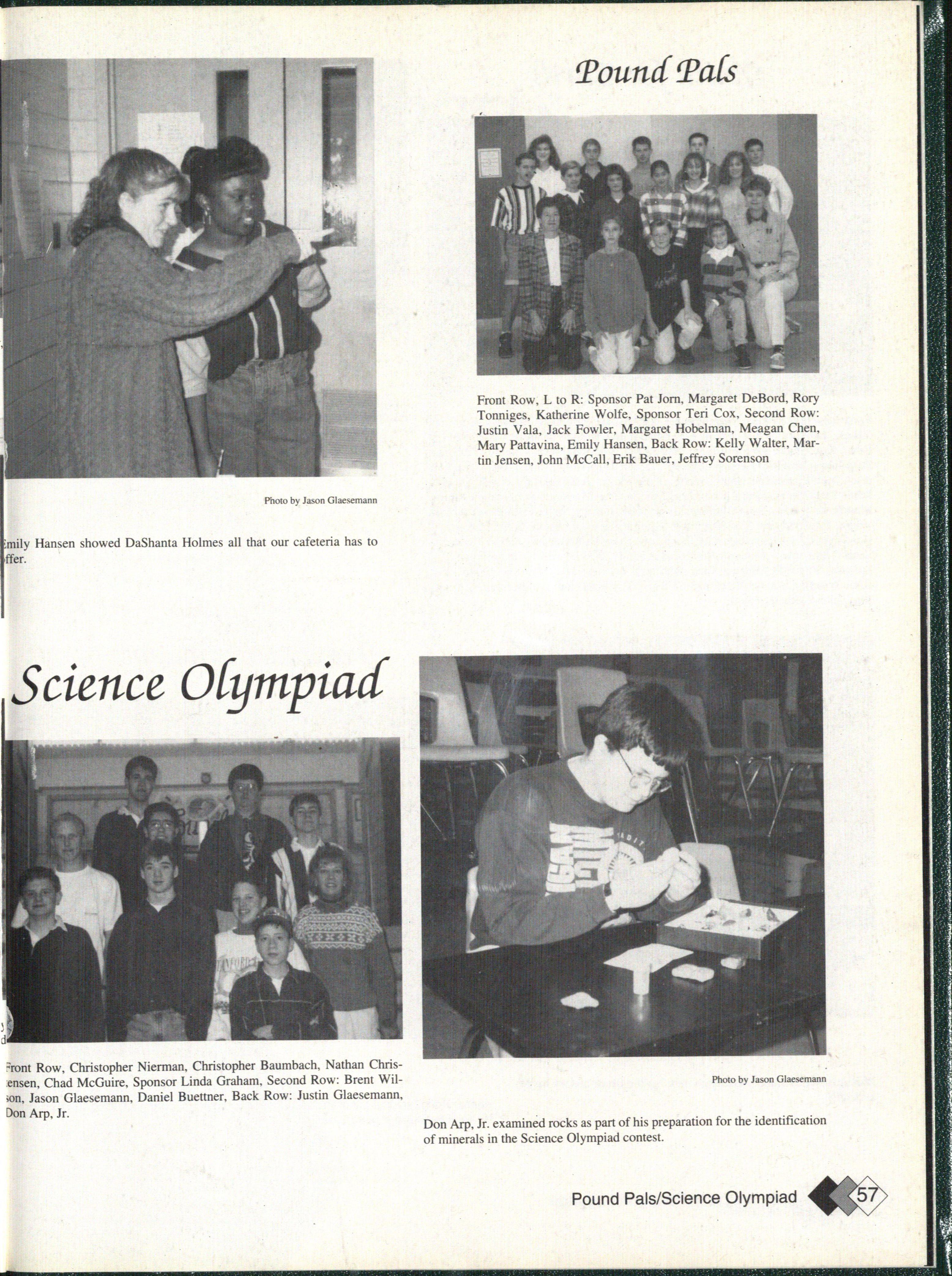 Yearbook Co-editors Reed Anderson and Heather Roth checked mug shot photo s ! bach , Jason Glaesemann. Sixth Row, Don Arp Jr . , Josh Strain. the Yearbook.
