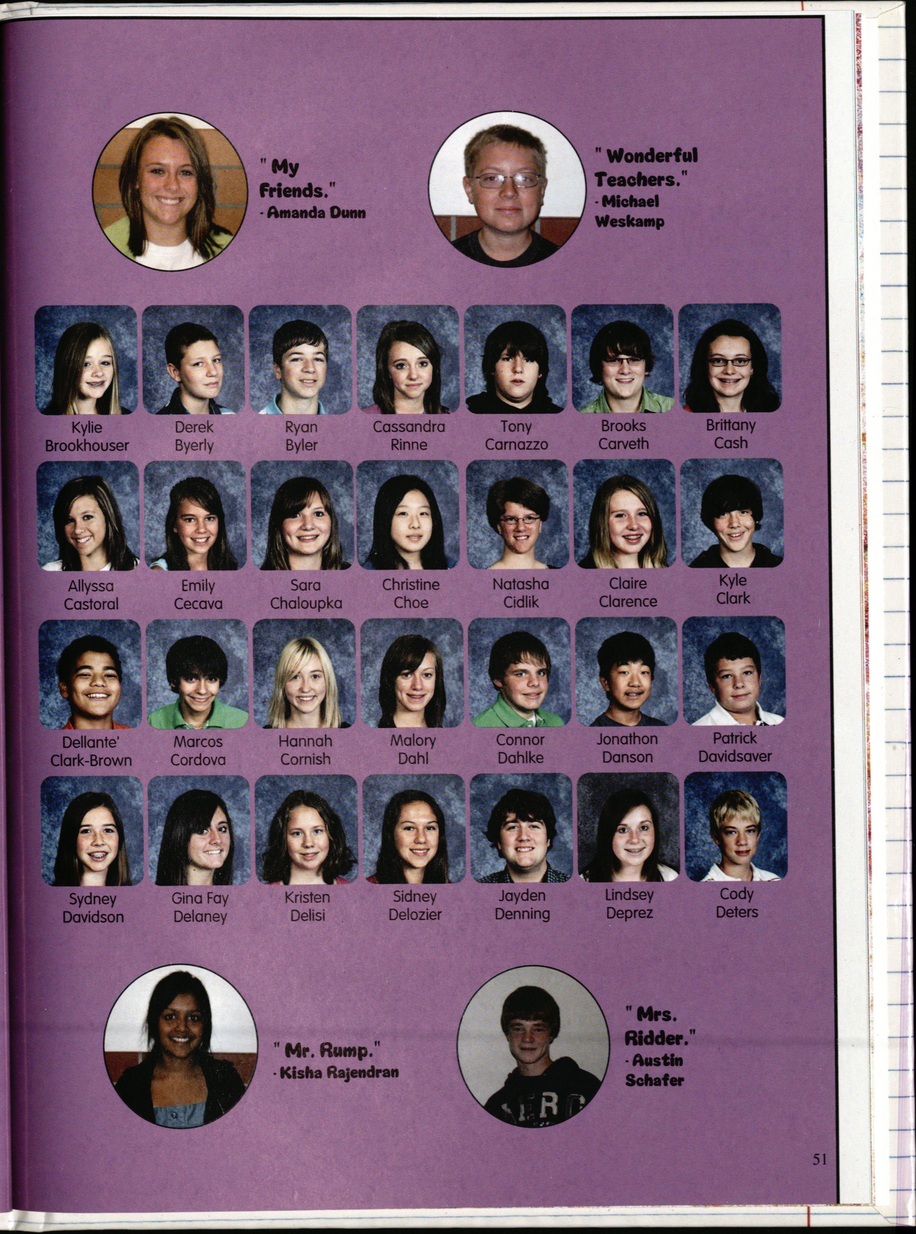 Dear 8th graders, We have gone through so much these past three years. There have been the good times and some bad, we've been friends and foes. Now, we finally have come to the end of our middle school journey but thankfully we will all meet up again next year but this - -....--- .. ime ... as High Schoolers.