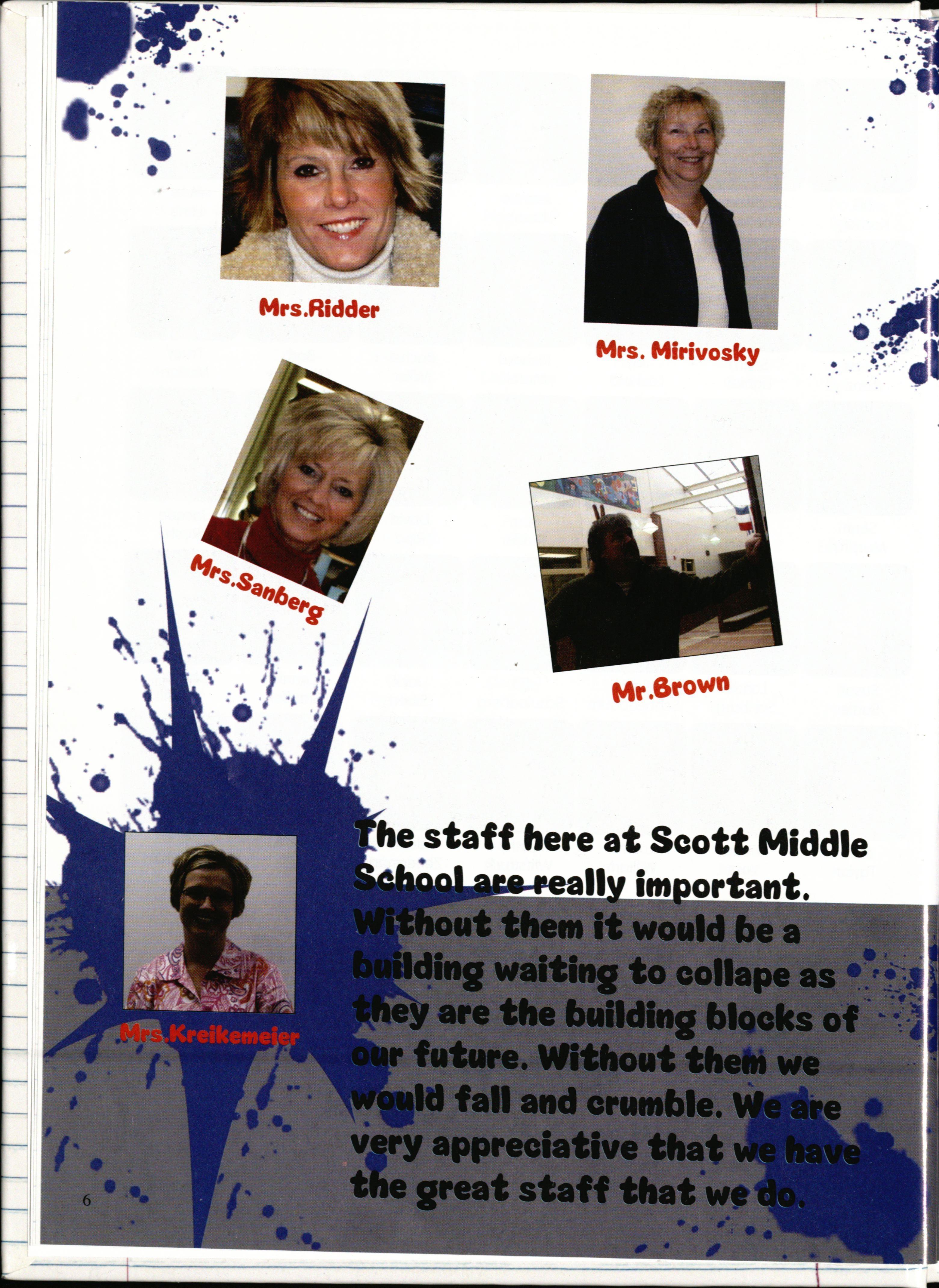 This schoo l year, the publications class has w o rked their hardest to give you Sco tt' s fir st co o r yearbook ever! We thought that the theme , " In Our Own Wor ld " would really relate to the students of Scott And even better, we haven 't eve r had a yearbook anything like this at Sc ott Middle School be f o re . There we re about 27 really great themes pres ent ed to be chosen fr o m, but this one had the most votes to be used as t he 2008-2009 yearbook theme.