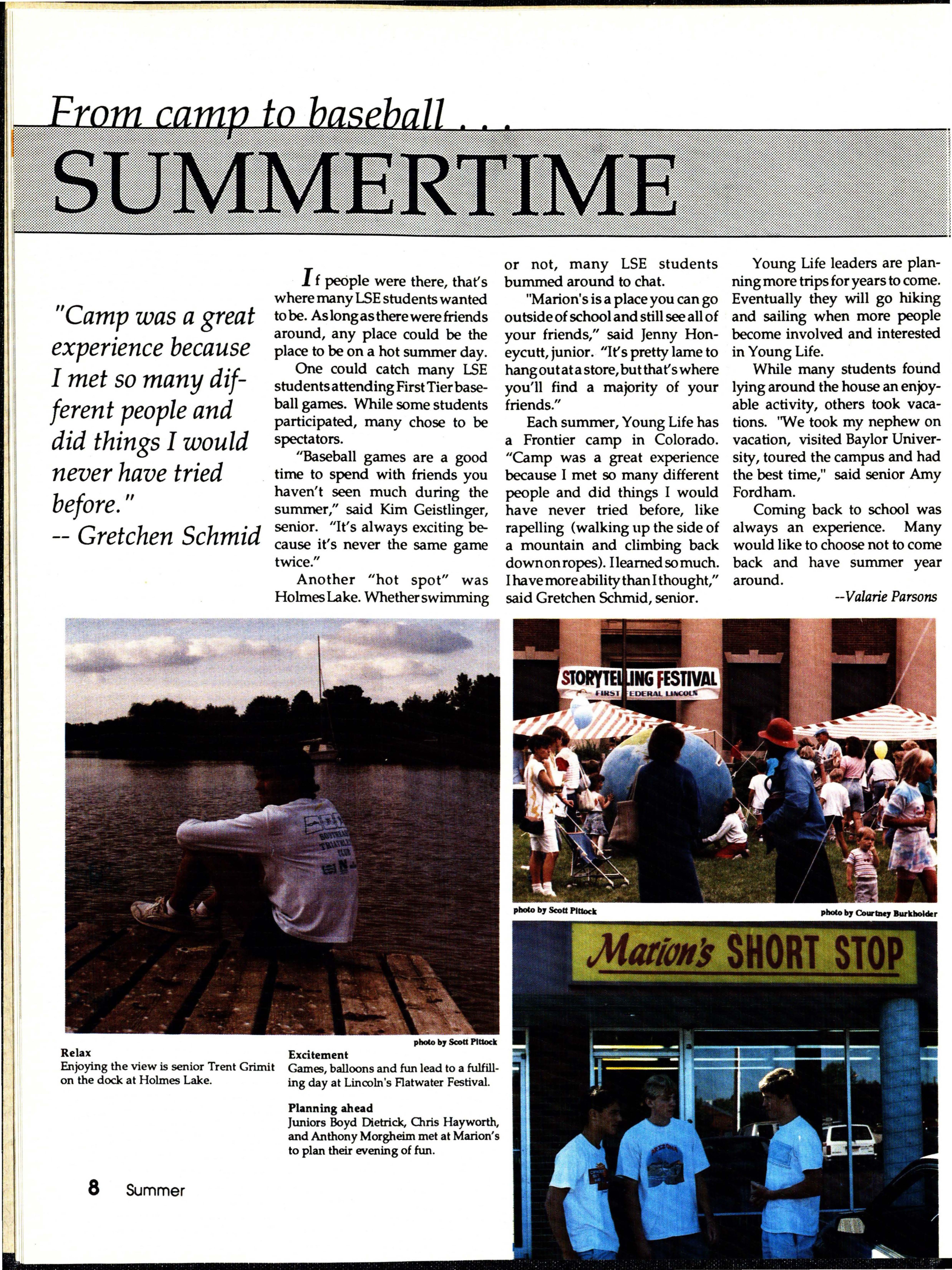 Each summer, Young Life has a Frontier camp in Colorado. "Camp was a great experience because I met so many different people and did things I would have never tried before, like rapelling (walking up the side of a mountain and climbing back downonropes). Ileamedsomuch. lhavemoreabilitythanlthought," said Gretchen Schmid, senior.