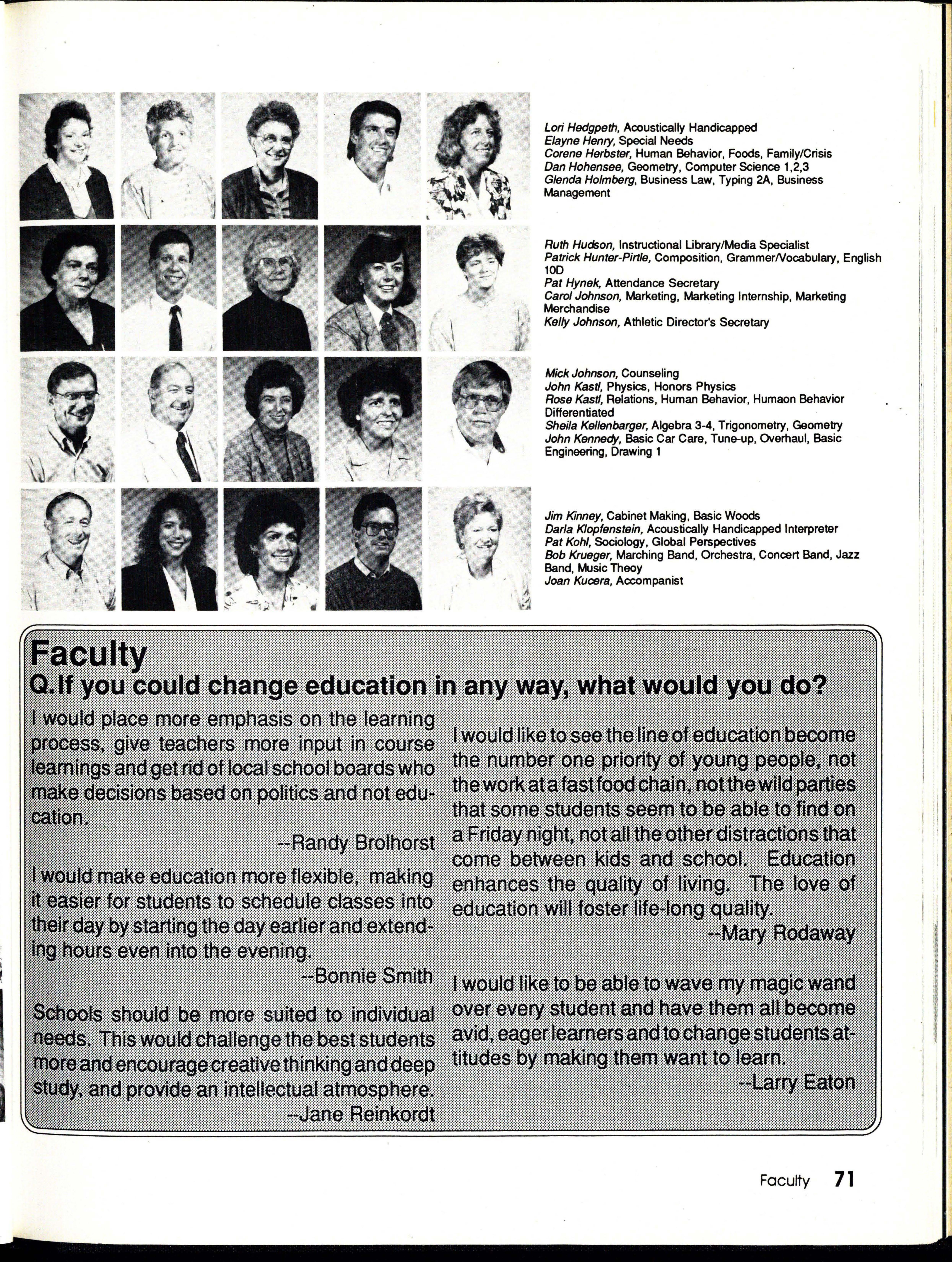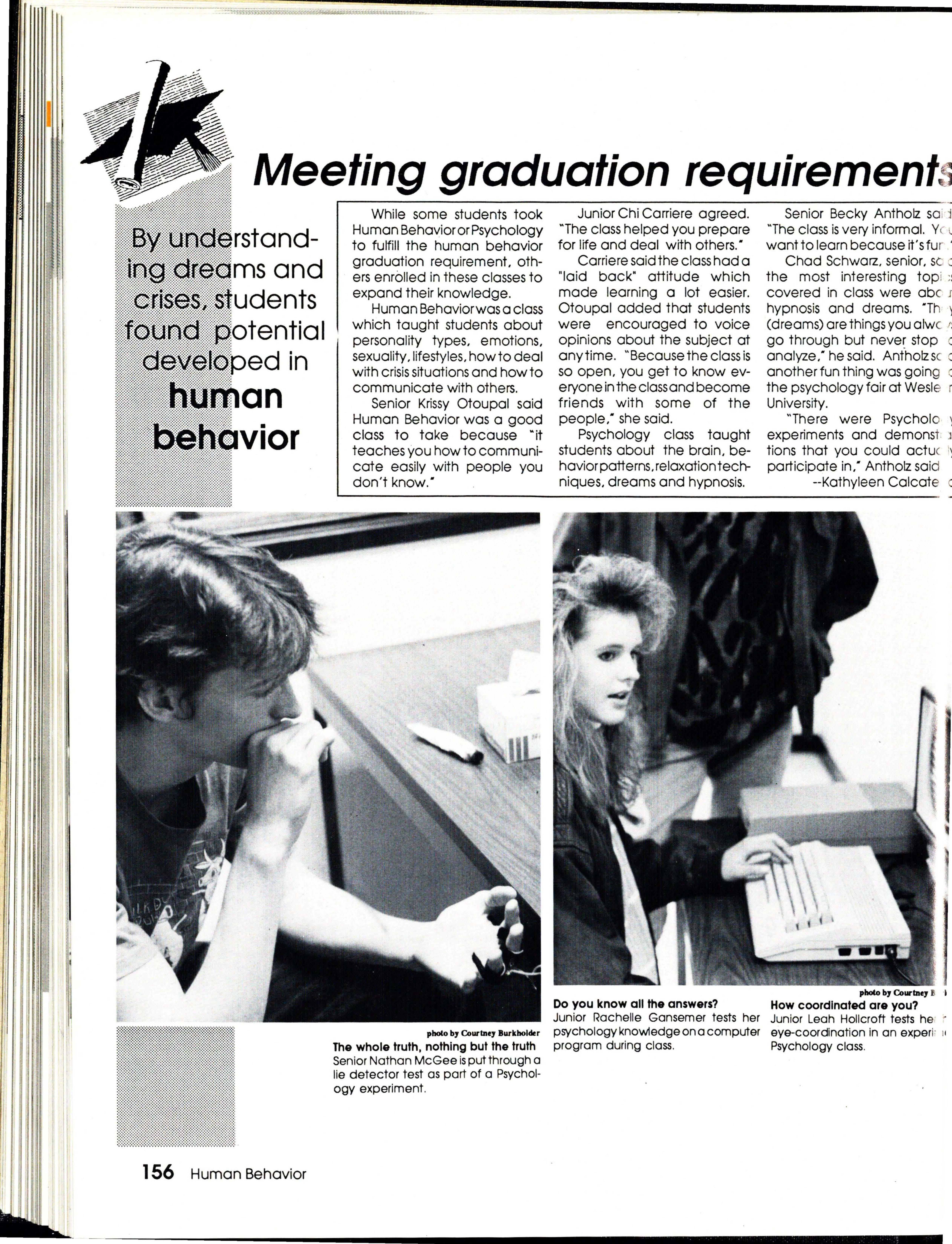 While many students were not athletically inclined, they still had opportunities to prove themselves in different ways. Many people found that hobbies and activities were ways to develop their interests. Junior Stacy Lovelace acted in NBC's Jan. 3 , 1990 edition of 'Unsolved Mysteries .' Pursuing their interests in cheerlead ing , senior Laurie Hanwell, was named All-American Cheerleader, juniors Casey McNair and Jackie Prater earned All-Star Cheerleader titles, and senior Jen Putensen was named Nebraska Superstar Dancer . Junior Andrew Kalish and sophomore Daniel Kalish won a regional bridge tournament. winning $500 scholarships.
