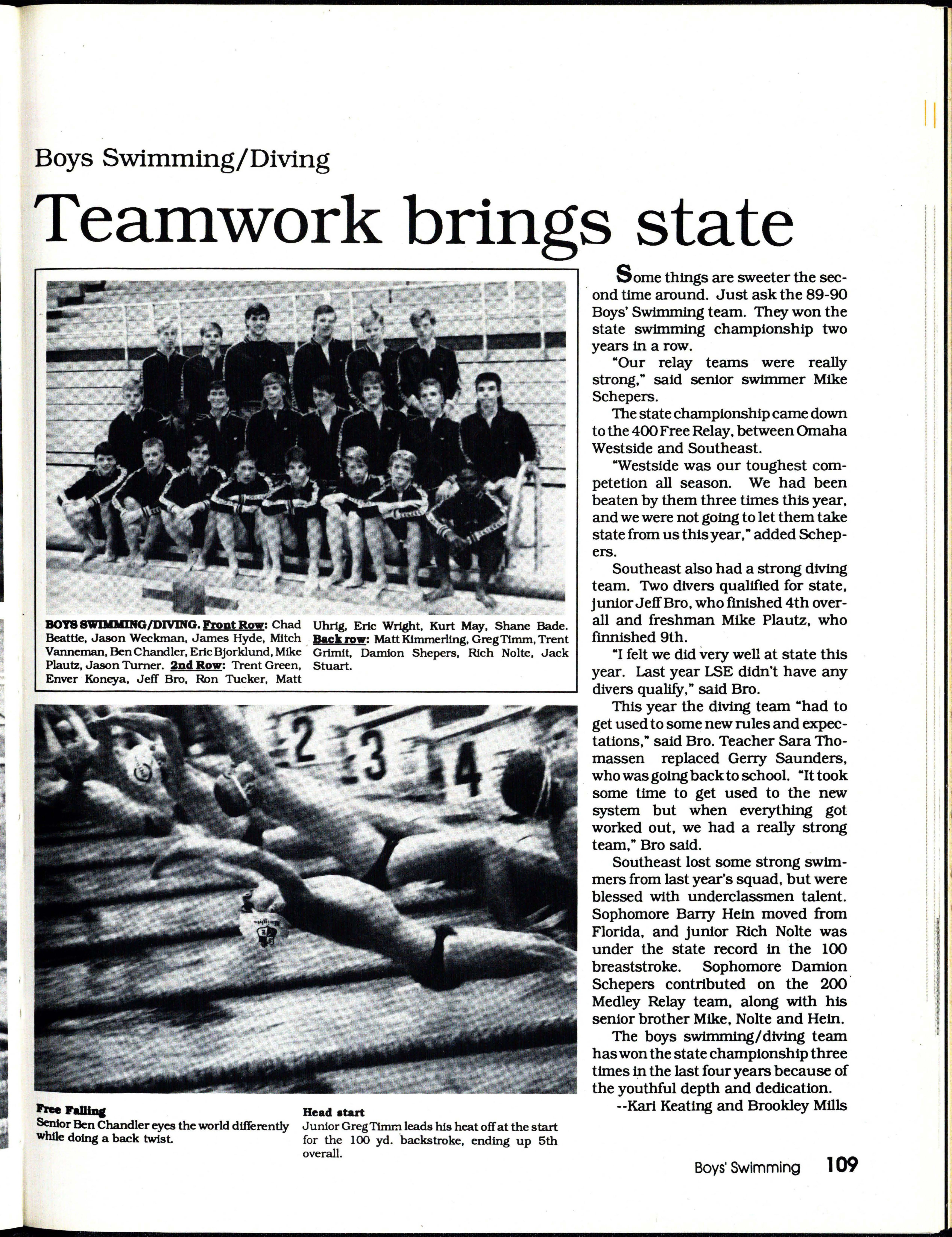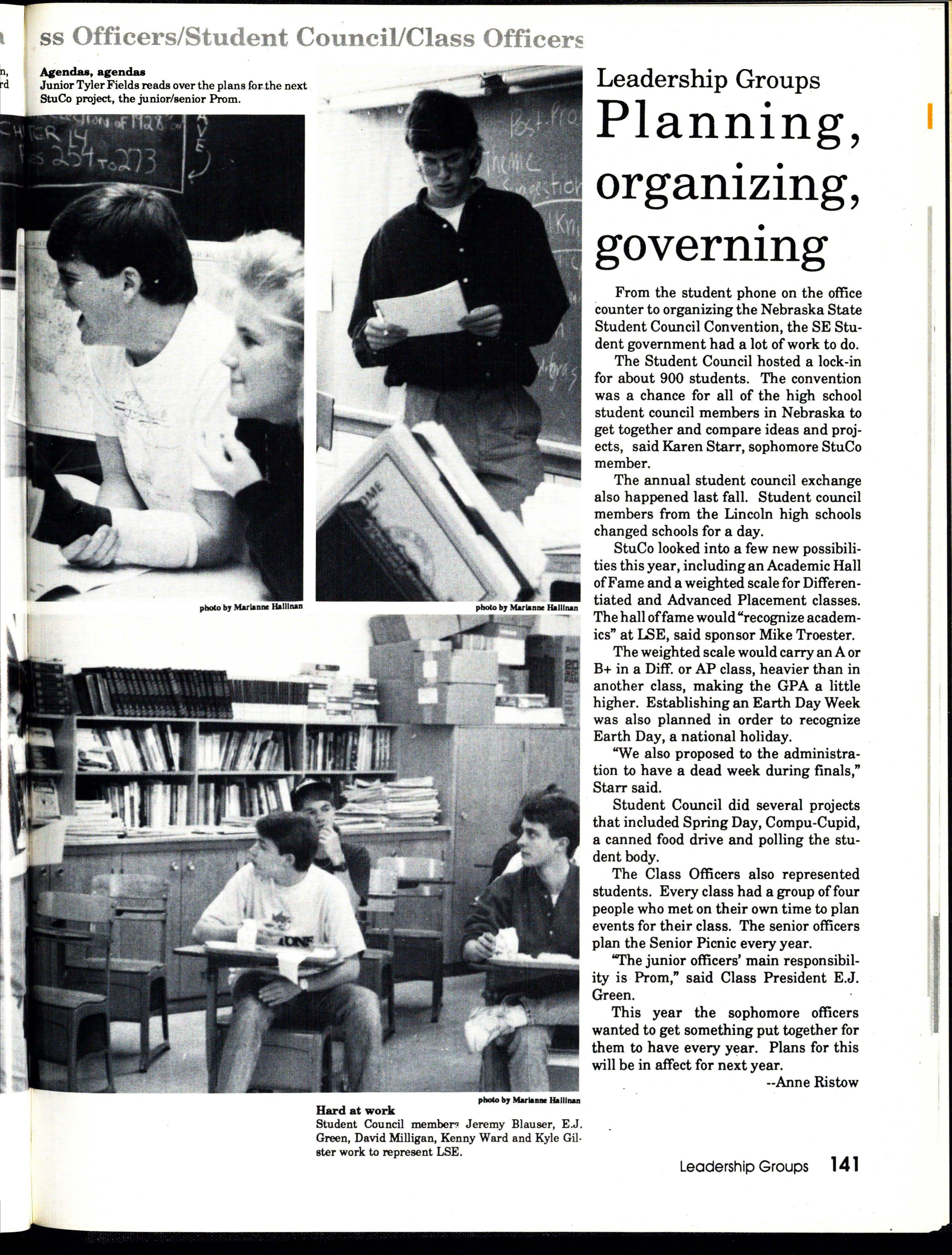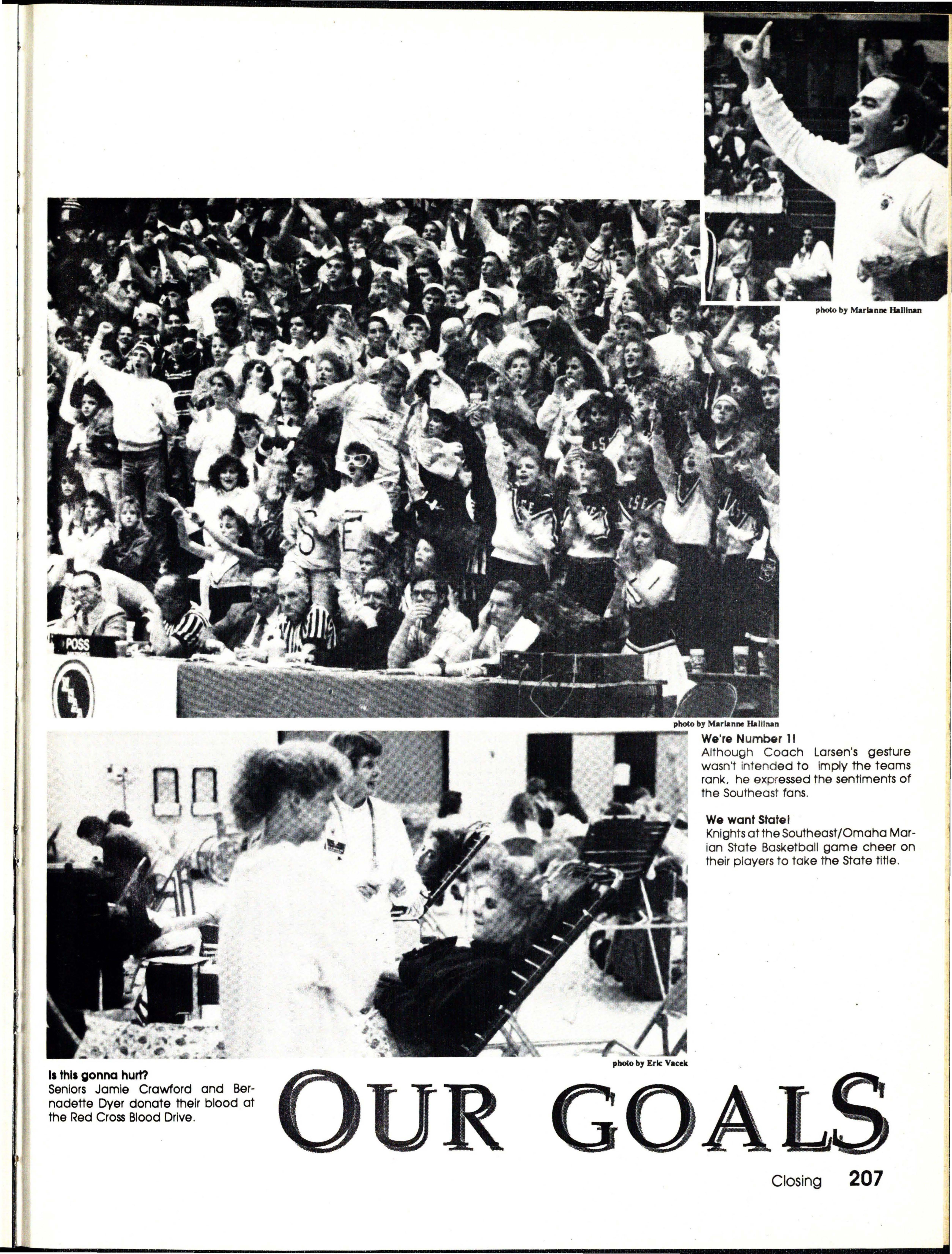 The life of a Southeast Knight could be viewed in many different ways. Students could be seen spread out over the state, sometimes over the country. The Southeast Knights were viewed by the U.S. Department of Education as a Secondary School of Excellence . However, many Knights made things happen within the city of Lincoln. At school students could be seen excelling at sports, academics, or volunteer work But outside of school, the personalities of different people were expressed as they chose different ways to spend their free time. Activities such as attending the 'Rolling Stones' concert in Iowa, seeing the summer's hit movie 'Batman,' hanging out at the mall, volunteering at different places around Lincoln, vacationing, were events not soon forgotten in a student's life. Each individual found a way to express their own personal firsts, in one way or another