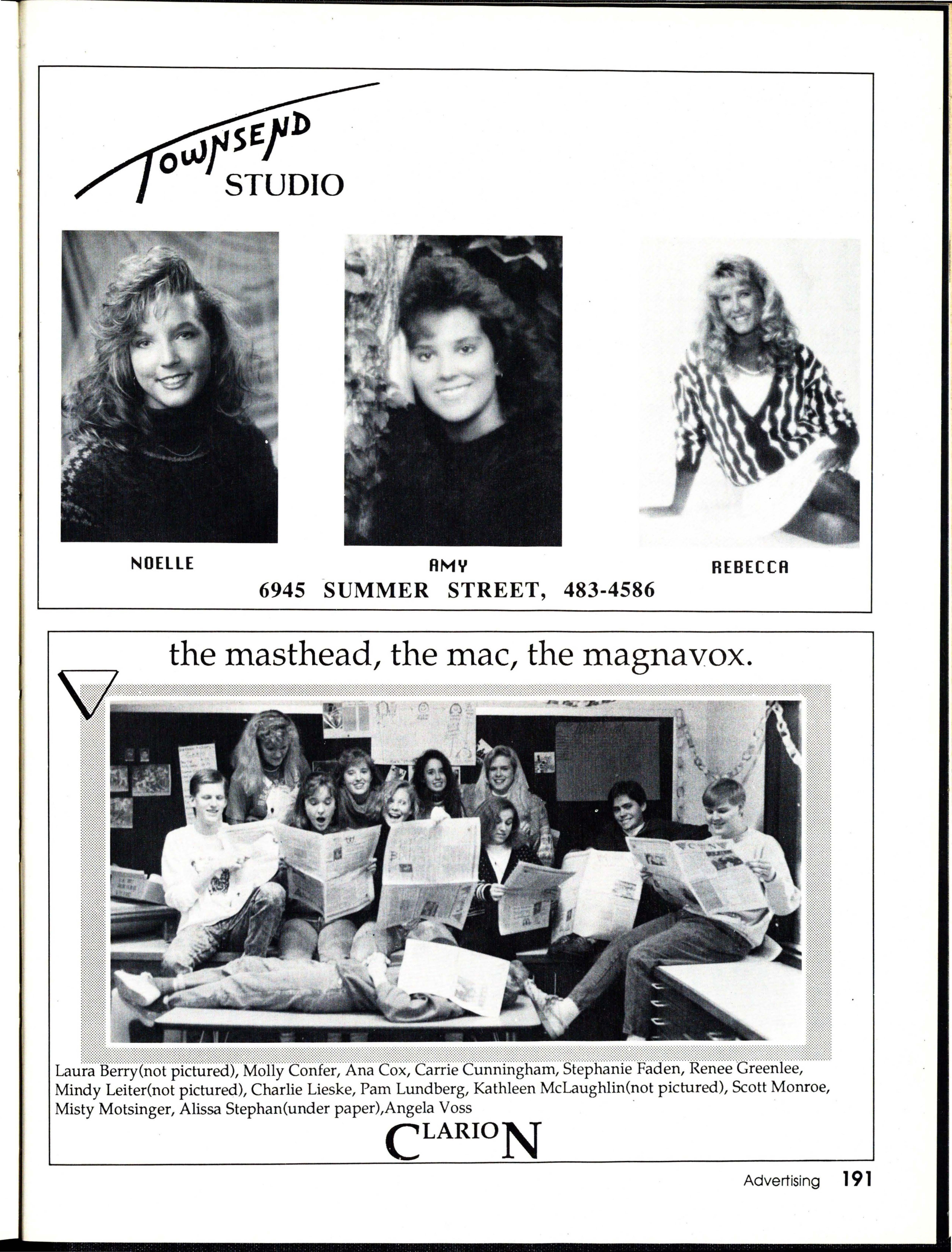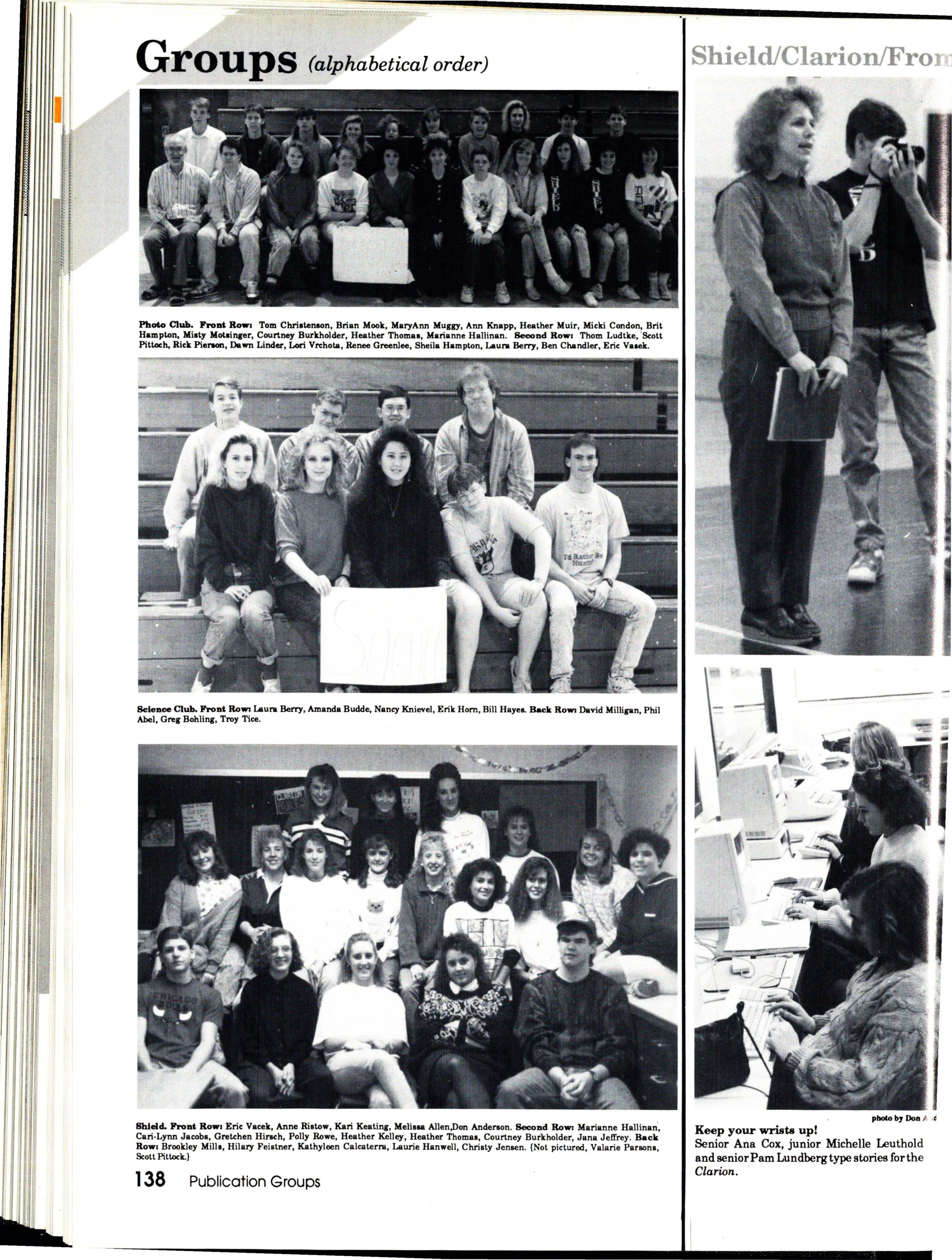 In recognition of their services , the Shield staff would like to thank the Clarion photographers for their help, as well as all the parents and friends of the Shield staff who contributed photos for the yearbook's use Shield also appreciates help from Mike Diffenderfer and Brenda Search of Walsworth. In addition, the staff would also like to thank any students , staff,families , orcommunity people who contributed to the 1990 book