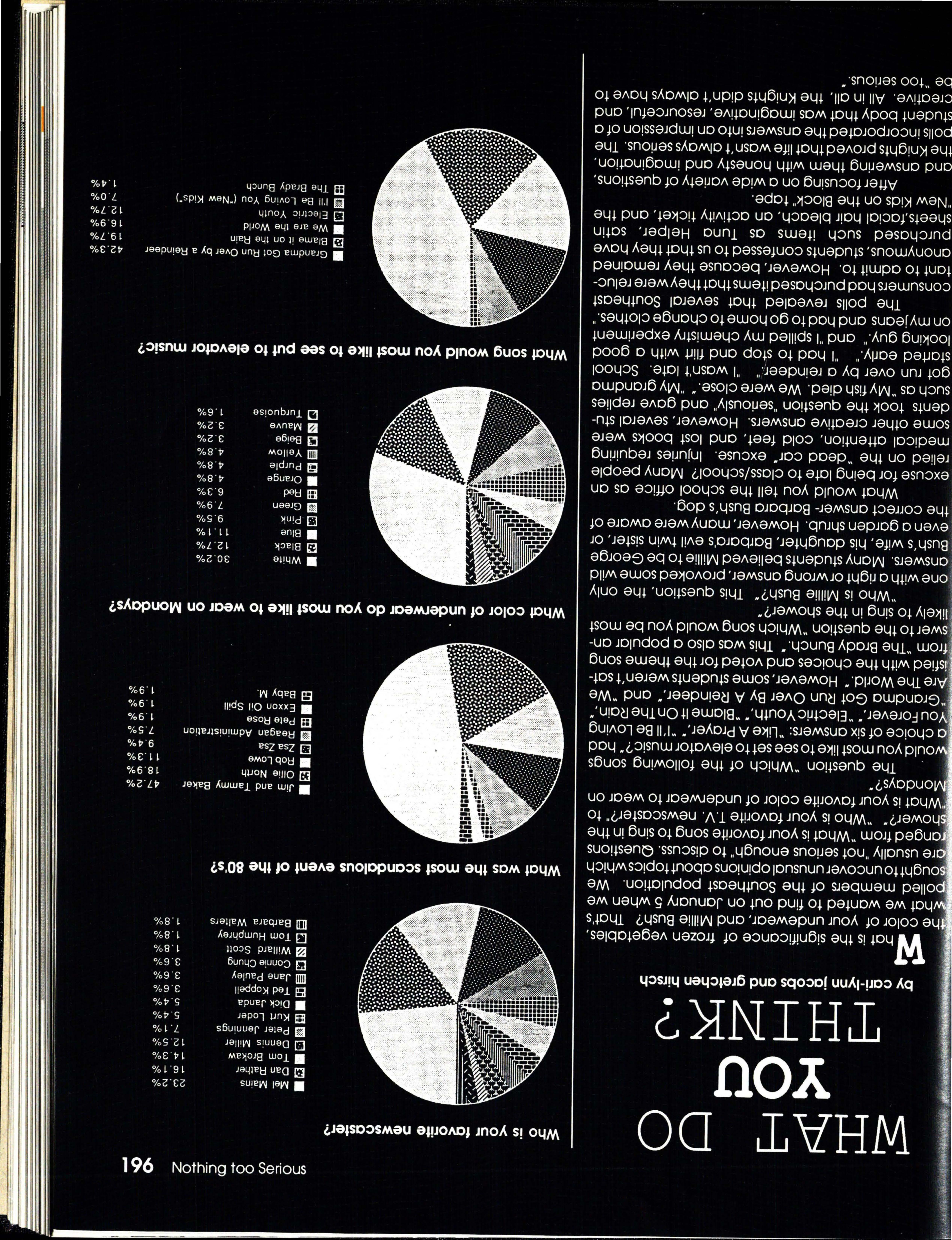 To reflect the humorous side of the students, the six page Mini-mag was printed on flat black paper with white type, and placed in the book upside down