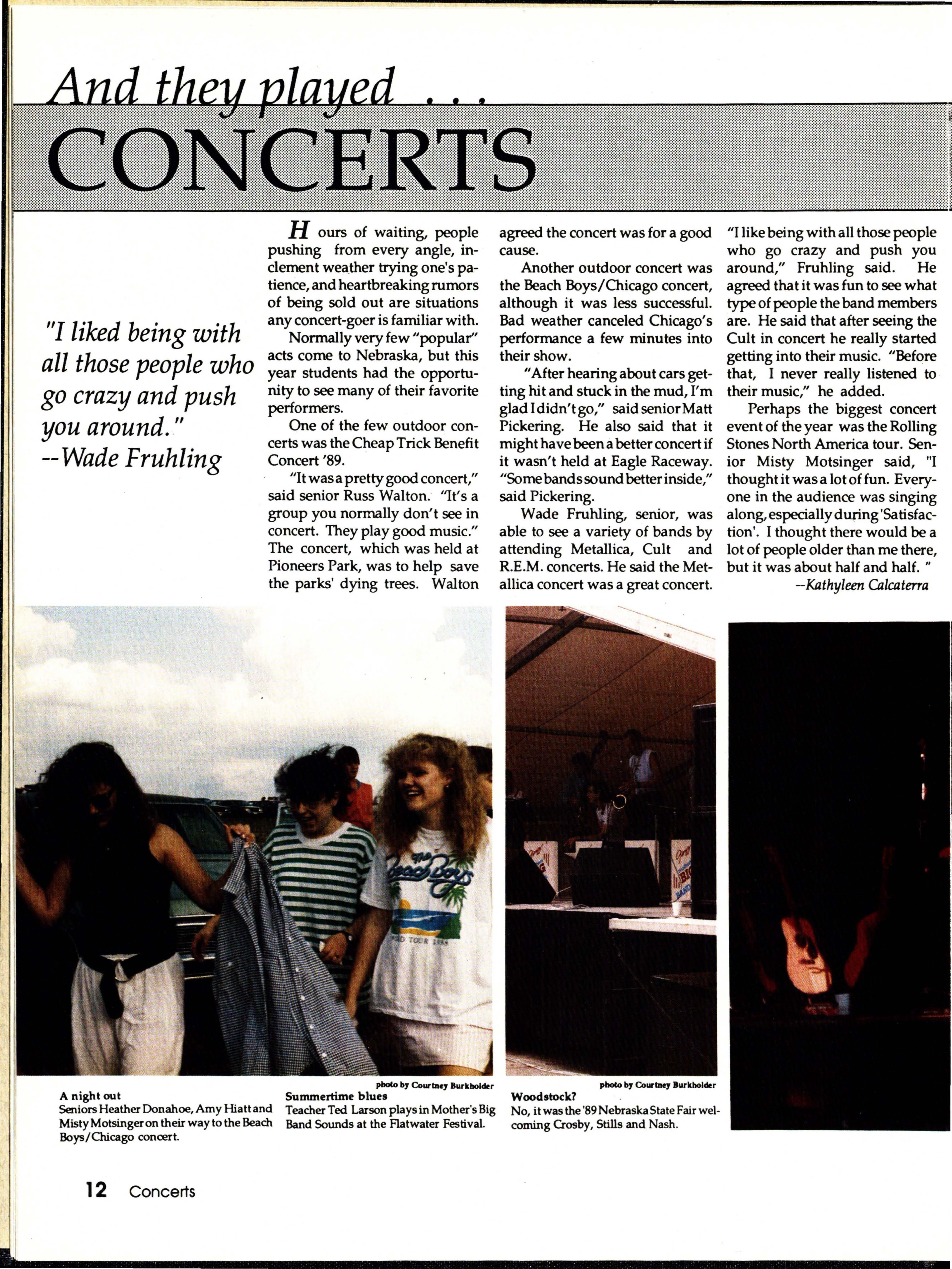 "After hearing about cars getting hit and stuck in the mud, I'm glad I didn't go," said senior Matt Pickering He also said that it might have been a better concert if it wasn't held at Eagle Raceway "Some bands sound better inside," said Pickering Wade Fruhling, senior, was able to see a variety of bands by attending Metallica, Cult and R.E.M. concerts He said the Metallica concert was a great concert.