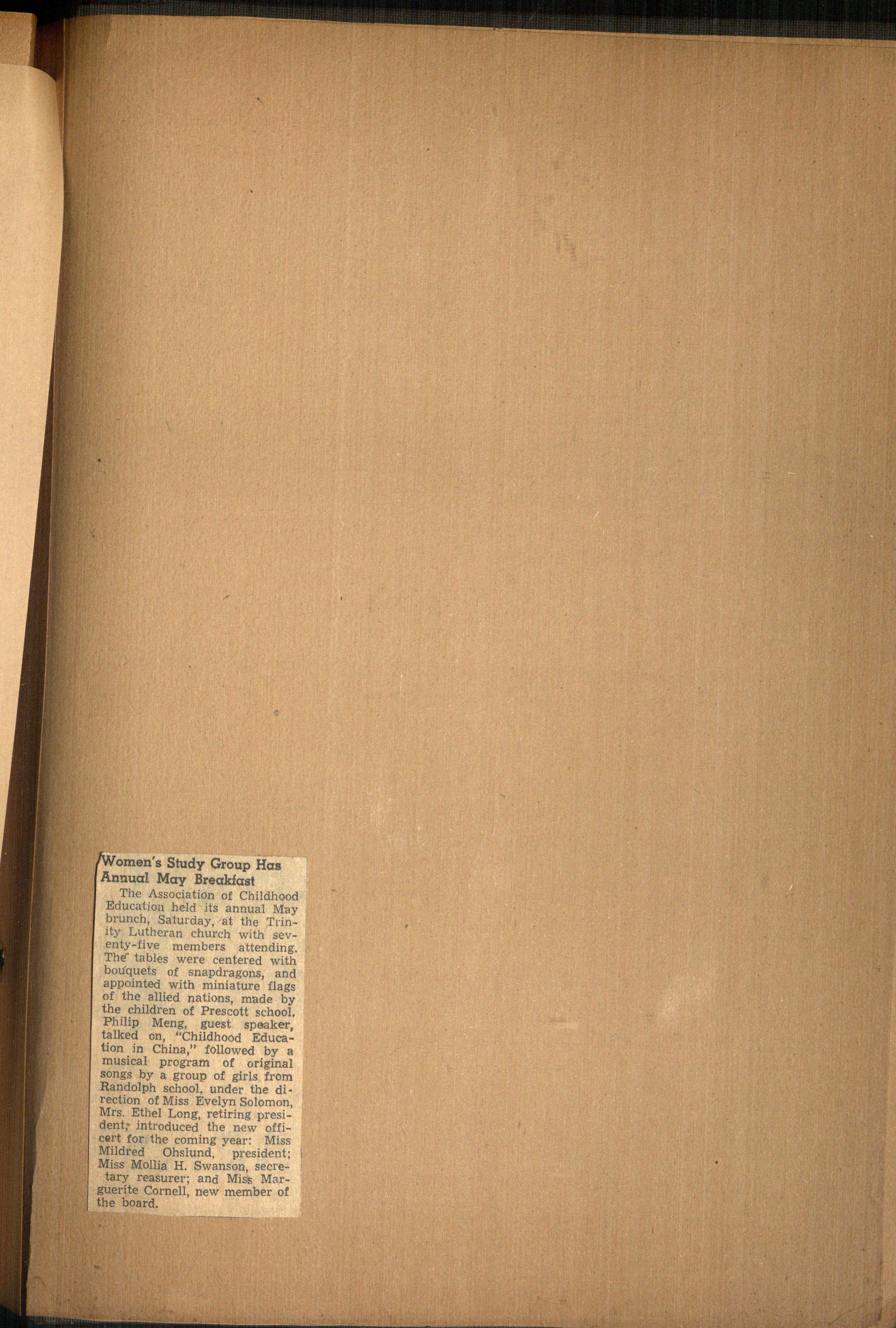 At the breakfe.st the new boprd mt,mb,~r for A. C. E. will b0 introduc0d. A nominating committee consisting of ~nry Atwood, Chnirmrn, Blanche MRhnnnah, Franc~s icLfl.in, GlP dys GrnhRm, Pnd Edith Pnmbrook h?vn ~ubmittod the following nnmAs for Clr.ction: