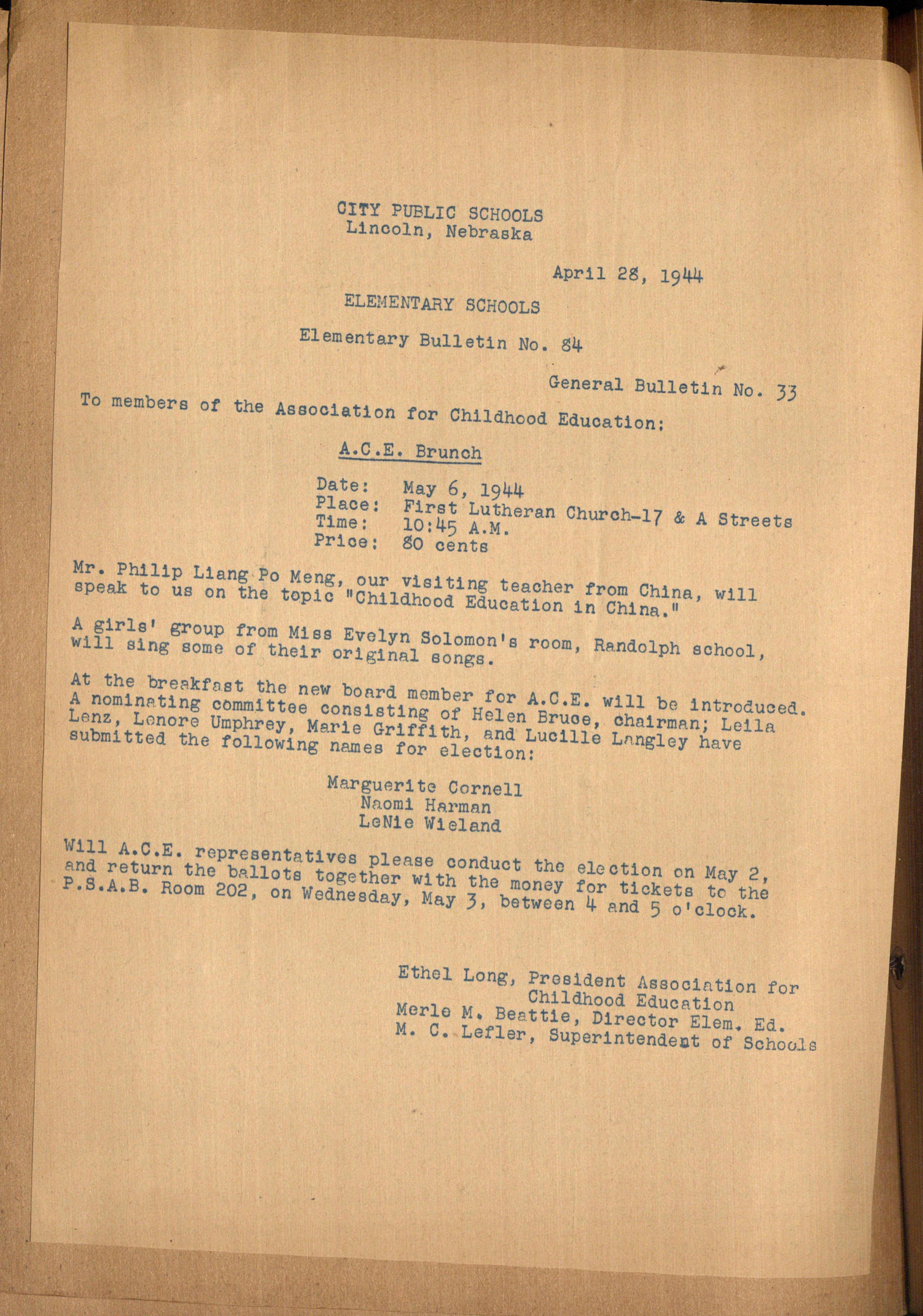 To Principals, Teachers, Supervisors, and icmbcrs of the Association for Childhood Education: