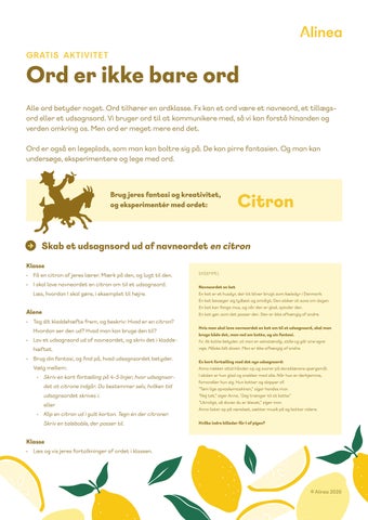 Danmarks førende undervisningsforlag. Sammen med de allerdygtigste forskere og praktikere udgiver vi læremidler, der bidrager aktivt til elevernes faglige udvikling fra første dag i nulte til sidste dag i niende. Alineas læremidler støtter læreren i at gennemføre en meningsfuld og relevant undervisning. De sikrer læreren fagets grundlæggende viden og giver viden og inspiration, når der skal bringes nye metoder i spil og arbejdes med mål og evaluering. Alinea støtter børn og unge Alinea er en del af Egmont, som er Danmarks største mediekoncern og blandt andre omfatter forlaget Lindhardt og Ringhof, Carlsen, Akademiske Forlag, Nordisk Film og TV 2 Norge. Egmont er en fond, som siden 1920 har støttet børn og unge med over 2,6 milliarder kroner.