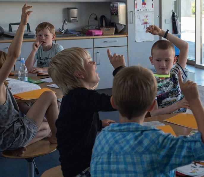 I d’dansk opfordrer vi til skrivning af fællestekster på tavlen, så det synliggøres for eleverne, at man kan sætte ord sammen til sætninger på forskellige måder. Eleverne udvikler sådan deres syntaktiske kompetence.