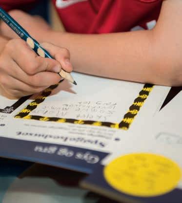 I d’dansk er der rig mulighed for at skrive løs på egen hånd. I både Fællesbogen, Træningshæftet, og MiniLæseforståelse motiveres eleverne til at skrive i forhold til alle de læste tekster. Der er altså noget at skrive om, når opgaven fx går ud på at tegne og skrive om det sted i historien, man selv bedst kan lide, eller skrive cirkeldigte, når man lige har læst og arbejdet med cirkeldigte.