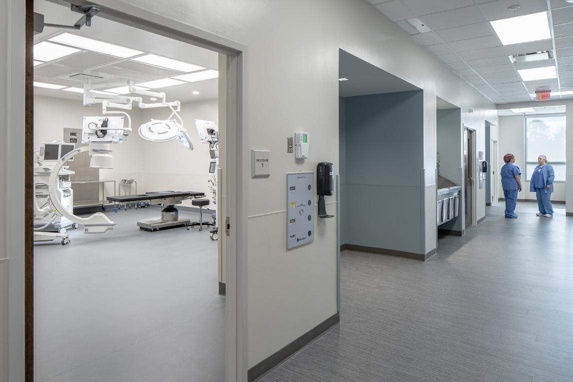 Located within an existing Professional Office Pavilion on the WakeMed North Hospital campus in Raleigh, NC, this Ambulatory Surgery Center offers a therapeutic and safe environment for both patients and clinical staff. The center features large (570 SF) OR/Procedure rooms, with generous daylighting that enhances the overall quality of the space.