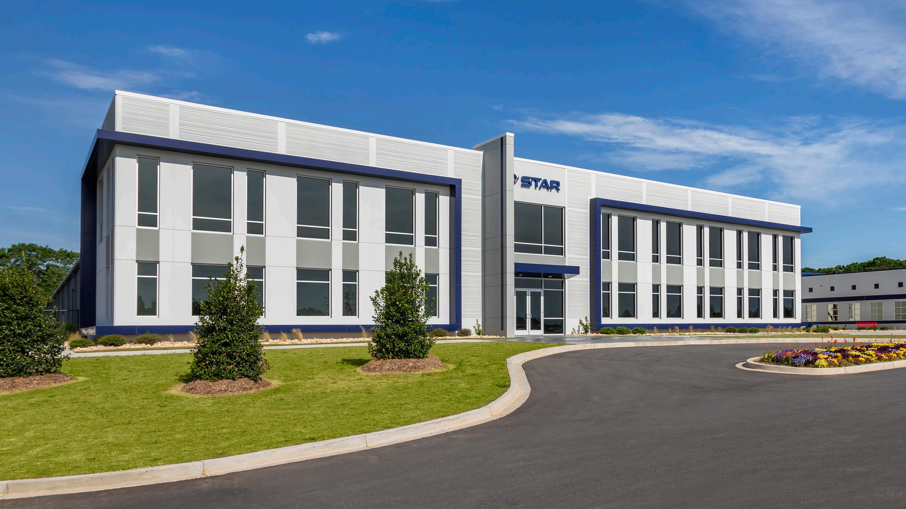 Star EV office and manufacturing expansion includes a new 16,000-square-foot, two-story office building and a new 41,800-square-foot plant expansion. The office building uses precast concrete for its primary structural system and includes a new employee breakroom, training room, exercise room, open office areas, director’s office, and supporting spaces. The pre-engineered metal building plant expansion sits behind the office building to create a connection between the new office and existing plant.