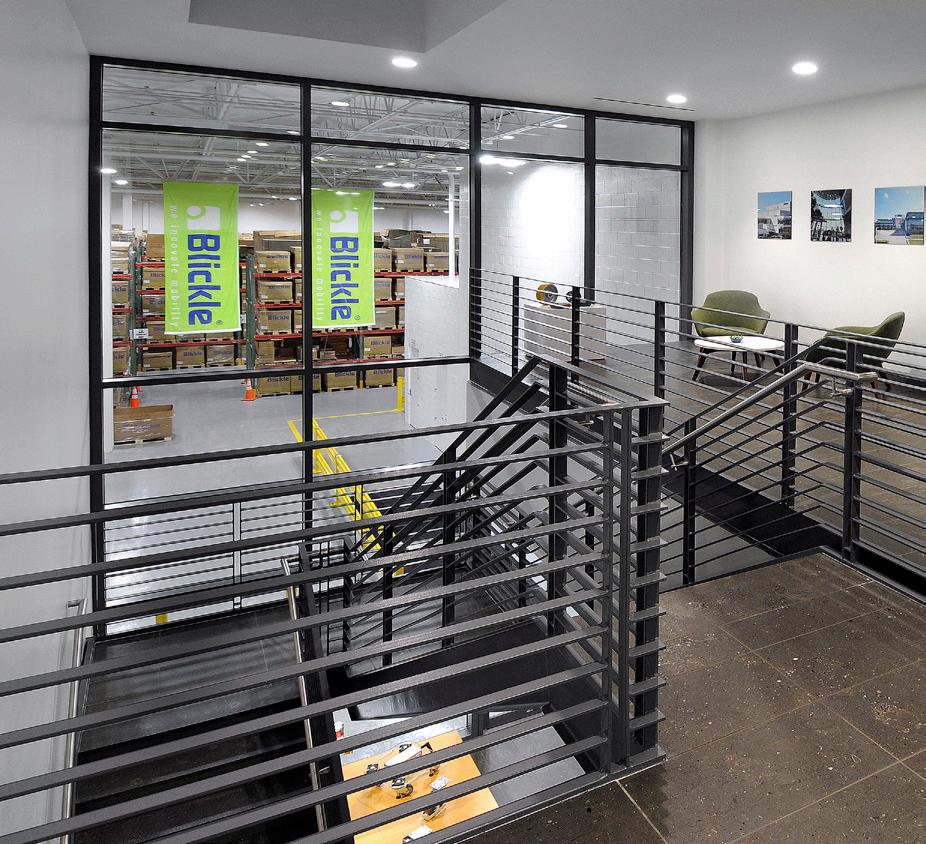 The new US office and distribution headquarters for a global German manufacturer of wheels and casters features a two-story, 14,500-square-foot office building and an adjacent one-story, 50,000-squarefoot warehouse facility. The administration building serves engineering, operations, customer service, marketing and sales functions, and features high-end office, meeting rooms, and training space. The program also includes a state-of-the-art testing lab, customer experience center, and warehouse for US distribution.