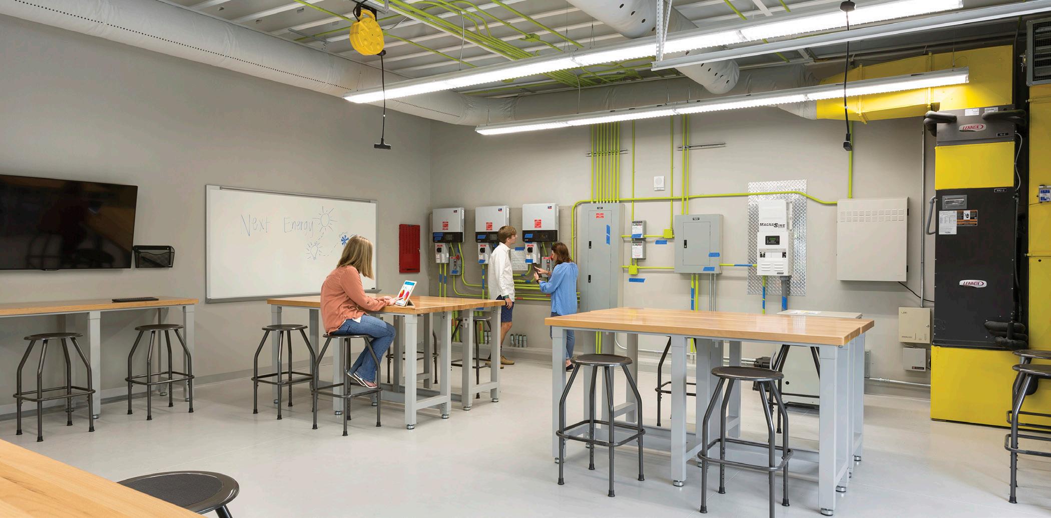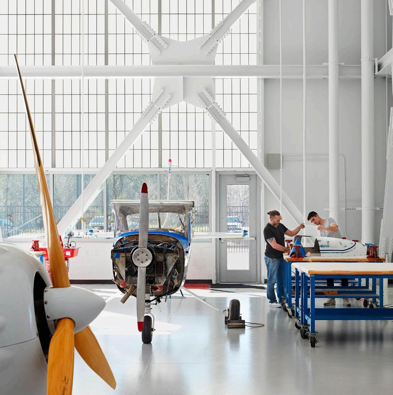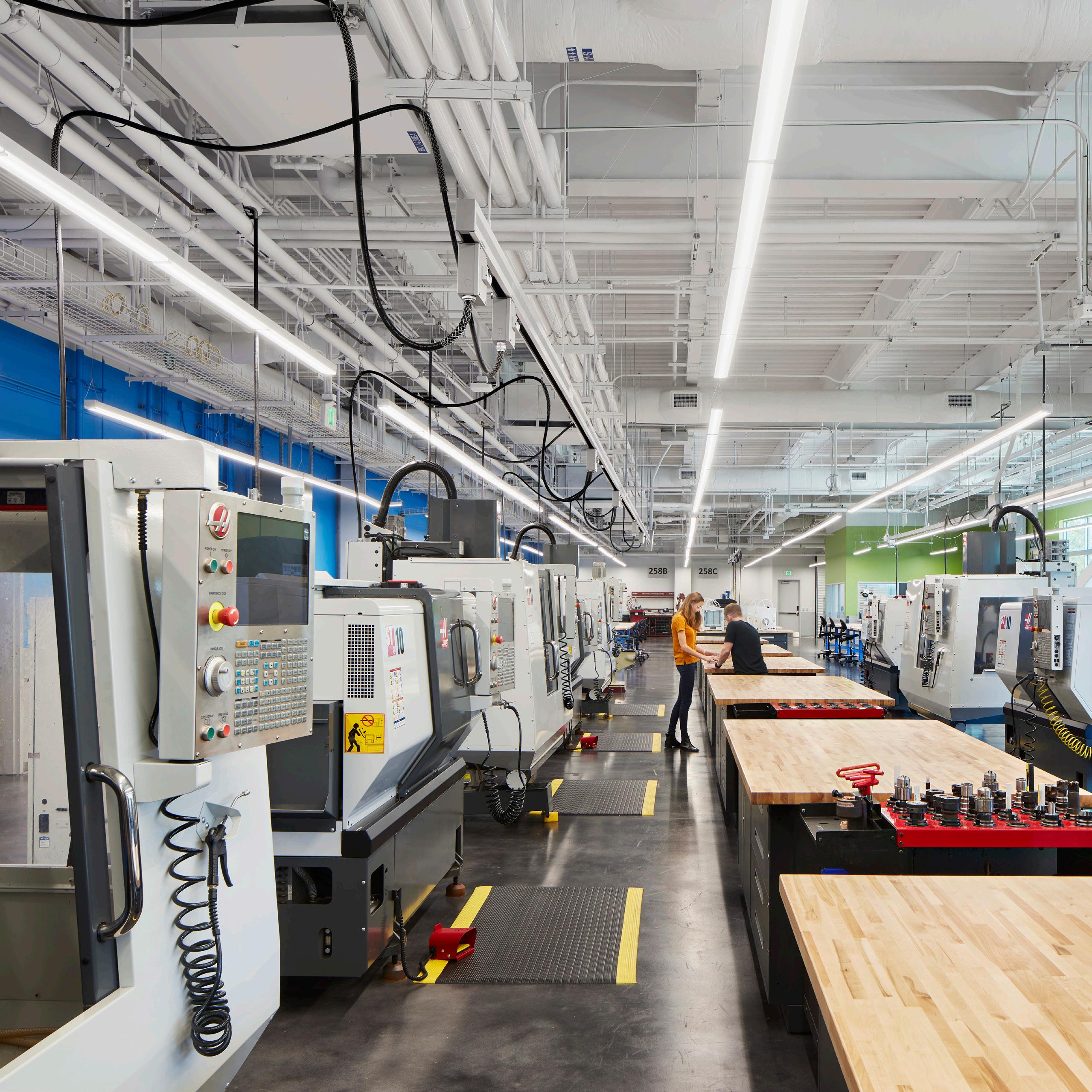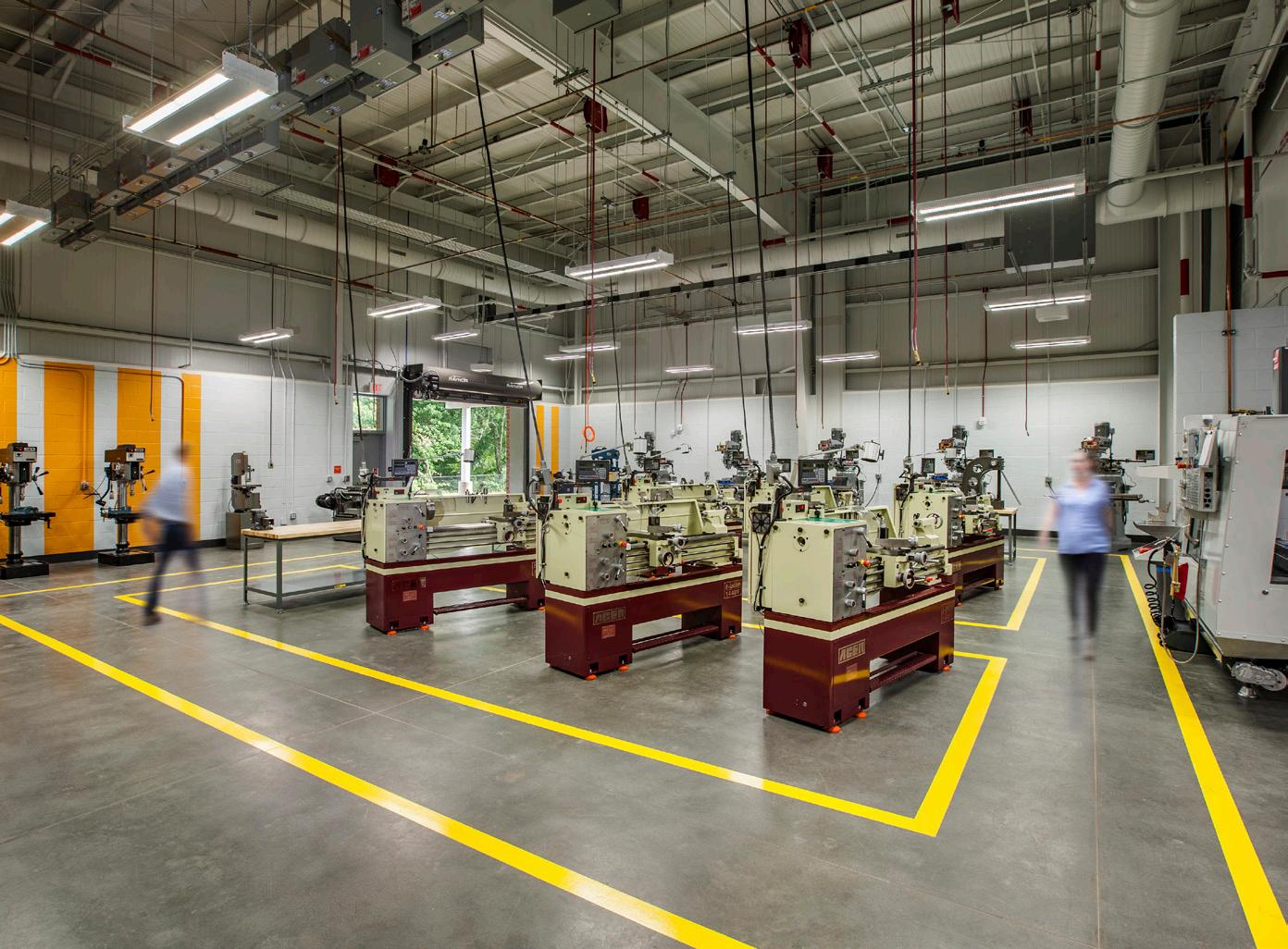 Above all, these facilities must be designed for flexibility. Generous, durable, multifunctional spaces allow reconfiguration as tools and equipment change so that facilities can evolve along with the technology. In many cases, these training spaces are also transparent, putting the learning and technology on full display to highlight a new paradigm of education and the opportunities it provides.