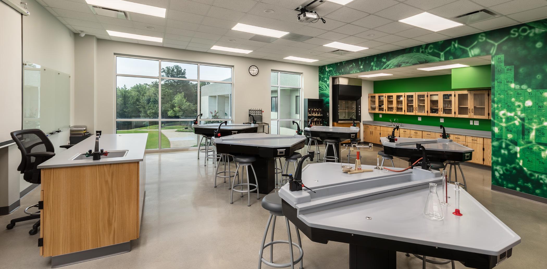 West Cabarrus High School integrates flexible, technology-rich learning environments with specialized labs and maker spaces to support Career and Technical Education pathways in health sciences, engineering, and aviation.