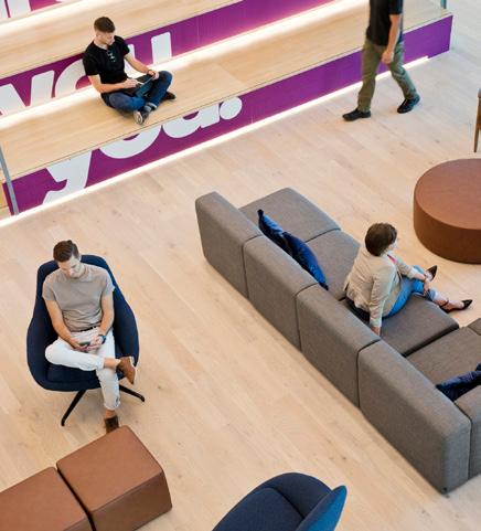 How do we design hybrid office spaces that work for everyone? People might have differing opinions on where and how they work most productively, but one thing is clear from asking people what they enjoy about the office: people love faceto-face interactions with their colleagues. Adapting existing office spaces for authentic collaboration – including plenty of opportunities for spontaneous collaboration – is a primary goal.