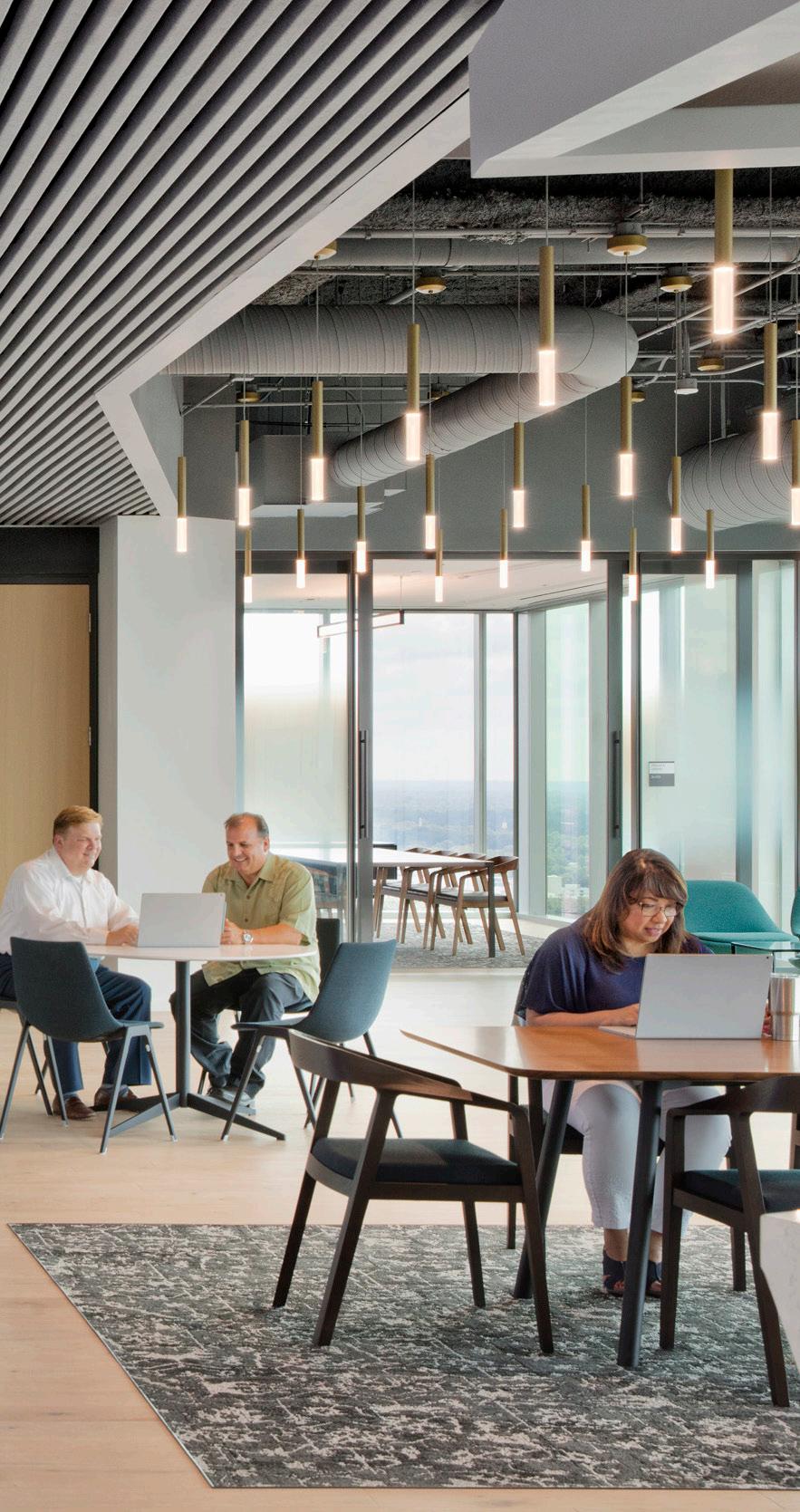open benching, and soft/social seating areas to accommodate various tasks throughout the day. Myriad conference and touchpoint meeting stations support these work areas, as well as an upgraded break room and social offerings.