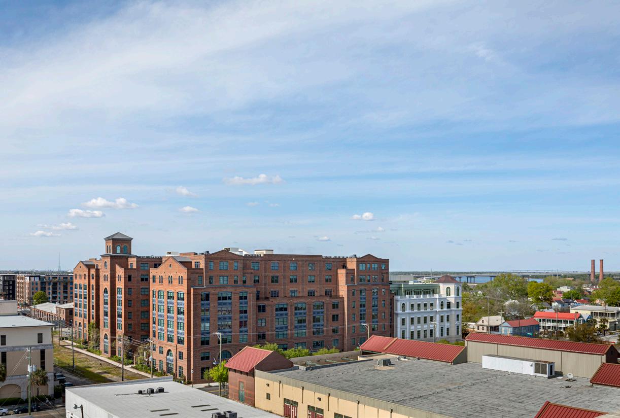 This urban mixed-use project on the Charleston’s historic peninsula consists of office, restaurant, retail, and residential components all wrapping a central shared parking structure. The 69,000 SF, five-story office building anchors the corner of Meeting and Columbus Streets, and features 19,000 SF of street level retail and restaurant space fronting Meeting Street and three floors and a penthouse of office space above. The 228 unit apartment building extends to an existing rail line which will be converted into a pedestrian greenway. Above the concealed 624-space parking structure, a rooftop and pool terrace overlook the Charleston Harbor, the Cooper River Bridge, and Mt. Pleasant in the distance.