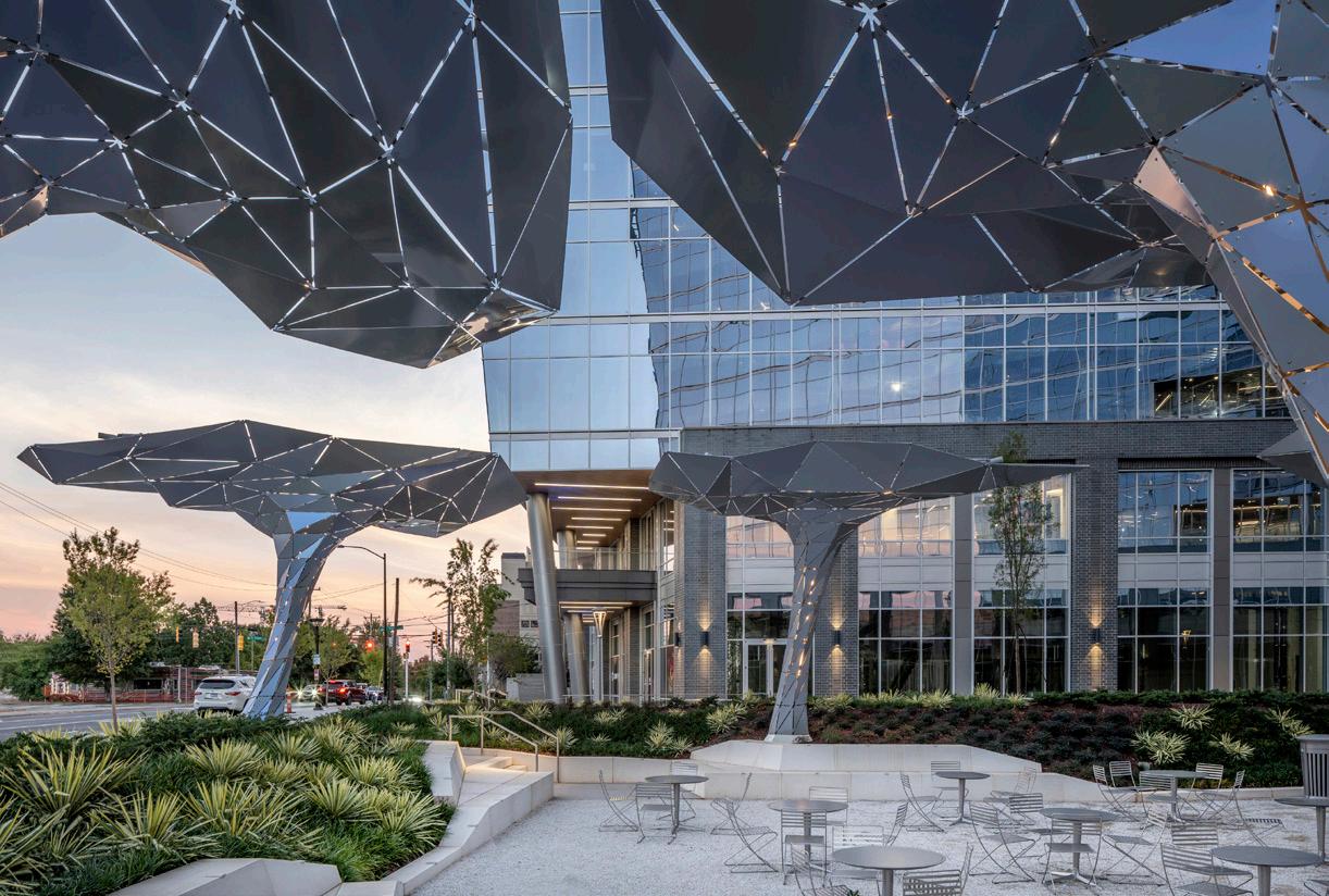 A four-level, below-grade parking structure accommodates tenants and guests; the ground floor retail space helps to activate the streetscape and form a welcoming pedestrian connection between entertainment, residential, and commercial developments in the thriving city center