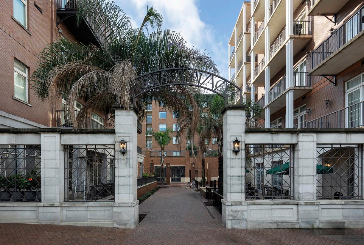 Three towers define and organize the site, delineating the entrances to retail, hotel, and office components. A pedestrian courtyard through the center of the site creates a walkable, welcoming corridor between River Street amenities and parking while serving as an oasis from the lively street life. Inspired by historic photos, street-level canopies and balconies overlooking the courtyard reference Savannah’s architectural vernacular, recalling side porches and other human-scale details.
