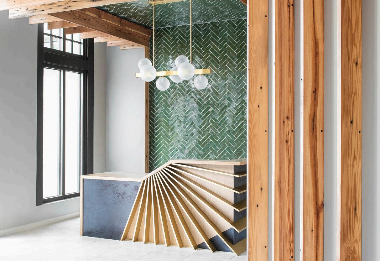 This contemporary mixed-use project offers 115 of urban residential units in the heart of downtown Wilmington. Residents can choose between studios and one-, two-, and threebedroom apartments, with exterior balconies and views of the river; amenities include coworking space, fitness area, street level restaurant and retail options. Street-level spaces including Riverbend’s “living room” are active and as transparent as possible to activate the streetscape, and structured parking provides spaces for 500 cars.
