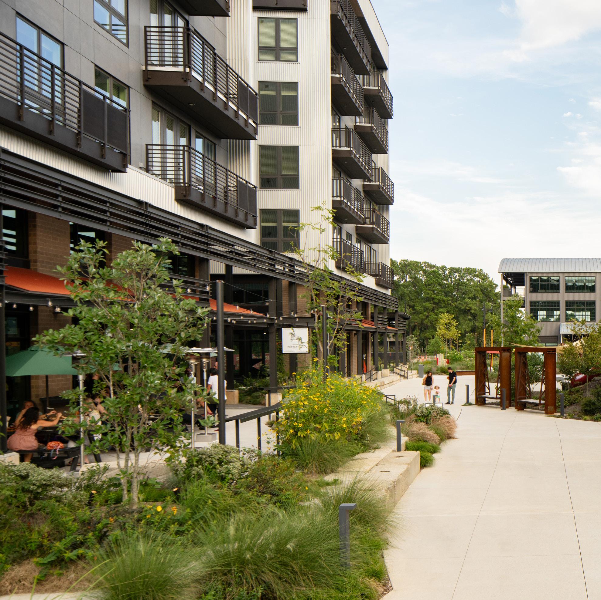 The project achieved the rigorous LEED-ND v4 Gold standard, the first development in North Carolina to do so and one of only eleven in the nation at the time. Its proximity to public transit, an emphasis on pedestrian activity, innovative design, and green infrastructure all contributed to the high level of certification.