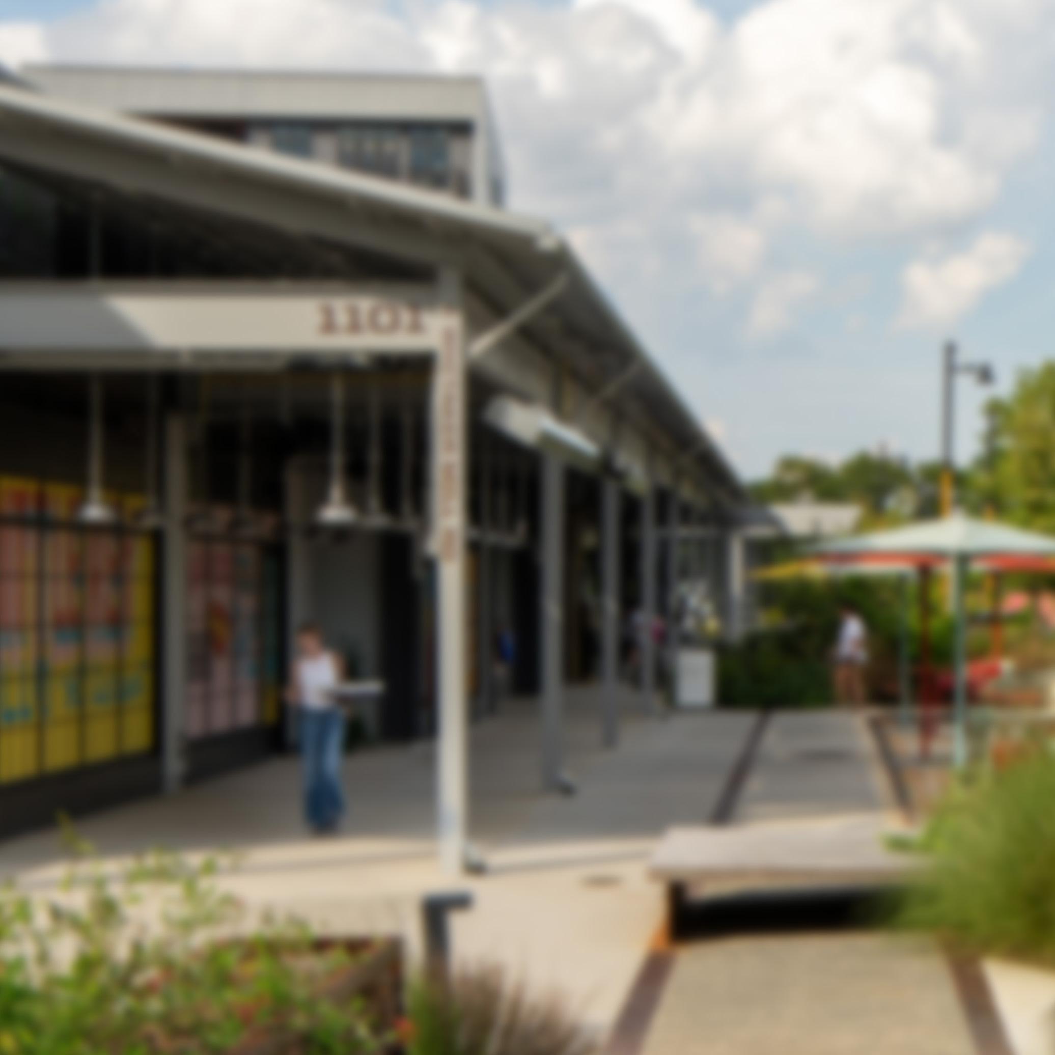 Before it featured office space, retail, restaurants, and apartments, the site was owned by Peden Steel, a prominent local steel manufacturer. The company moved to the site in 1956, and constructed a new building with two distinctive gables to house steel fabrication operations. A second structure, which dated back to the 1800s and was moved across town from another site, featured a bow truss roof and served as a welding shop.