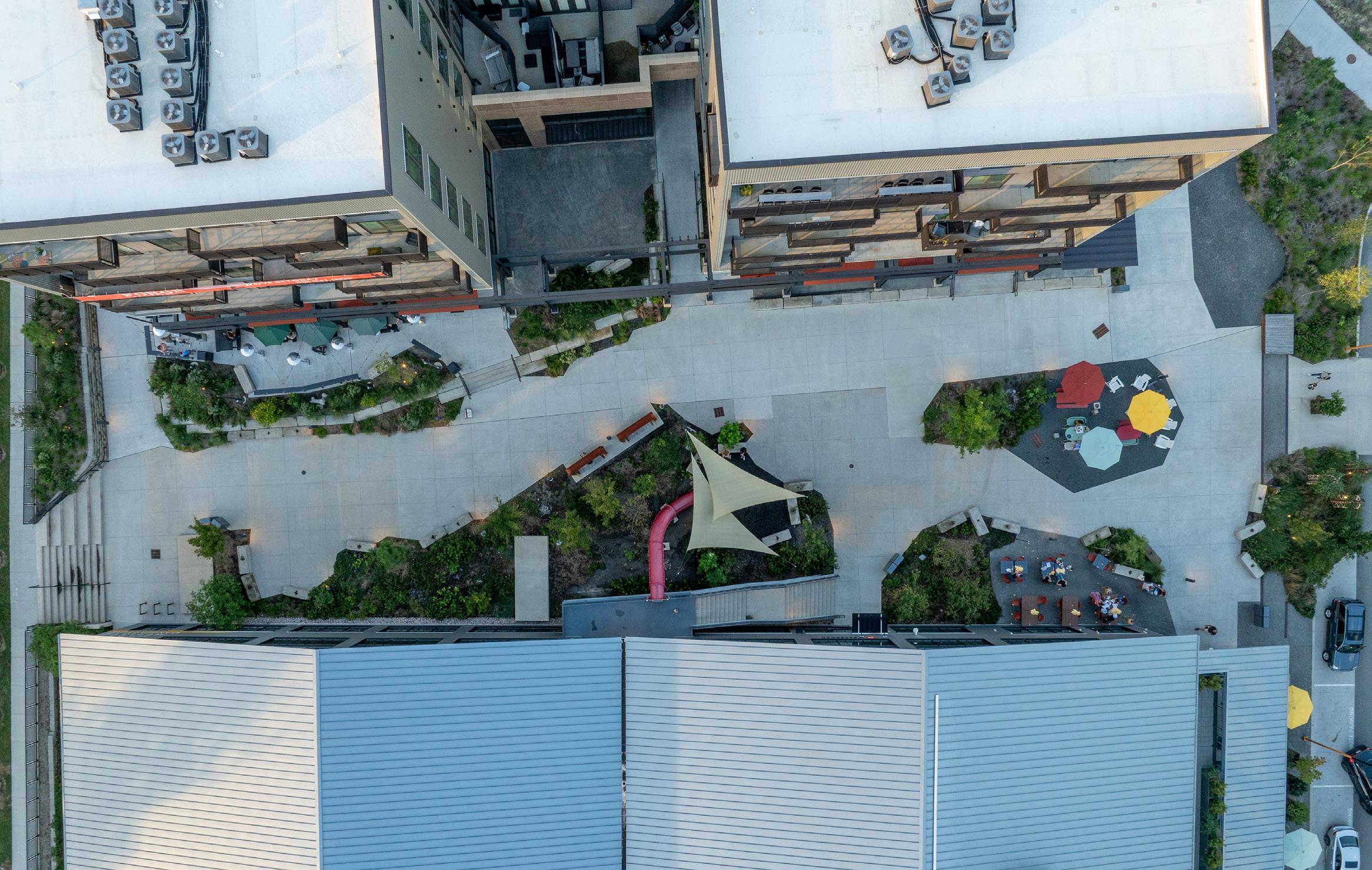MEASURING SUCCESS In addition to the “wow” factor of the development, its sustainability is a huge point of pride. The decision to re-use the existing buildings greatly reduced the embodied carbon of the project as compared to new construction.