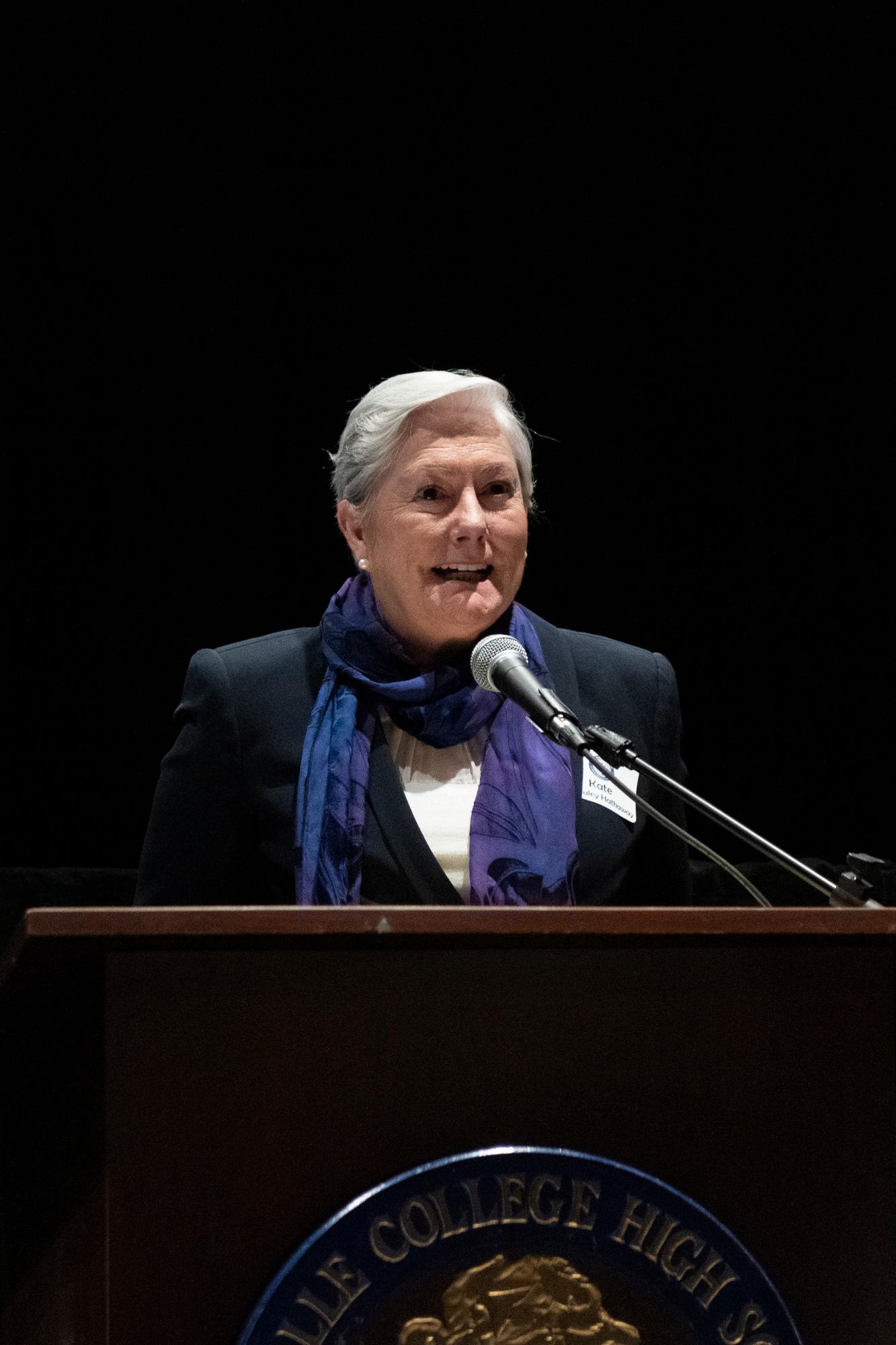 La Salle College High School inducted four members into the school's Arts Hall of Fame on Sunday, March 26, 2023 at a ceremony prior to the closing performance of the school's production of West Side Story. Brother Thomas McPhillips, FSC, PhD '67 was inducted posthumously for his contributions to the Music Department, Jerry Hathaway '72 and Kate McCauley Hathaway were inducted for theater and J. Christopher Paul '94 was recognized for his contributions in Speech and Debate. These individuals have brought distinction to La Salle through their talents and they exemplify the characteristics of living the Lasallian mission including leadership, service, and commitment to the community.