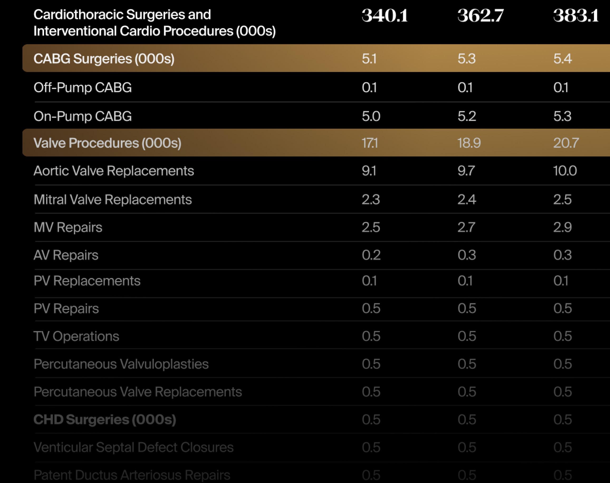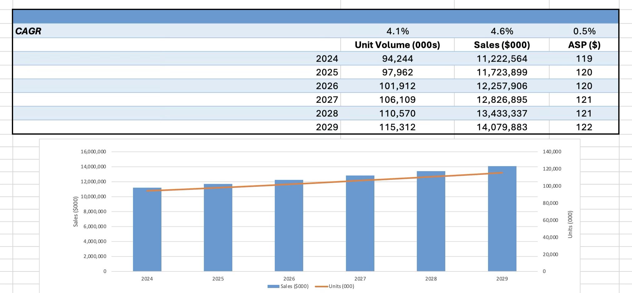 According to LSI’s Global Surgical Procedure Volumes Database, global knee replacement volumes are projected to grow from 4.3 million in 2024 to 6.4 million in 2029, with a CAGR of 7.9% (see table below).