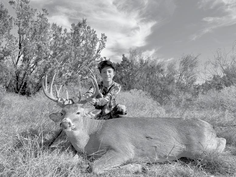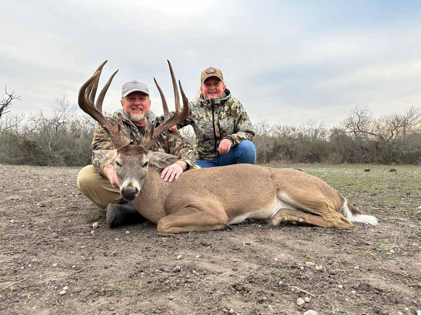 Case Carpenter shows off a mature buck he harvested alongside his daughter, Kaylee, during an annual family hunting trip in Goliad County.
