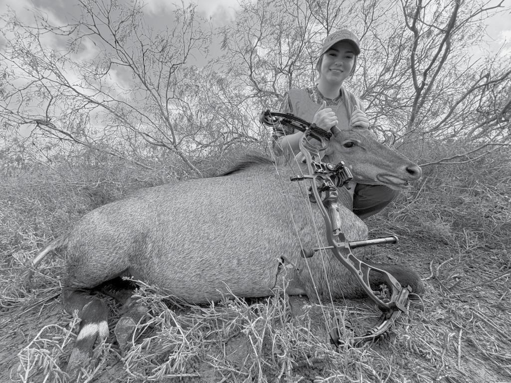 The young huntress from Harlingen harvested her first nilgai while on one of several archery hunts held at the Laguna Atascosa National Wildlife Refuge in eastern Cam-